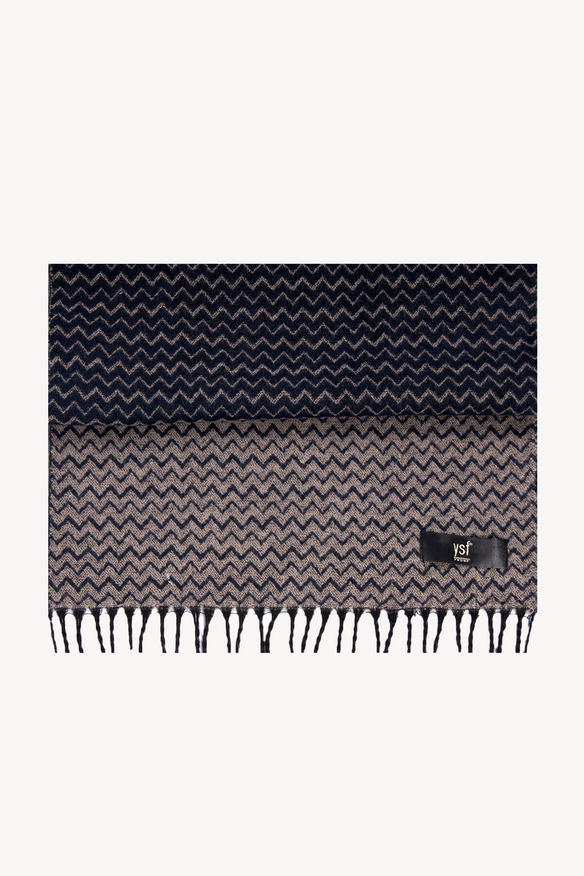 Erkek Lacivert Bej Yünlü Desenli Kaşkol