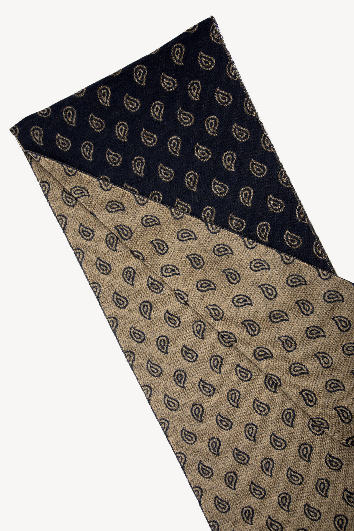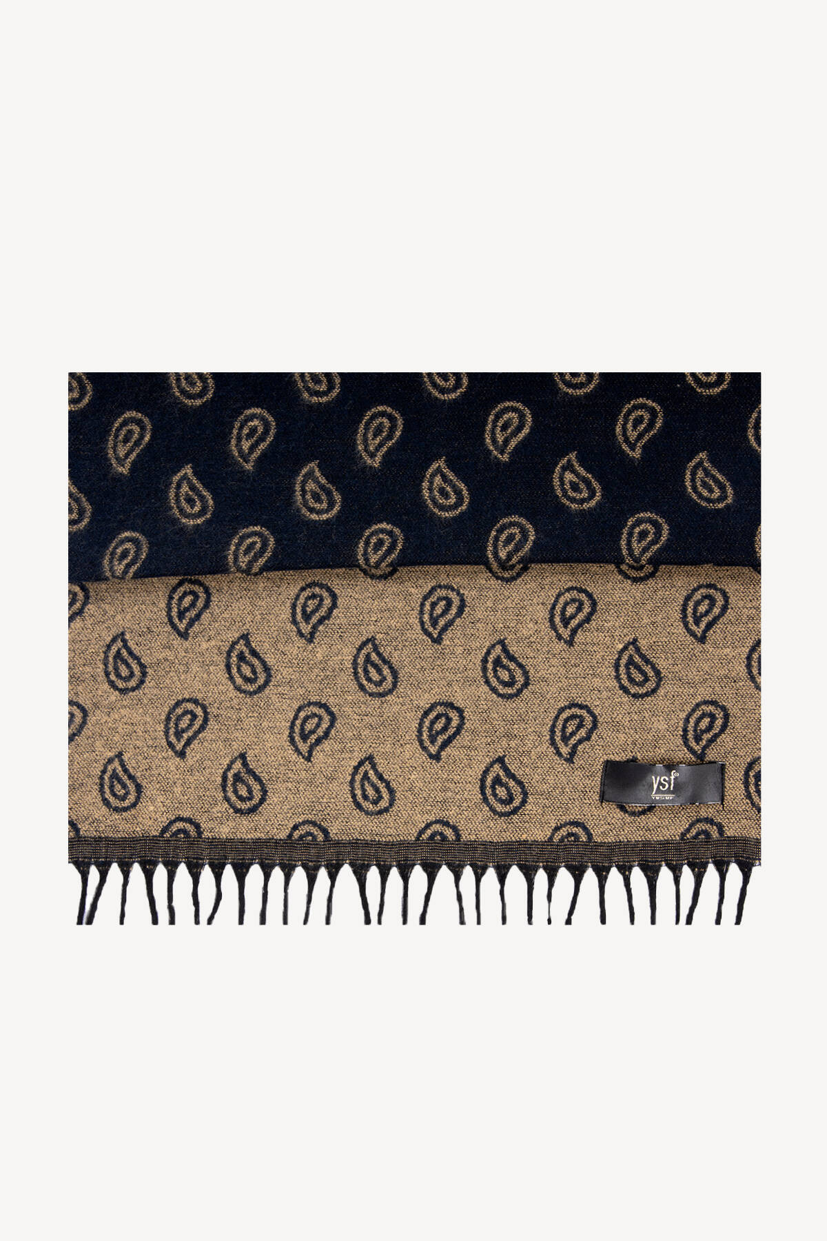 Erkek Lacivert Bej Yünlü Şal Desenli Kaşkol