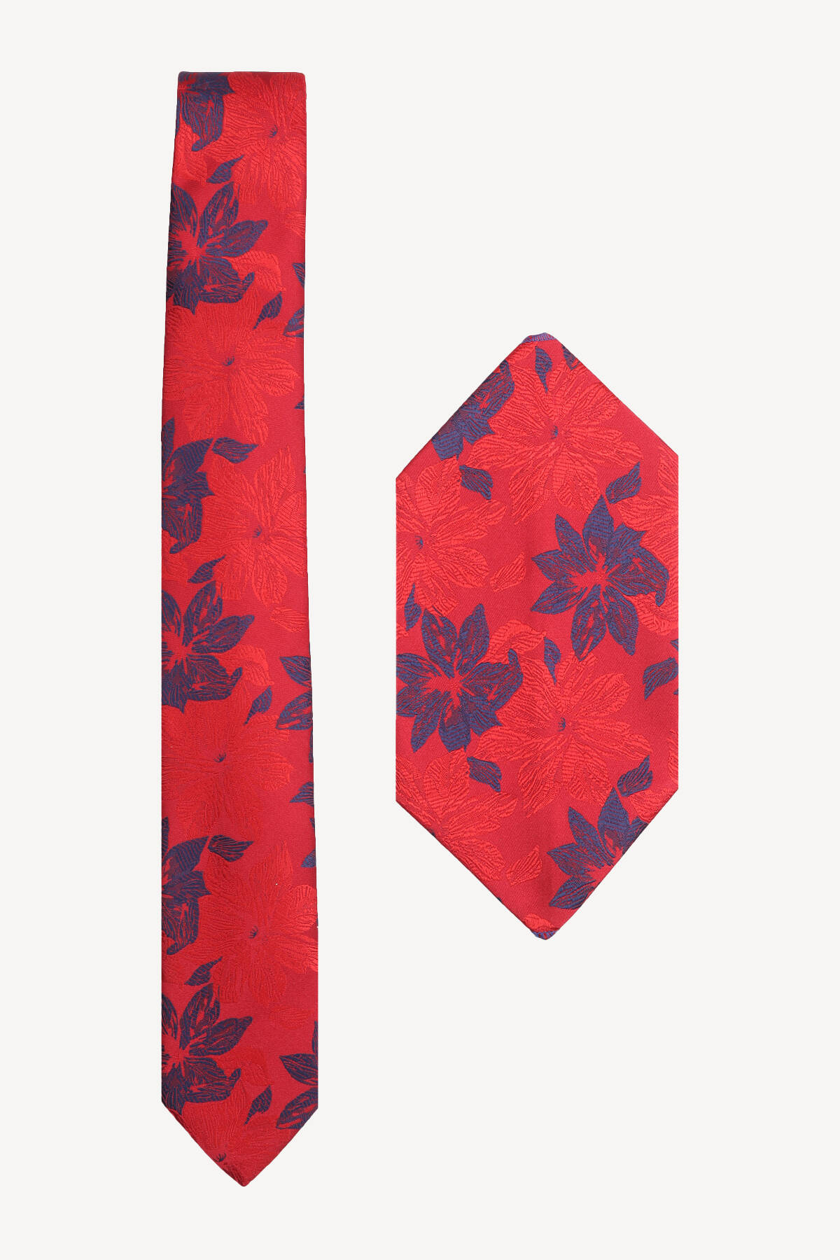 Erkek Lacivert Bordo Desenli Kravat Mendil Set