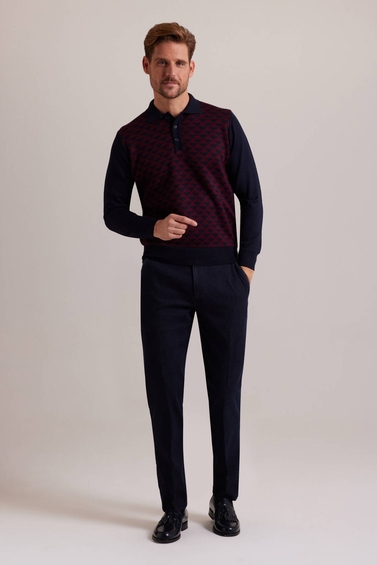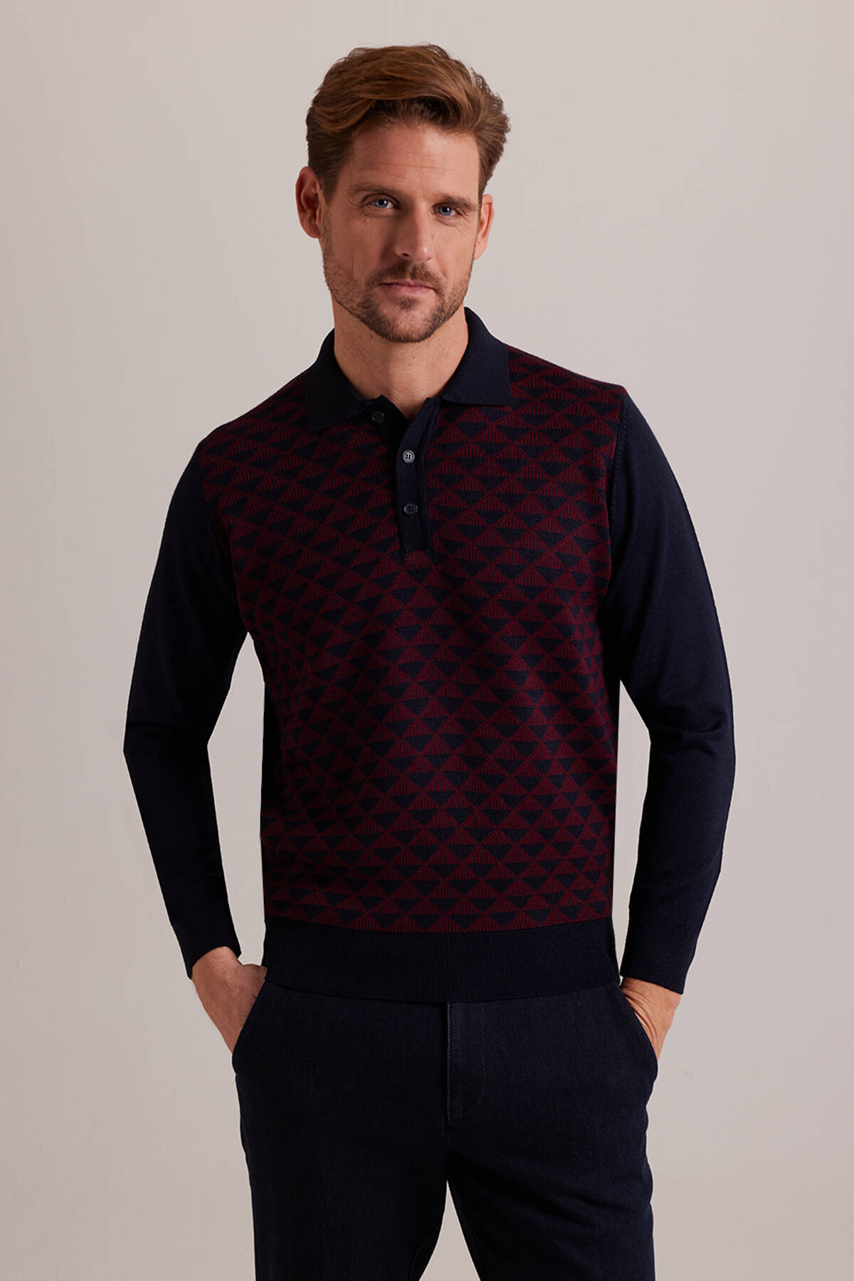 Erkek Lacivert Bordo Polo Yaka Desenli Triko