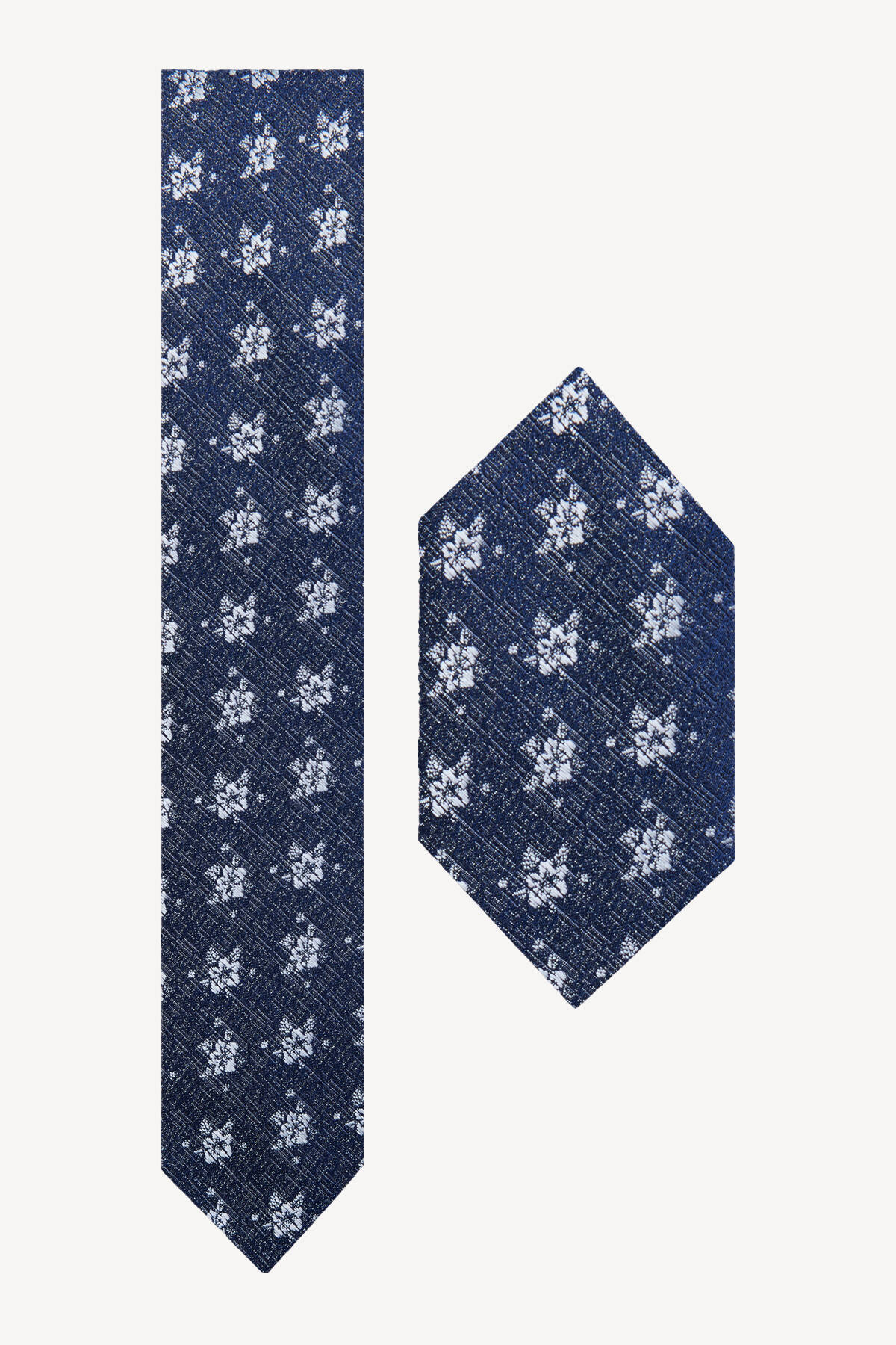 Erkek Lacivert Çiçek Desen Kravat Mendil Set