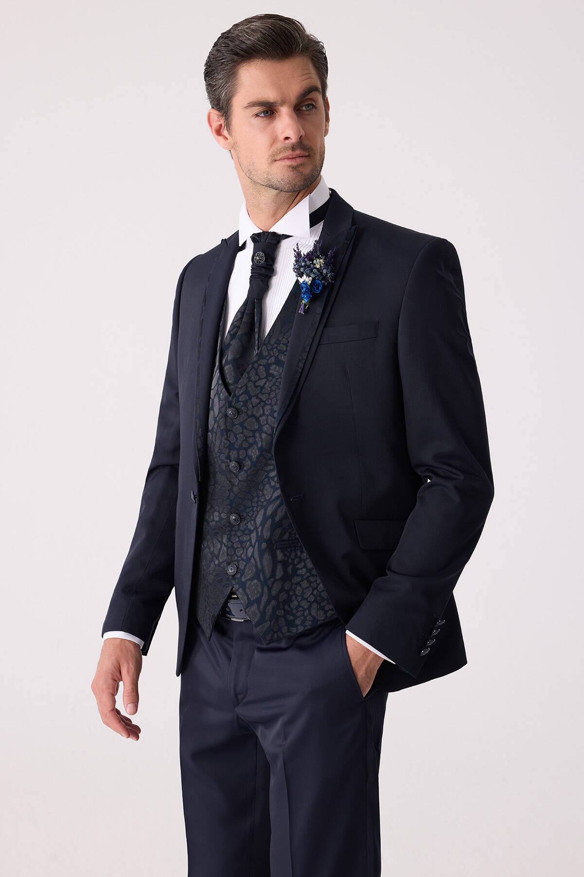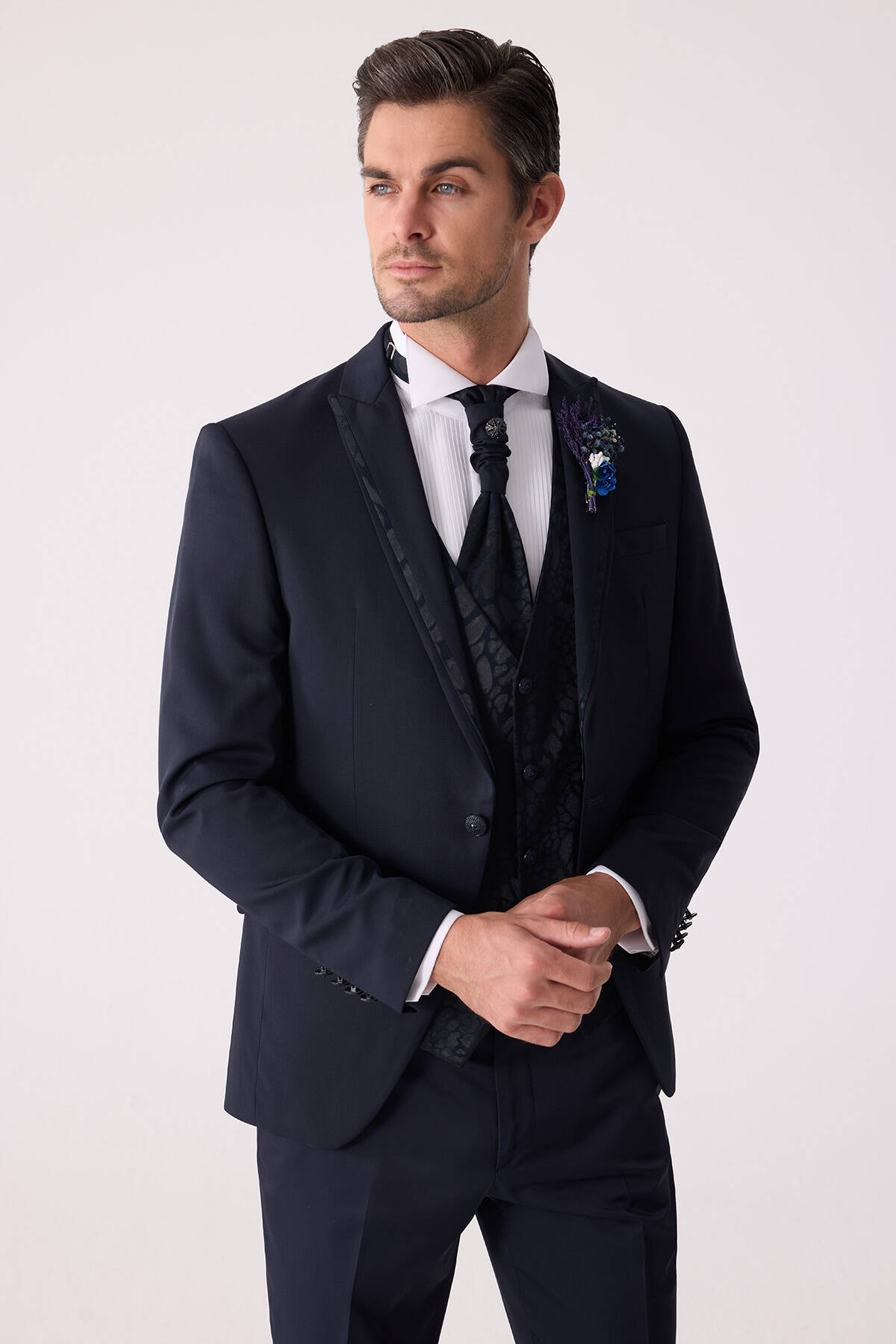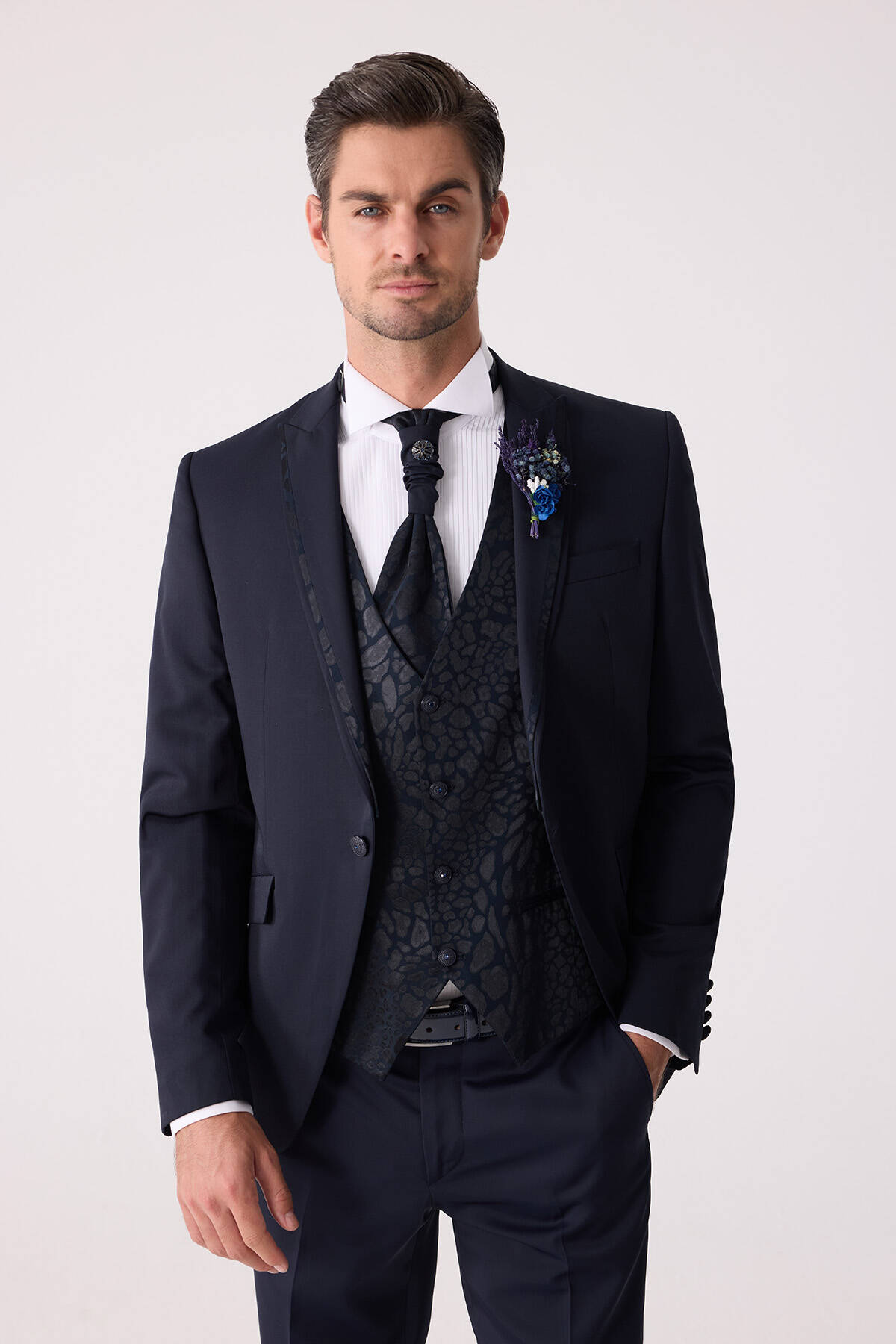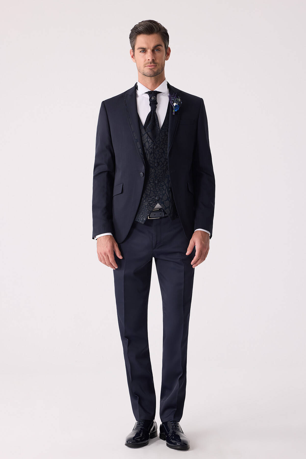 Düz lacivert rengin, zengin ve güçlü duruşunu sergileyen yelekli damatlık her mevsim kullanabileceğiniz çok yönlü bir şıklık sunar. Şıklığın zirvesine çıkan bu özel smokin, düğün gibi özel günler sonrasında da resmî stilinize yıllarca eşlik edebilir. Lacivert damatlığı; Ata Yaka gömlek, deri kemer, rugan klasik ayakkabı ve beyaz yaka mendili ile karizmatik ve çekici bir tarzda kombinleyebilirsiniz. İçinizdeki romantik beyefendiyi öne çıkarmak için kırmızı yaka çiçeği ve zincir gibi şık aksesuarlardan da yararlanabilirsiniz. YSF Giyim, klasik erkek modasına seçkin damatlık modelleri ile damga vurur. Siz de cazip fiyat seçenekleri ile lüks ve seçkin damatlık modellerini sipariş edebilirsiniz!