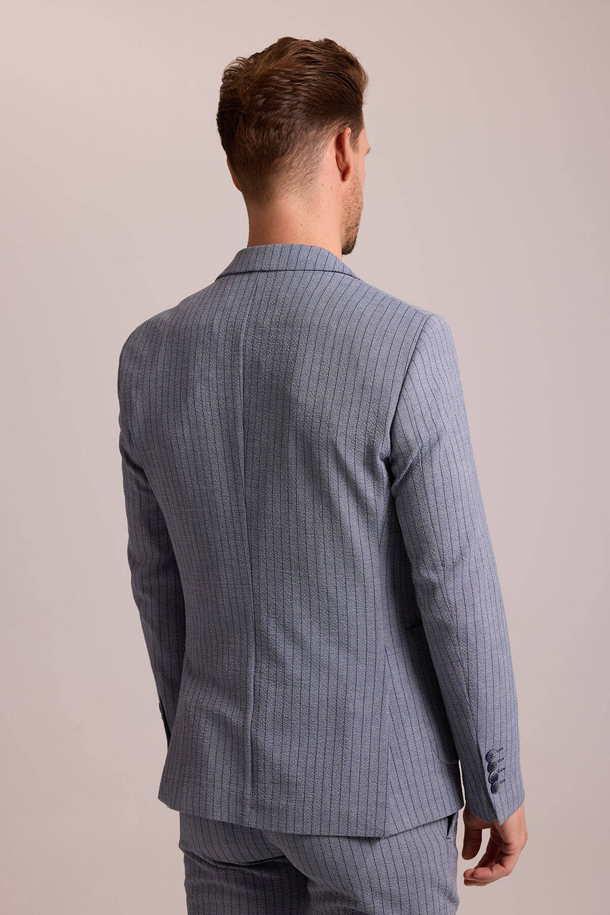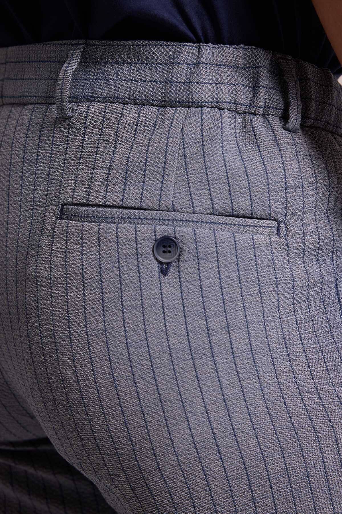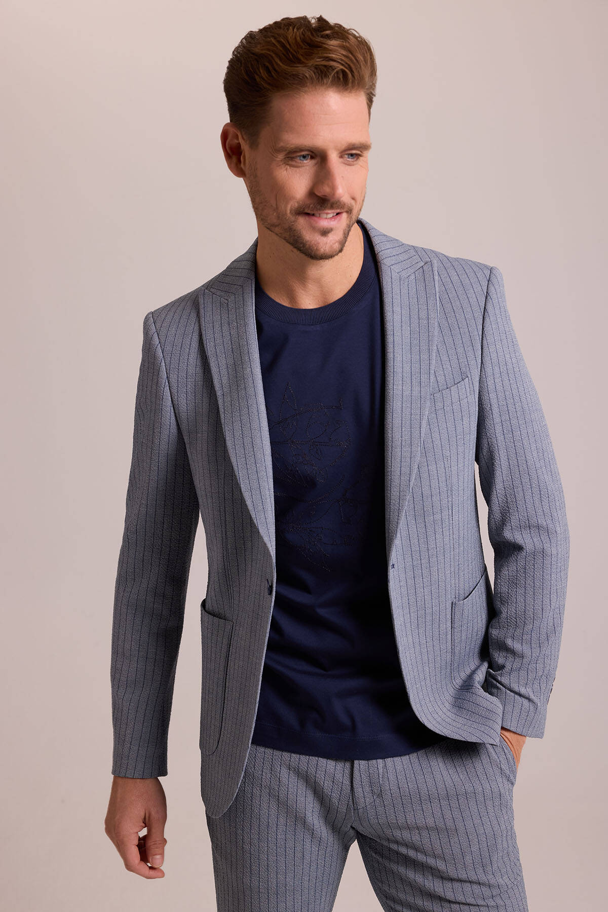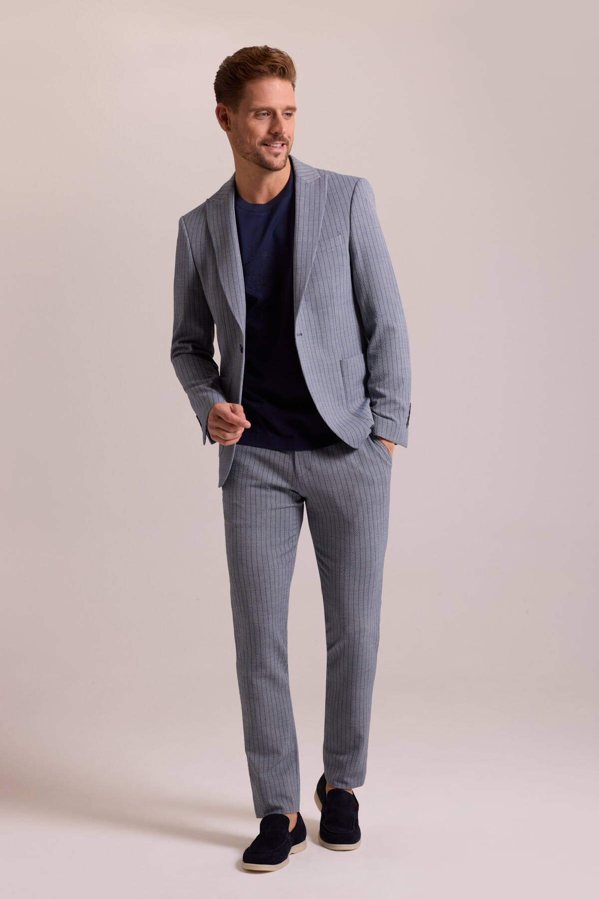 Erkek Lacivert Çizgili Regular Fit Beli Lastikli Mono Yaka Takım Elbise