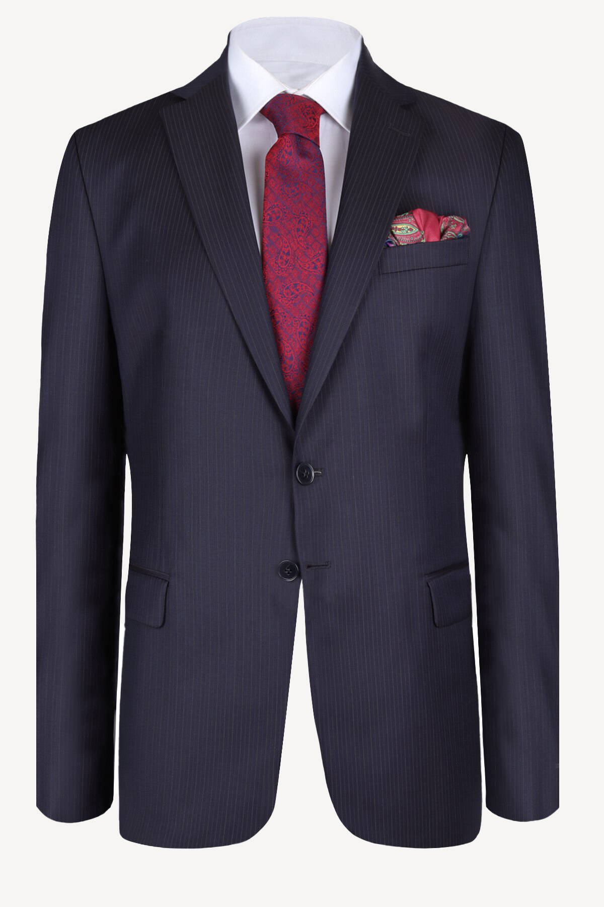 Erkek Lacivert Çizgili Regular Fit Takım Elbise