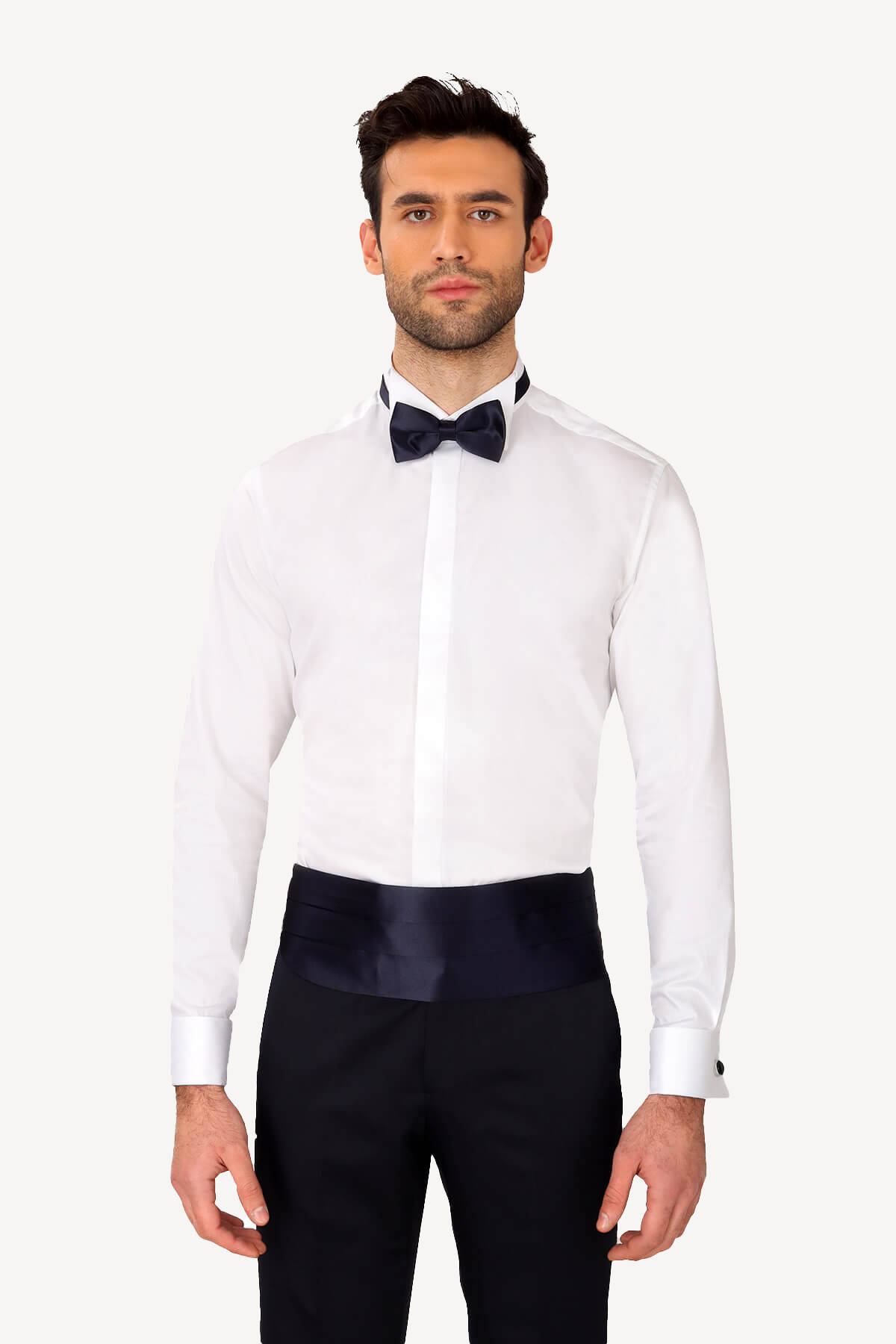 Kuşak ve papyon takımının düz lacivert tonu, zamansız ve derin vurgularıyla klasik giyim gardırobunuza sofistike bir tarz ekler. Önceden bağlanmış kelebek formundaki papyon ve üç pilili kuşak; düğün, balo ve resmî törenler için idealdir. Hayatınızın en özel anlarına güçlü ve karizmatik bir tarz ile imza atmak istiyorsanız bu şık seti, slim fit beyaz gömlek modelleri ile bir araya getirebilirsiniz. Monokrom tarzda bir stil için lacivert yelekli damatlık, rugan kemer, klasik ayakkabı, beyaz yaka çiçeği ve süsü de tercih edebilirsiniz. YSF Giyim, aksesuar koleksiyonunda usta zanaatkârların elinden çıkan birbirinden zarif kuşak takım modellerine yer verir. Siz de resmî bir etkinlik veya düğün söz konusu olduğunda stilinizi ayırt edici bir şıklığa kavuşturmak için kuşak setlerini en özel fiyatlarla seçebilirsiniz!