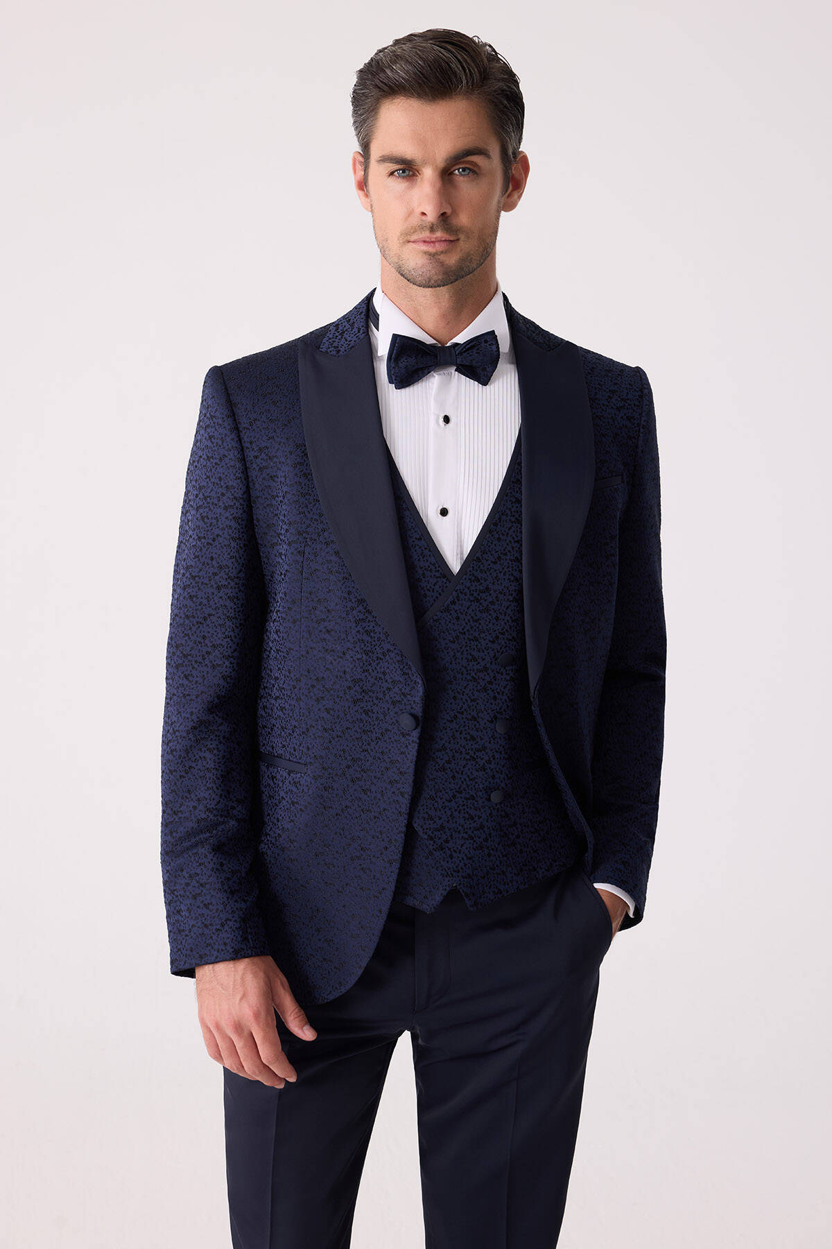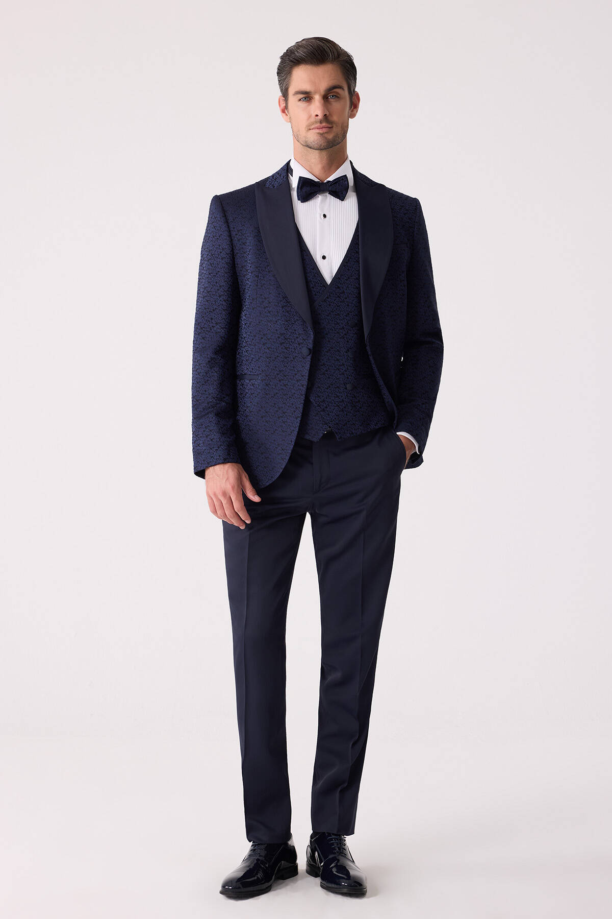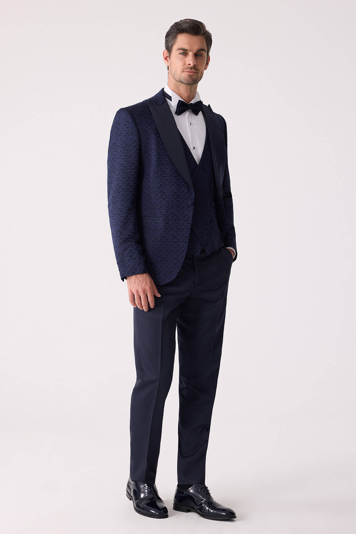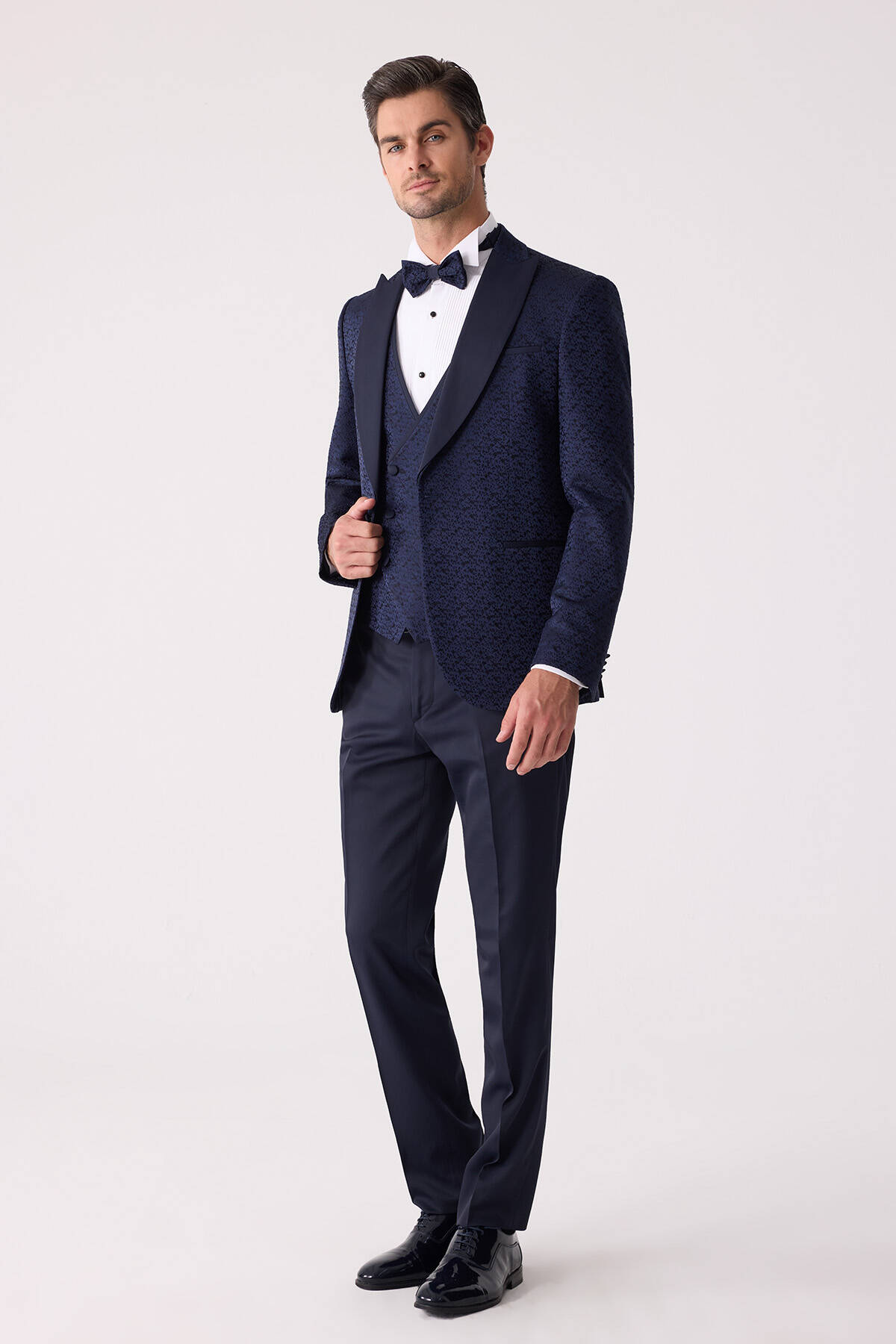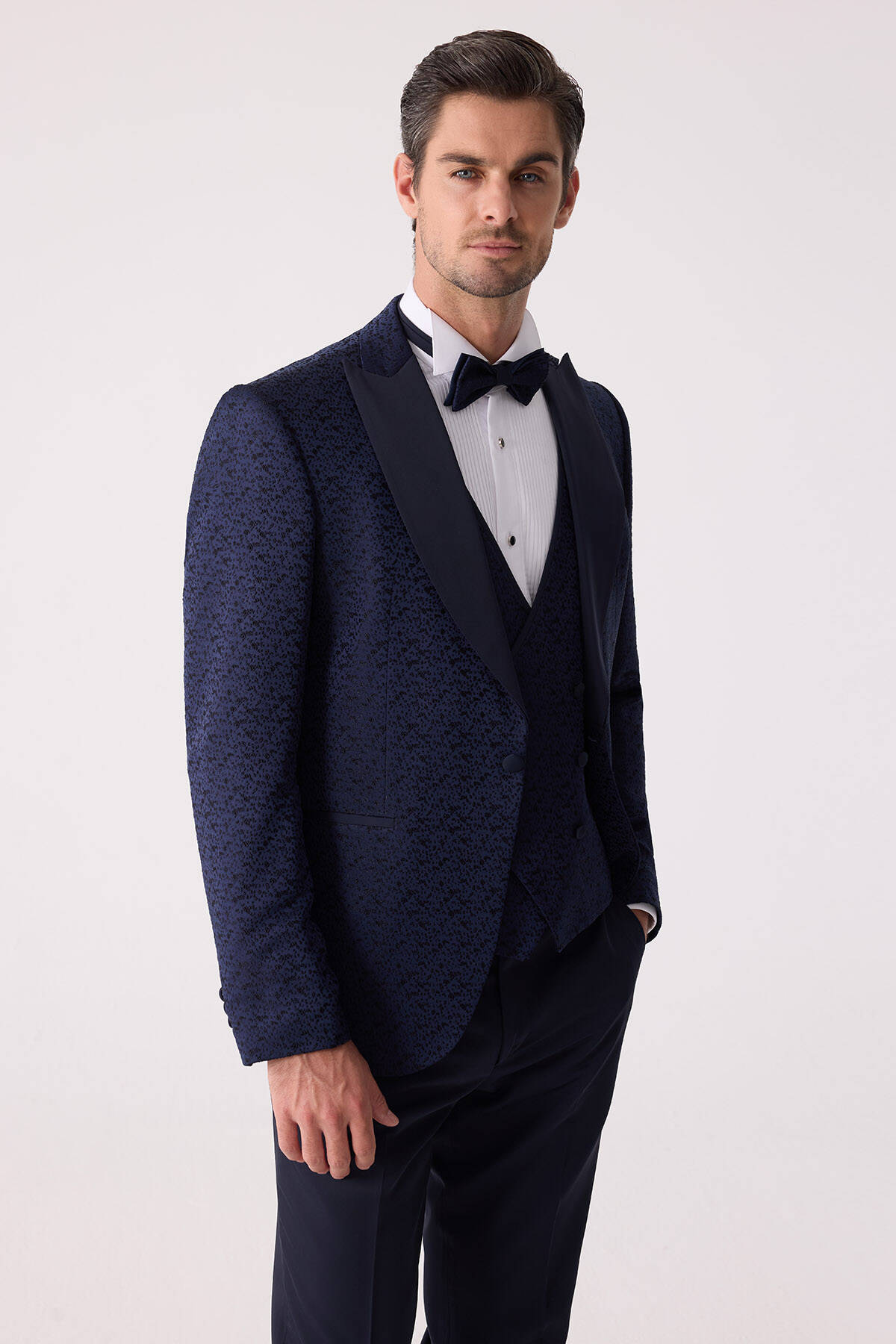 Gelince Haber VerYSF Giyim damatlık koleksiyonunun gözdesi olan Erkek Lacivert Slim Fit Kırlangıç Yaka Desenli Damatlık, klasik ve sofistike bir şıklık için düğün töreni seçiminiz olabilir. Desenli bir cekete sahip olan bu damatlık geleneksel çizgilerin modern yorumları ile karizmatik bir silüet sunar. Damatlığın slim fit olarak dizayn edilen kalıbı geleneksel erkek giyim şıklığına çağdaş bir yorum kazandırmak isteyen beyefendiler için idealdir. Üzerinize mükemmel şekilde uyum sağlayan ceketin çift yırtmaç ayrıntıları, premium bir his sunar. Kırlangıç yaka tasarımı ise klasik smokin tarzını klas bir şekilde ifade etmek için özel bir seçimdir.