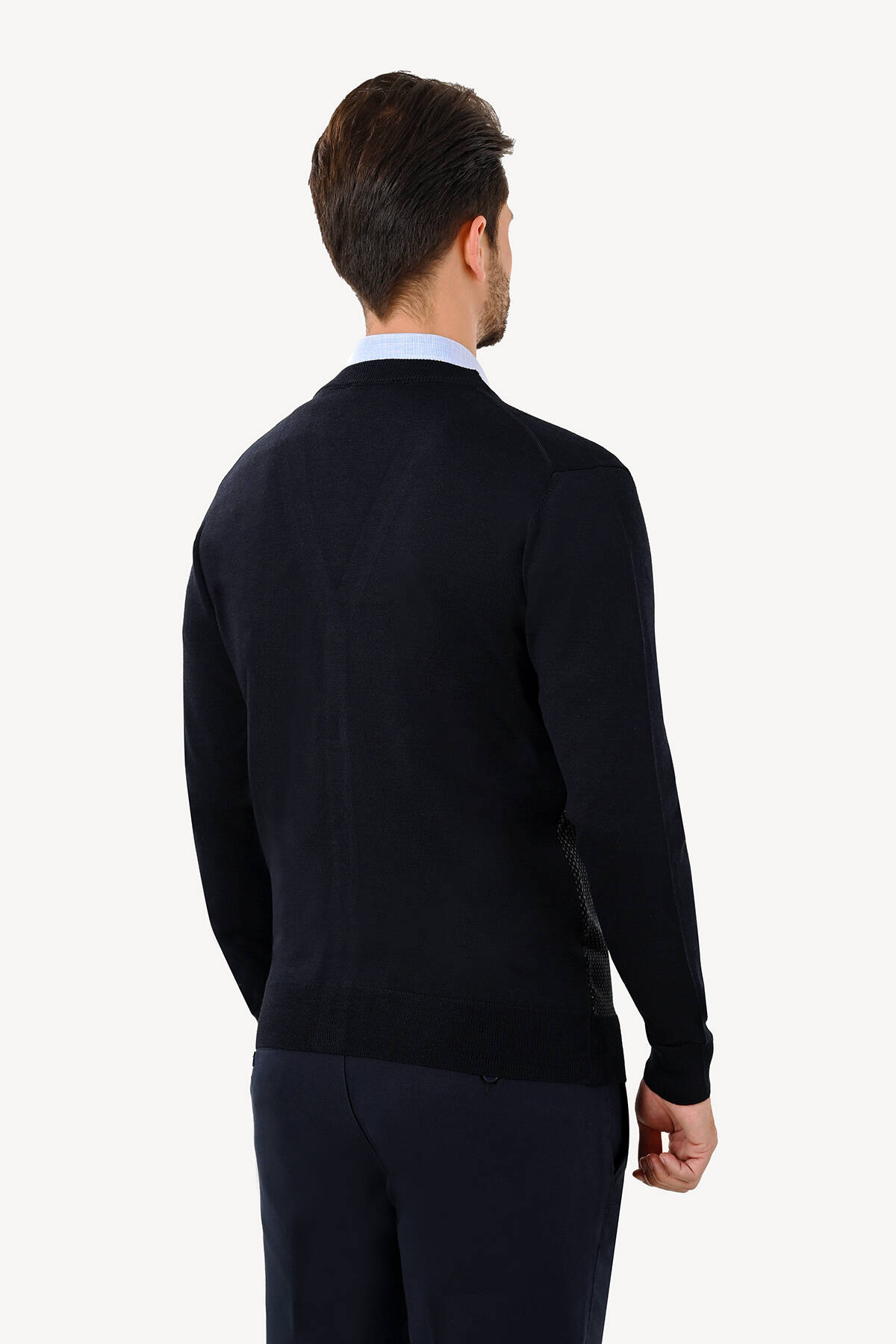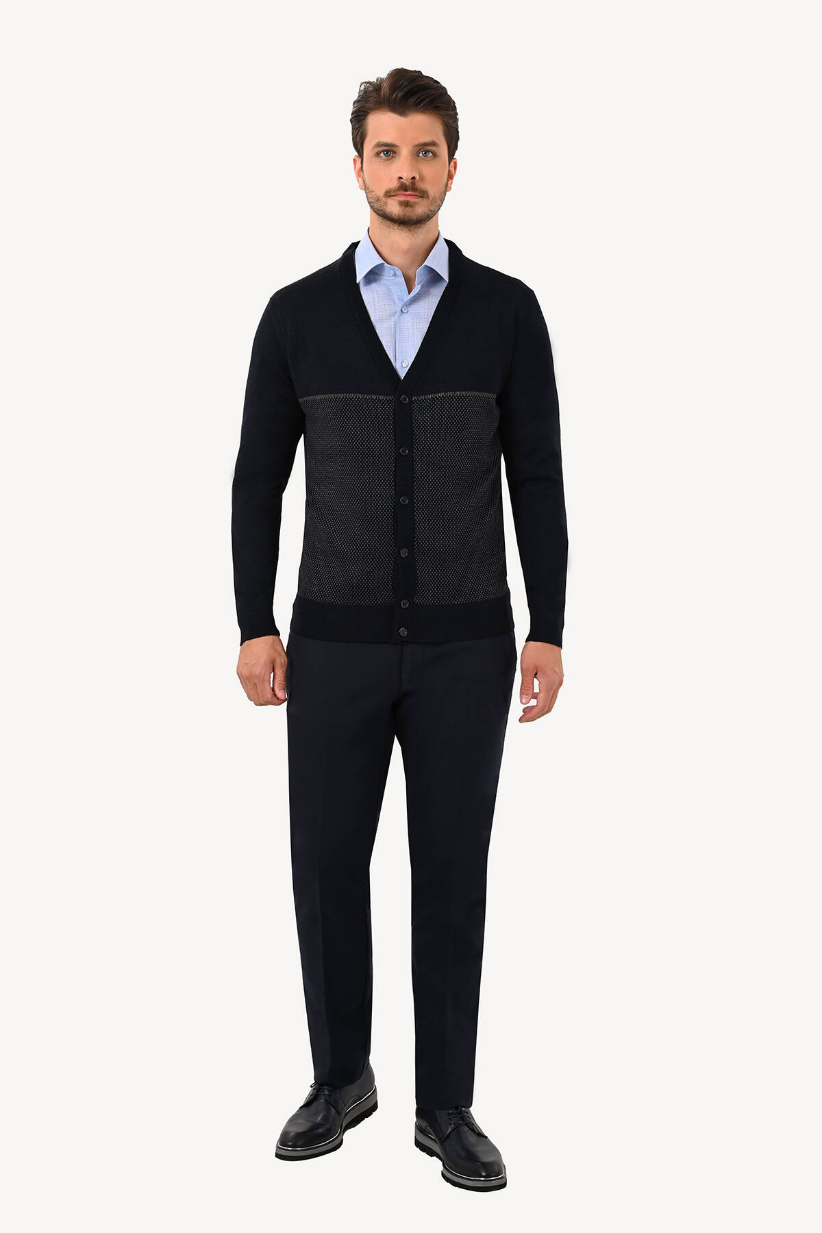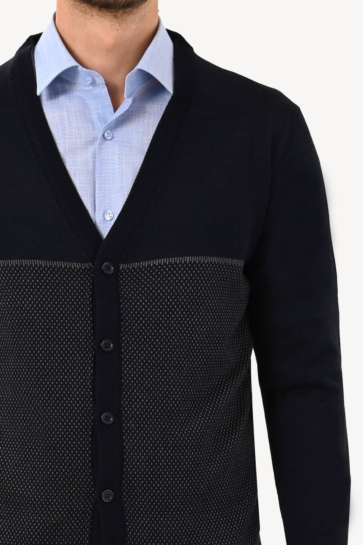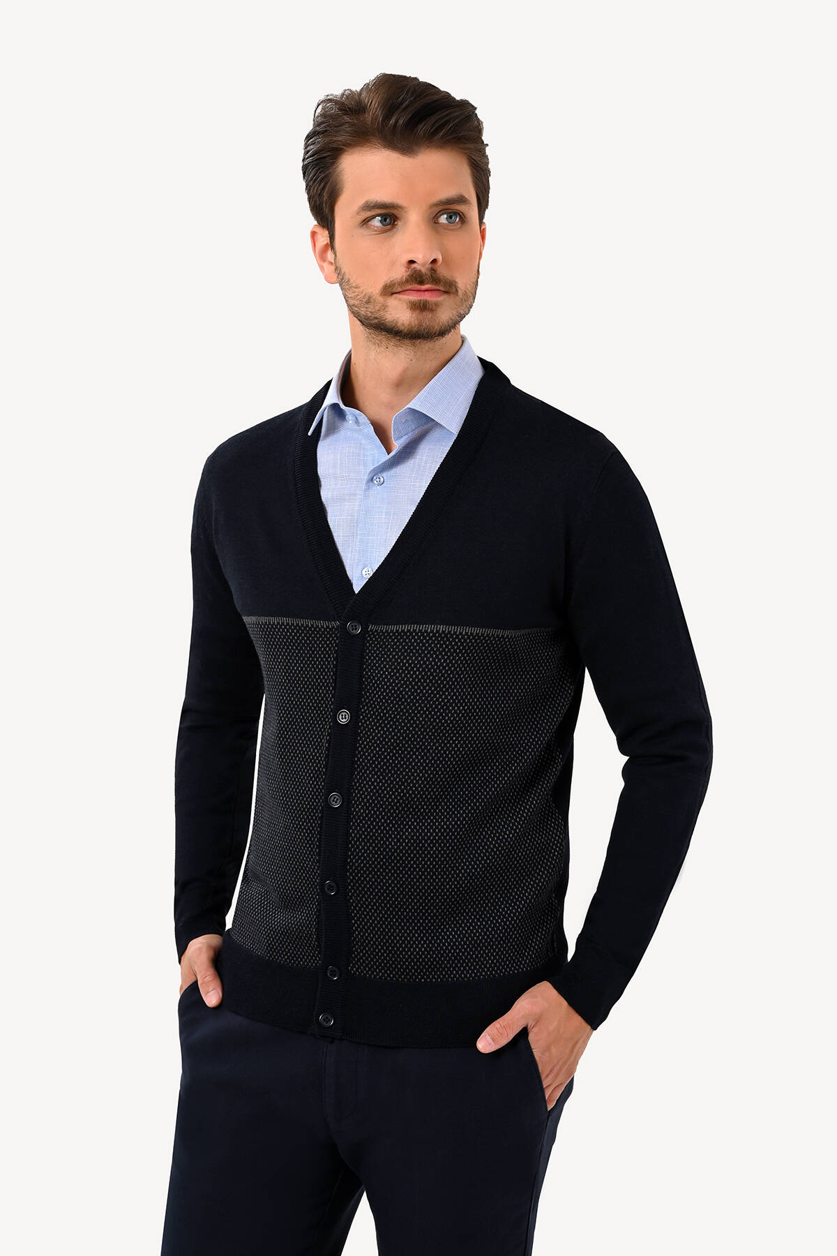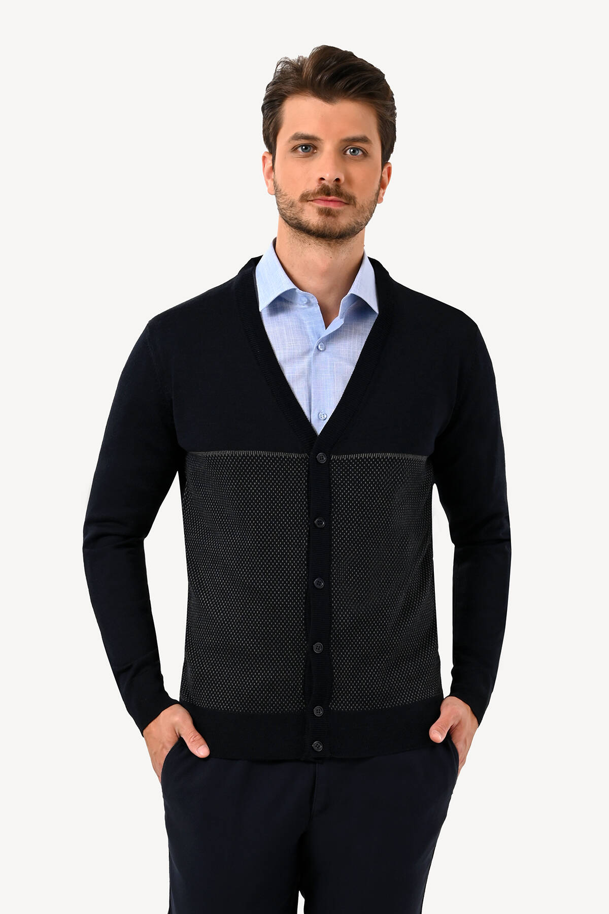 Erkek Lacivert Erkek Hırka Desenli