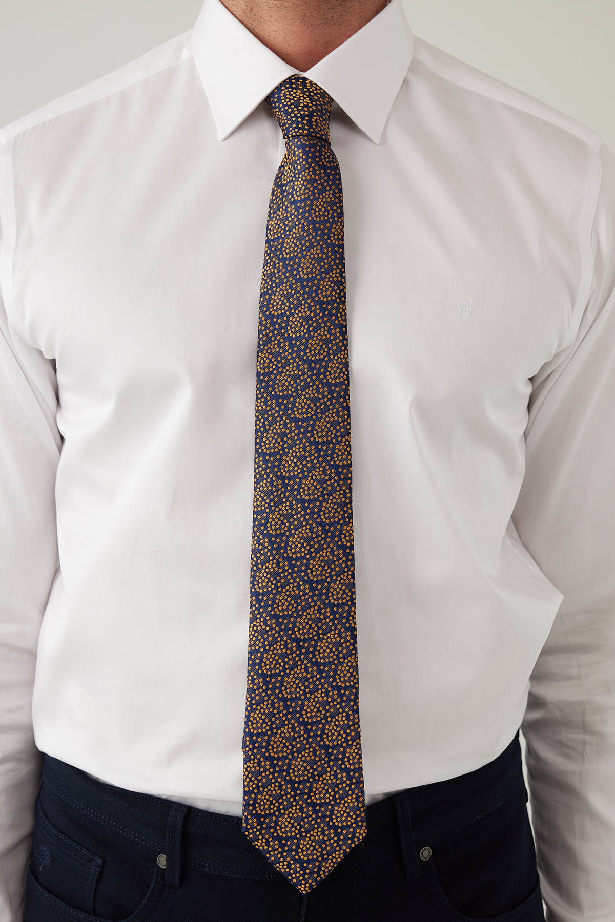 Erkek Lacivert Gold Desenli Kravat Mendilli Set