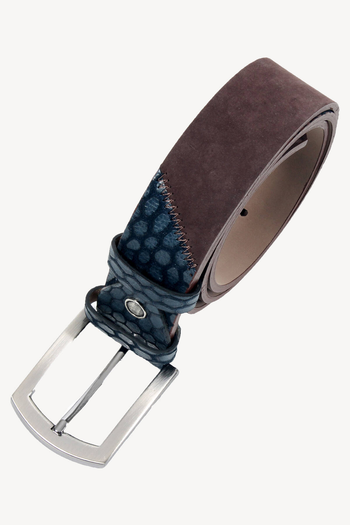 Erkek Lacivert Kahve Nubuk Desenli Spor Deri Kemer