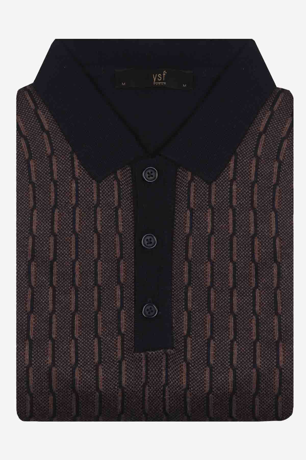 Erkek Lacivert Kahve Polo Yaka Desenli Triko