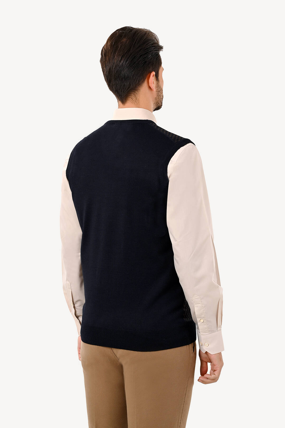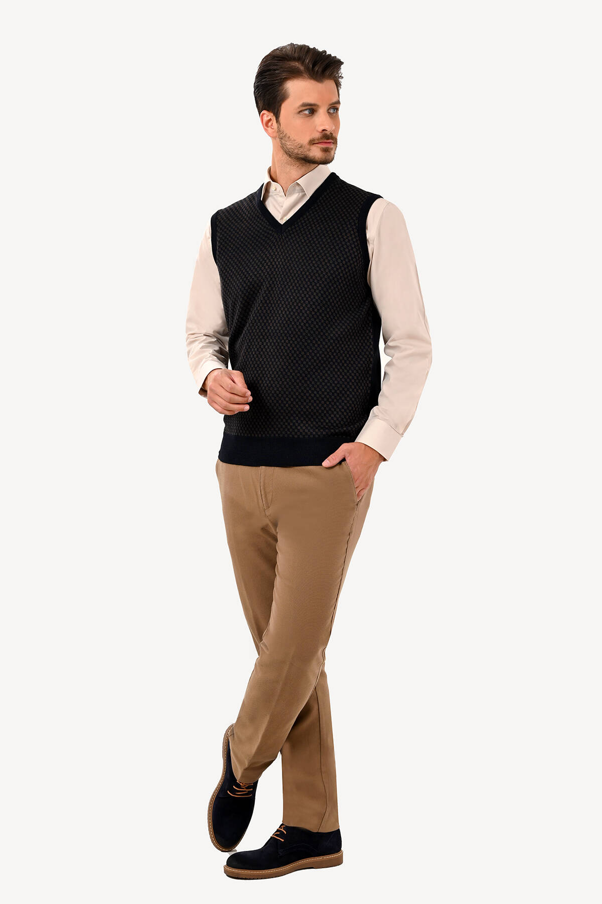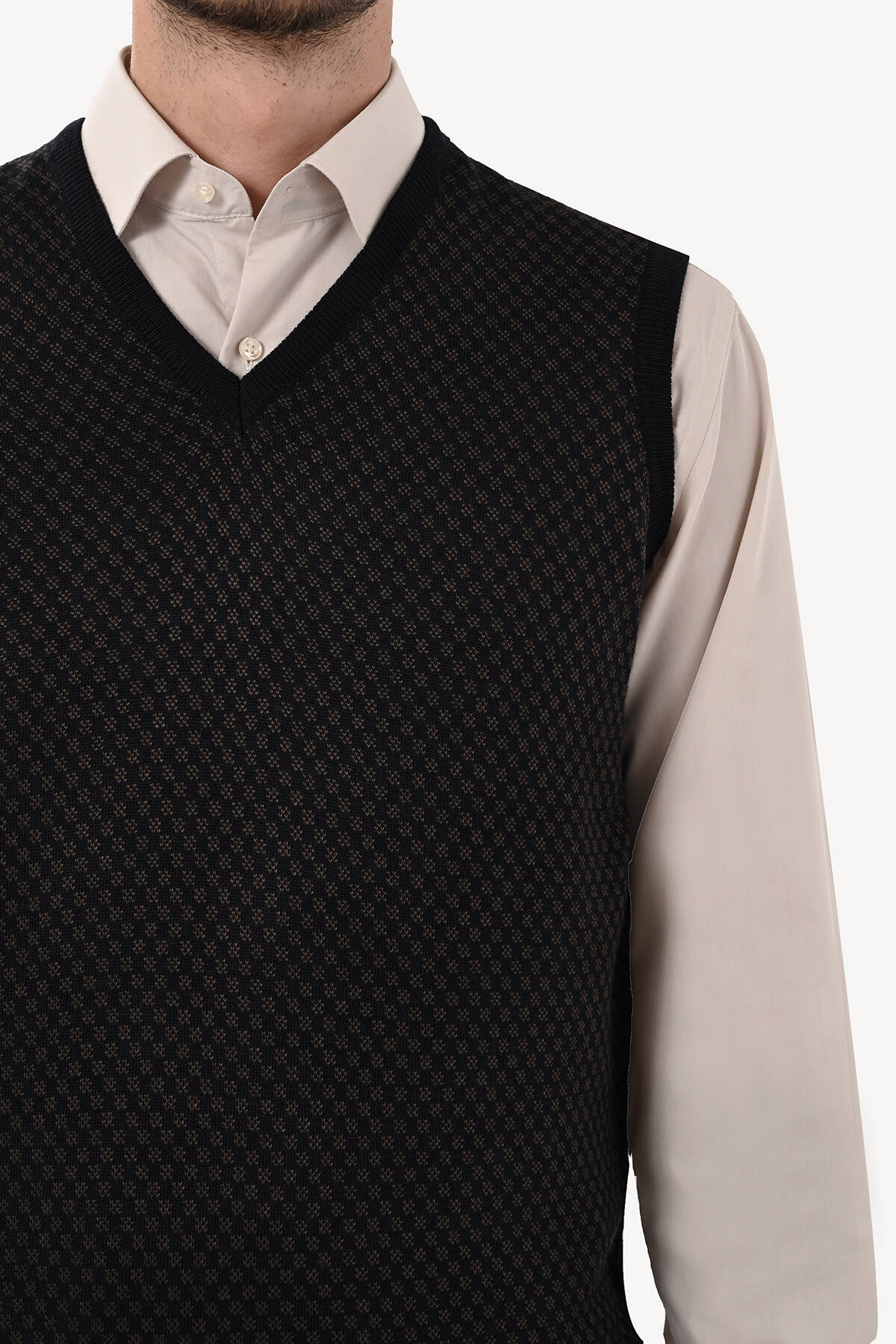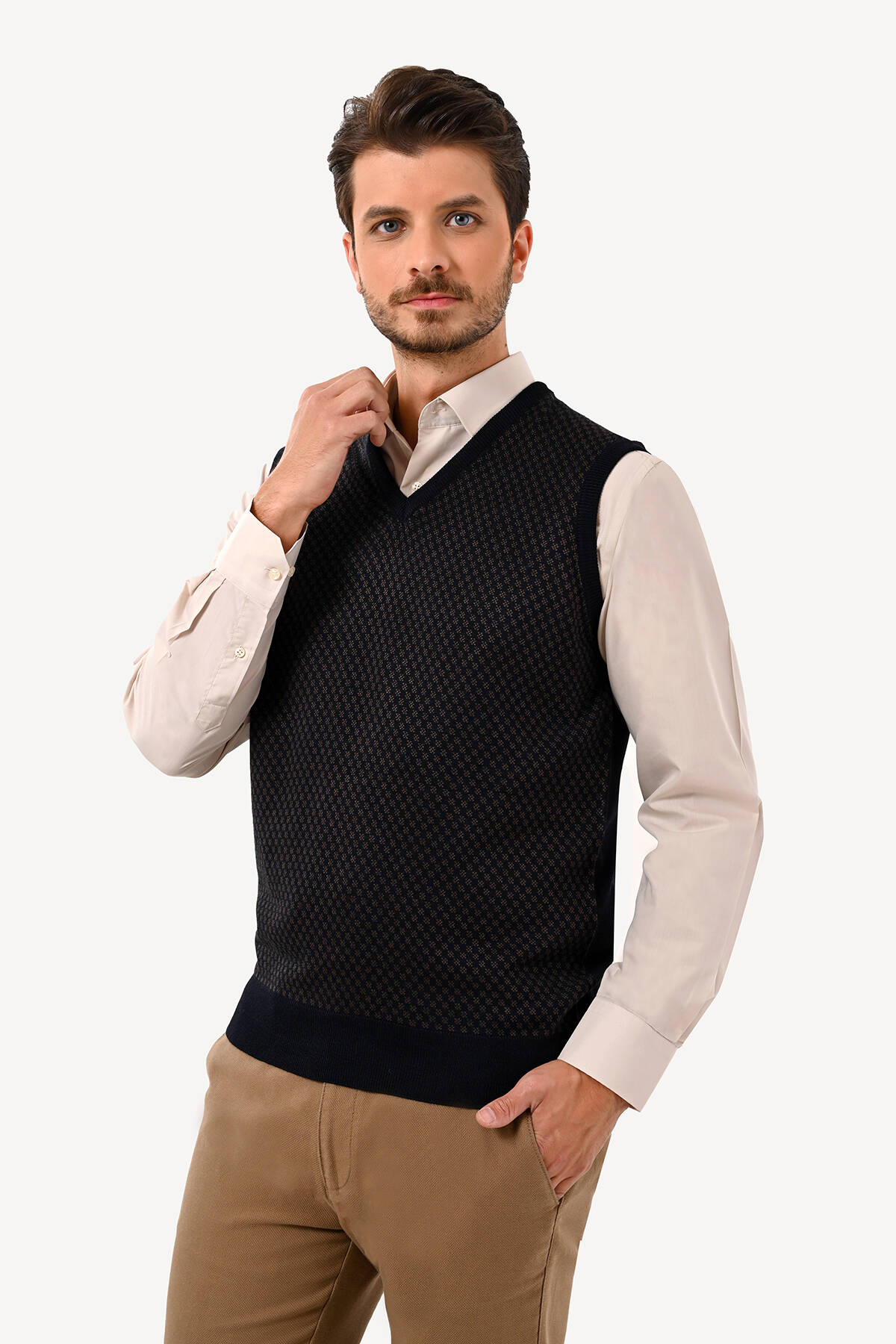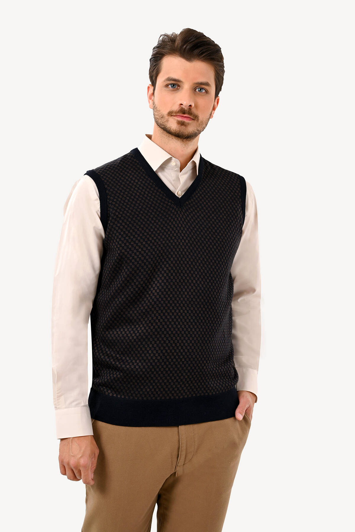 Erkek Lacivert Kahve Süveter Klasik Desenli