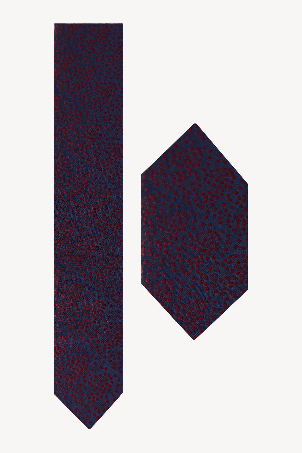Erkek Lacivert Kırmızı Desenli Kravat Mendilli Set