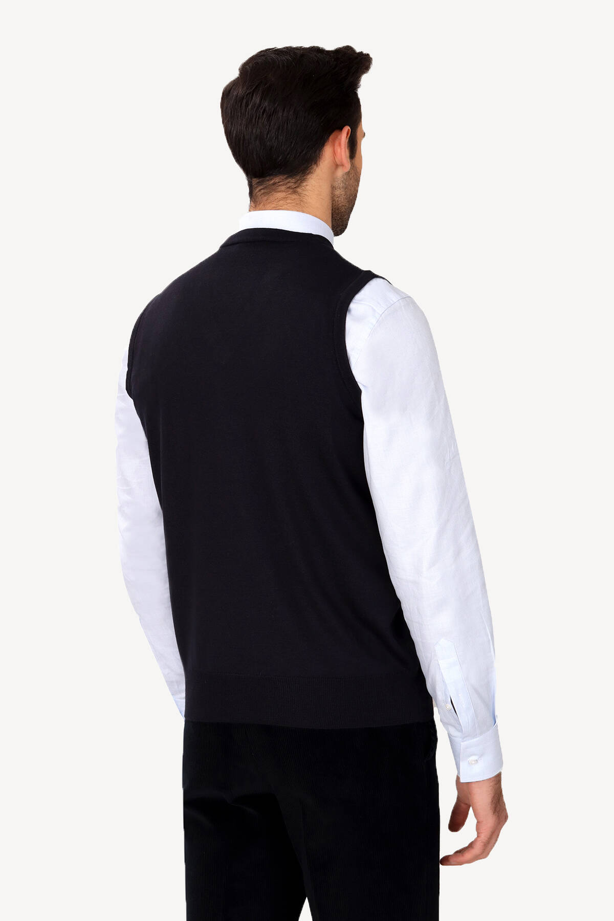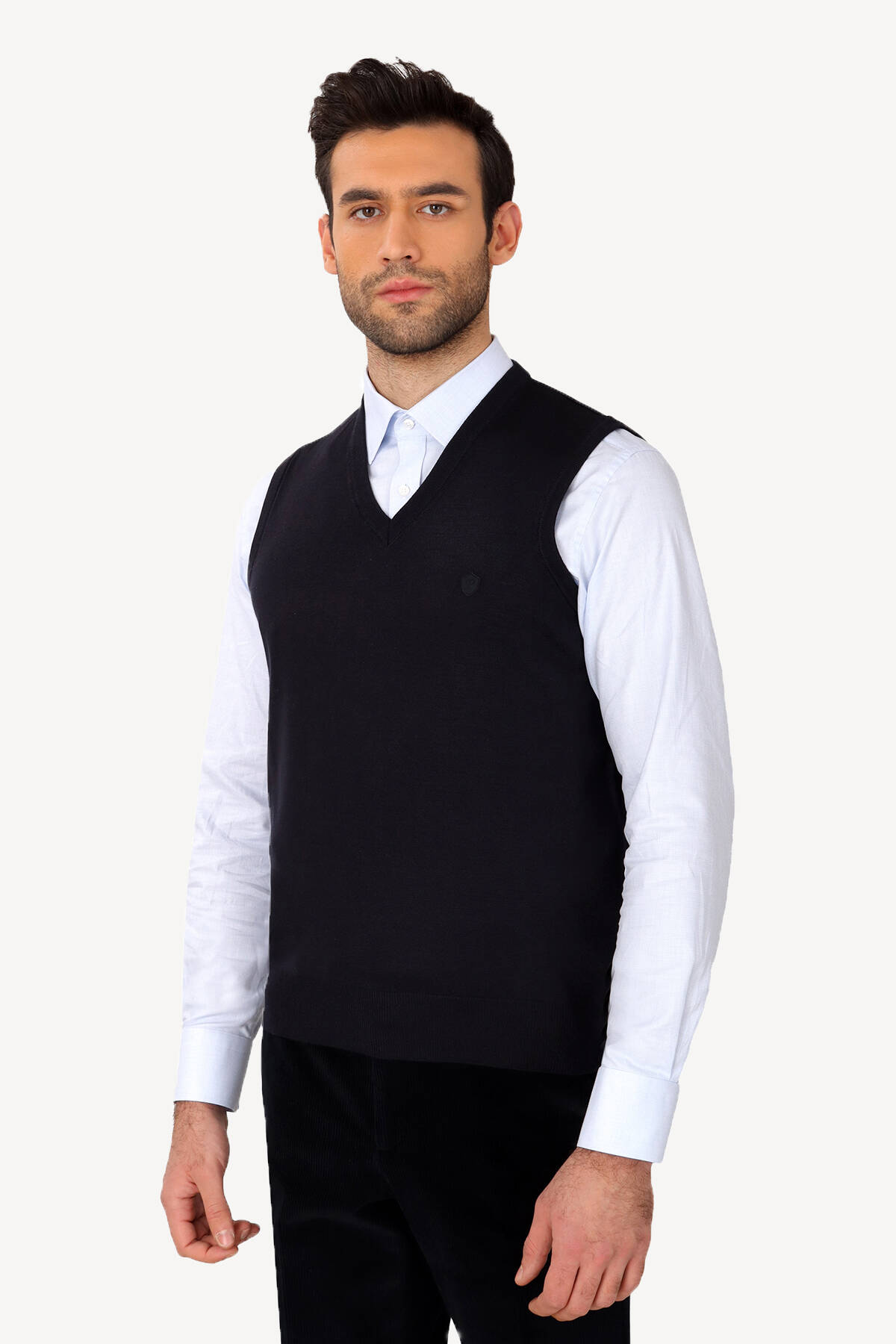 Erkek Lacivert Klasik Yünlü V yaka Triko Süveter