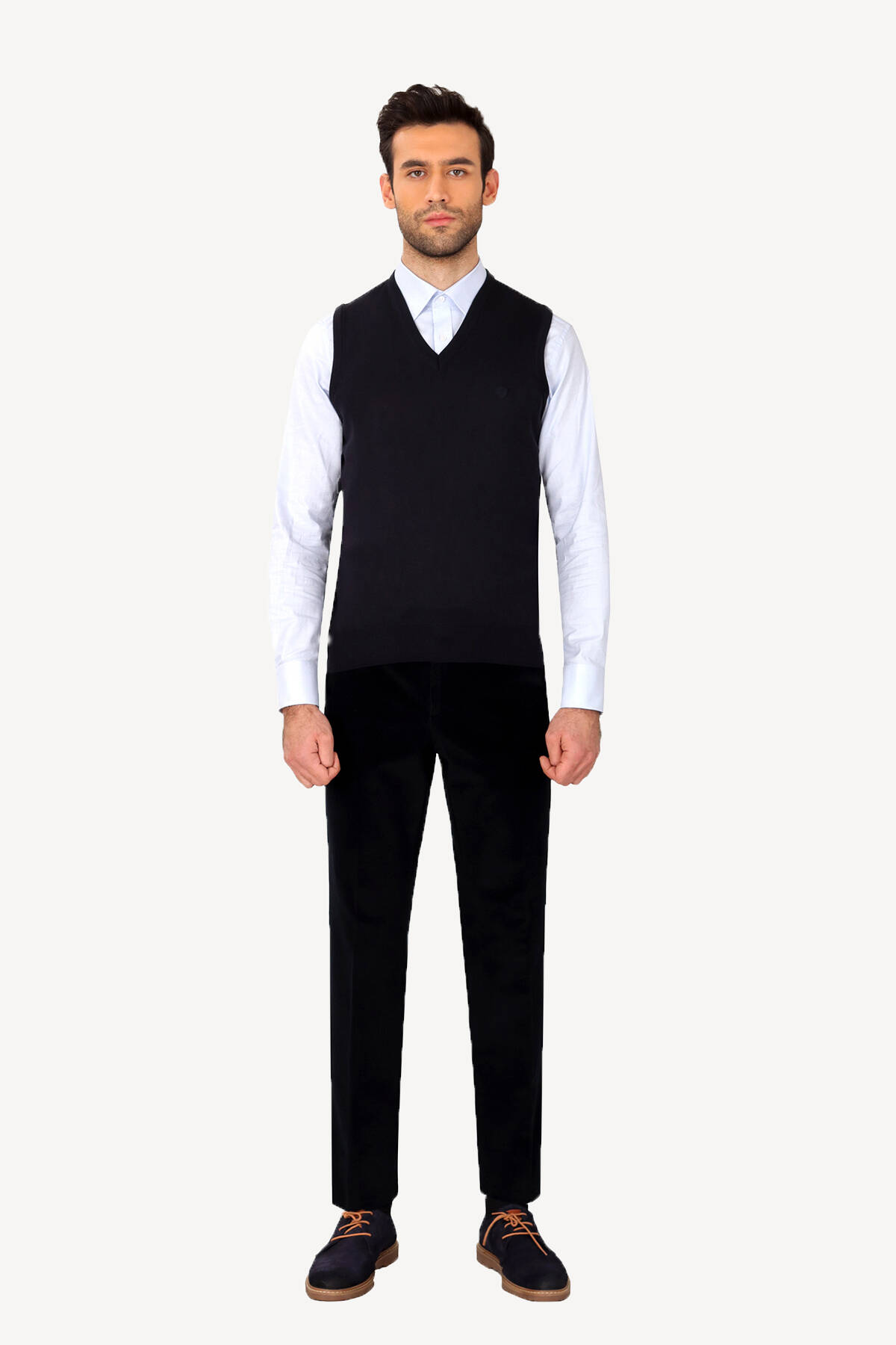 Erkek Siyah Klasik Yünlü V yaka Triko Süveter