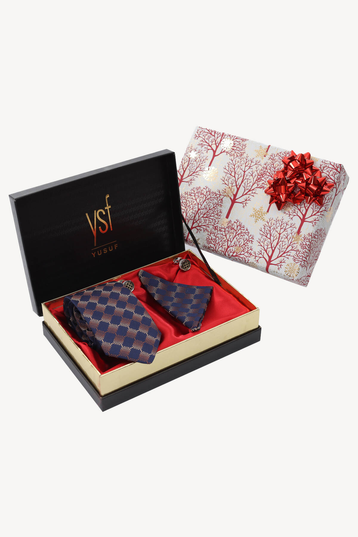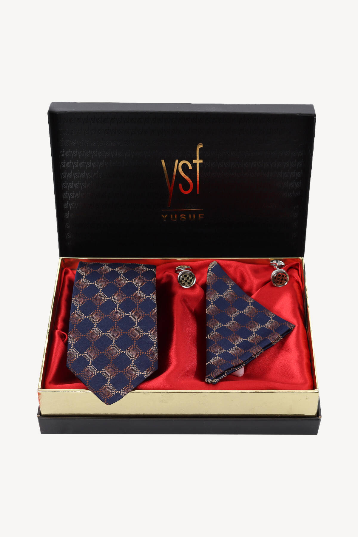 Erkek Lacivert Kravat Mendil Kol Düğmesi Set