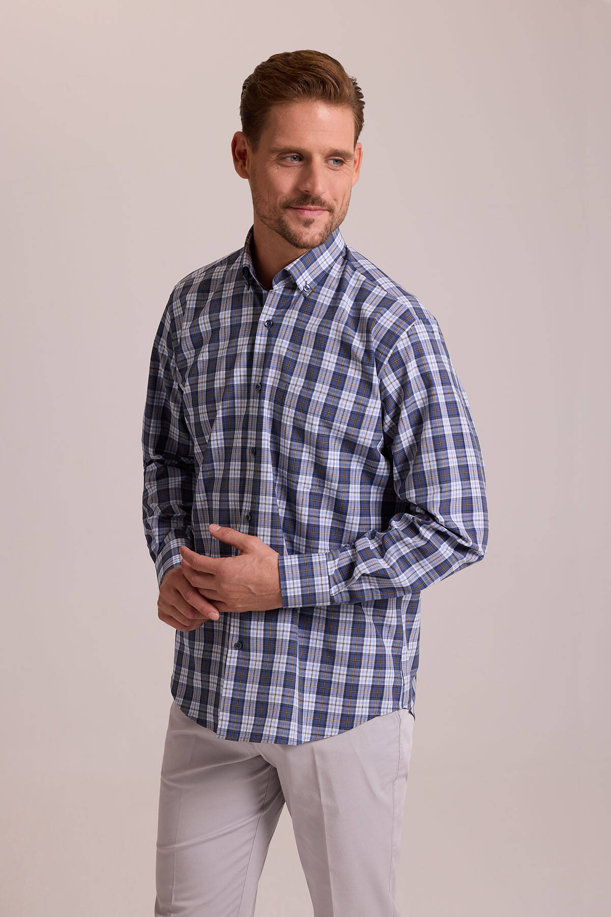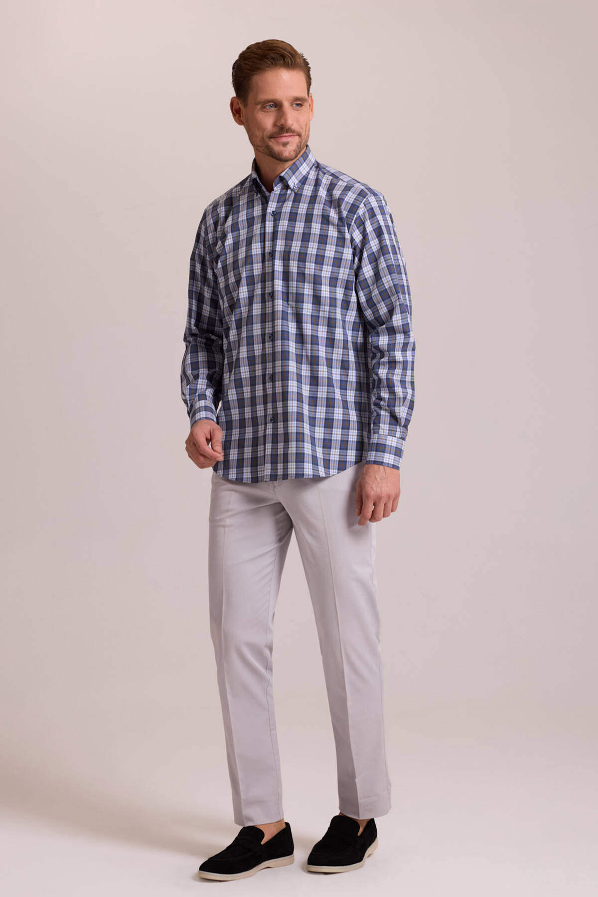 Gelince Haber VerYSF Giyim rahatlığını stil ile buluşturan Erkek Lacivert Oversize Düğmeli Yaka Kareli Gömlek, günlük kombinlerinize zamansız bir şıklık katıyor. Lacivert tonlarının hakim olduğu kareli deseni ve düğmeli yaka detayı ile modern ve sportif bir görünüm sunuyor. Oversize kesimi sayesinde özgürce hareket edebilir ve gün boyu rahatlığın keyfini çıkarabilirsiniz. Kaliteli ve hafif dokusu sıcak havalarda bile serin ve rahat kalmanızı sağlıyor. Bu gömleği düz renk jean pantolonlar ya da chino pantolonlarla tamamlayarak hafta sonu buluşmalarında, arkadaş toplantılarında veya serin yaz akşamlarında tercih edebilirsiniz. İster pantolonunuzun içinde isterseniz de dışında kullanabilirsiniz. YSF Giyim'in özel parçalarından olan bu gömlek, stilinizin vazgeçilmezleri arasına girecek.