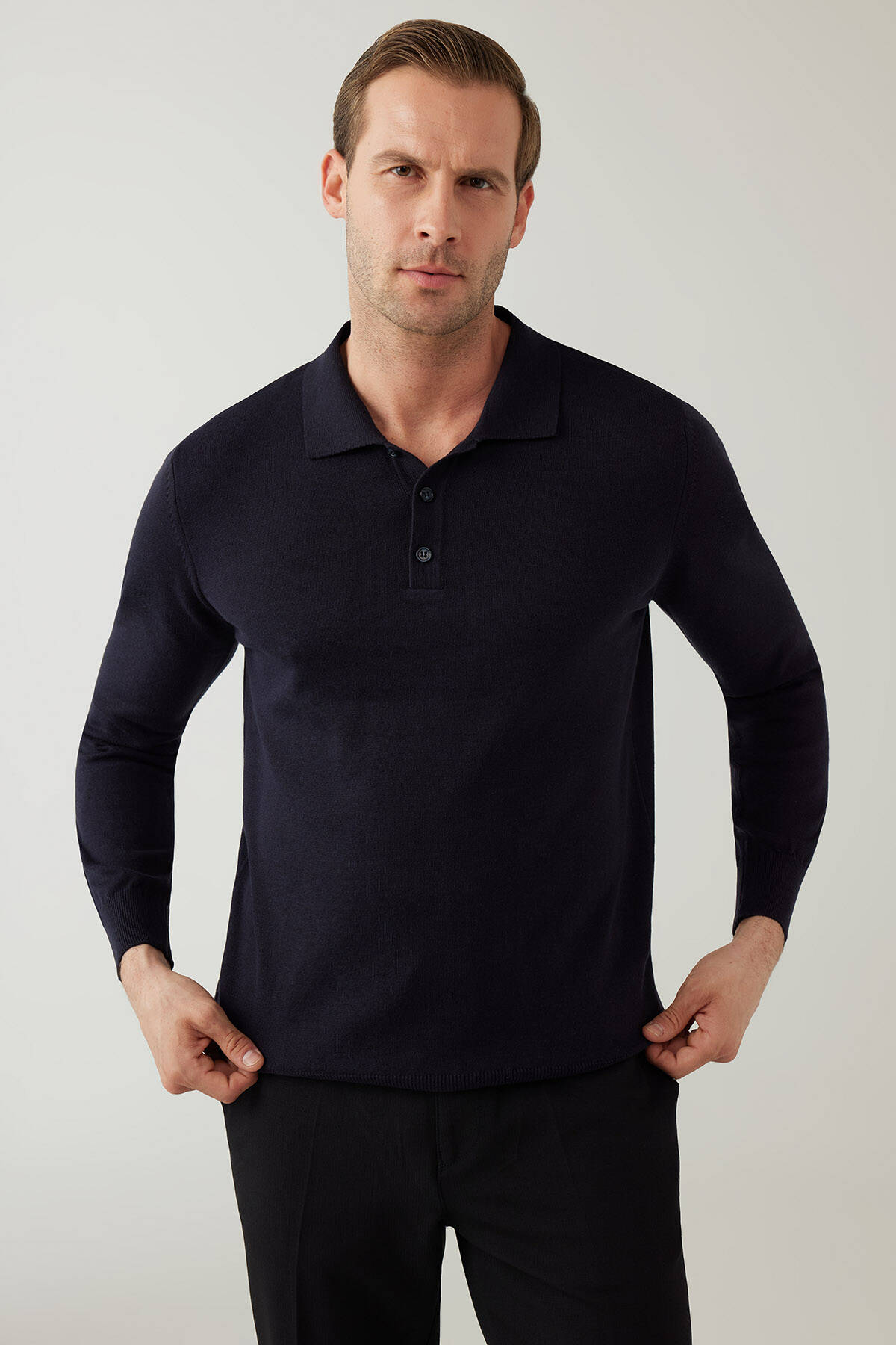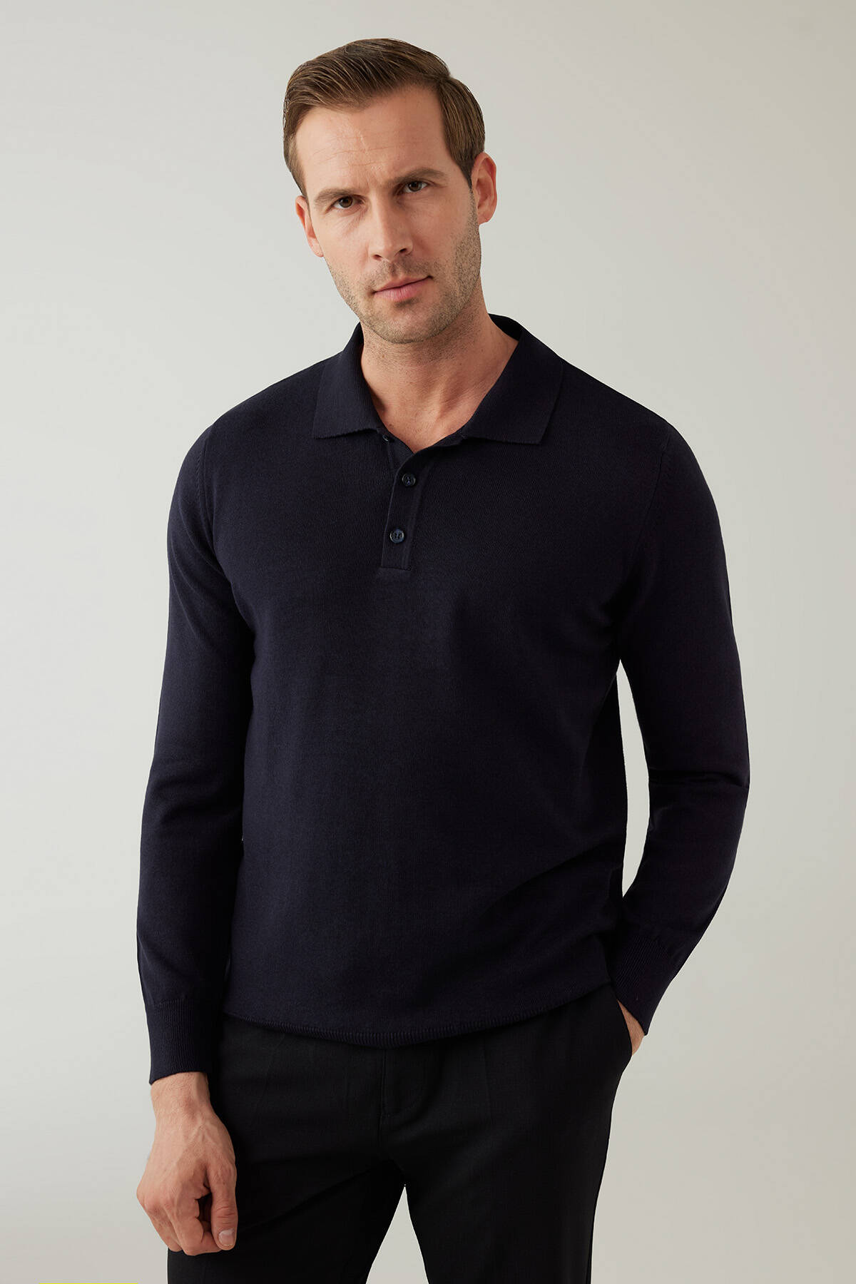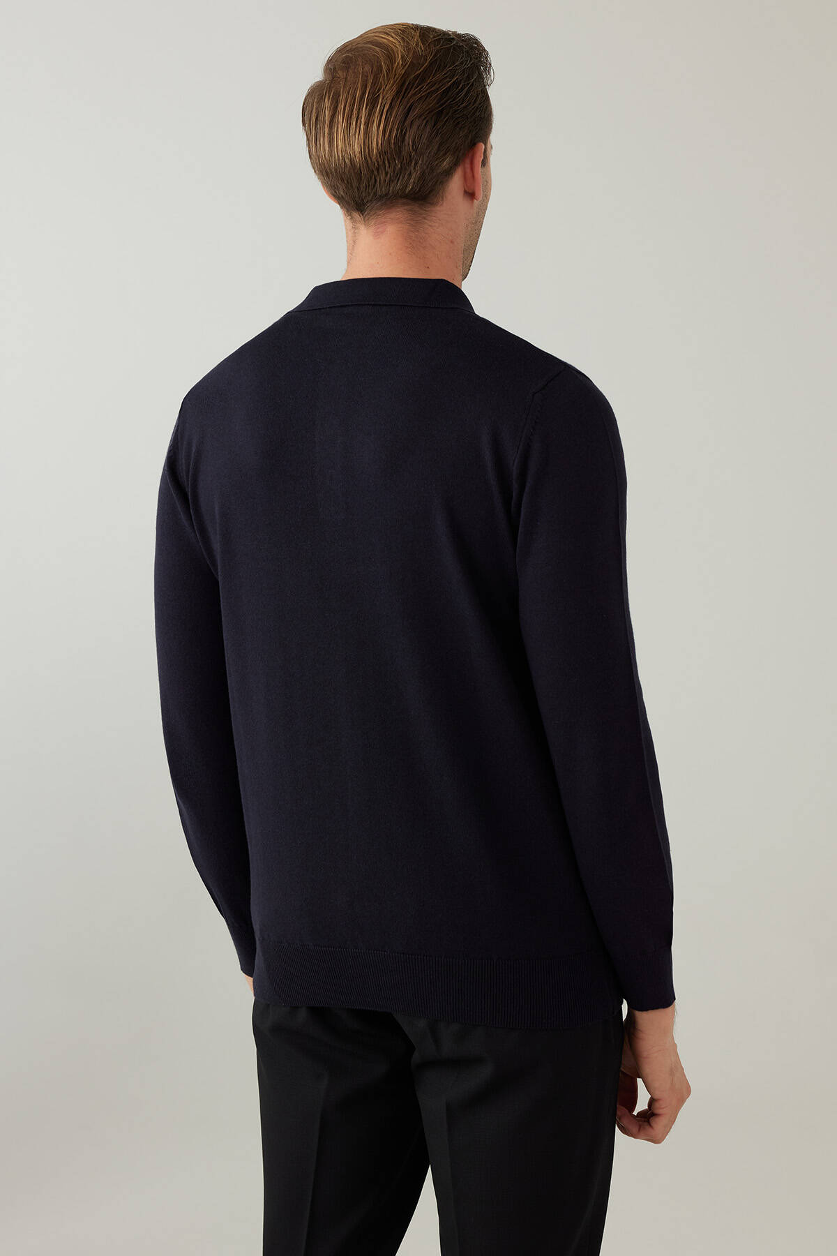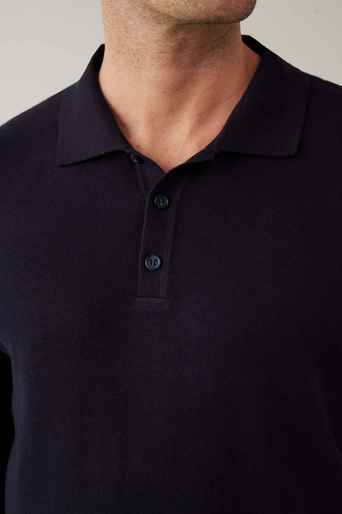 Erkek Lacivert Pamuklu Polo Yaka Triko