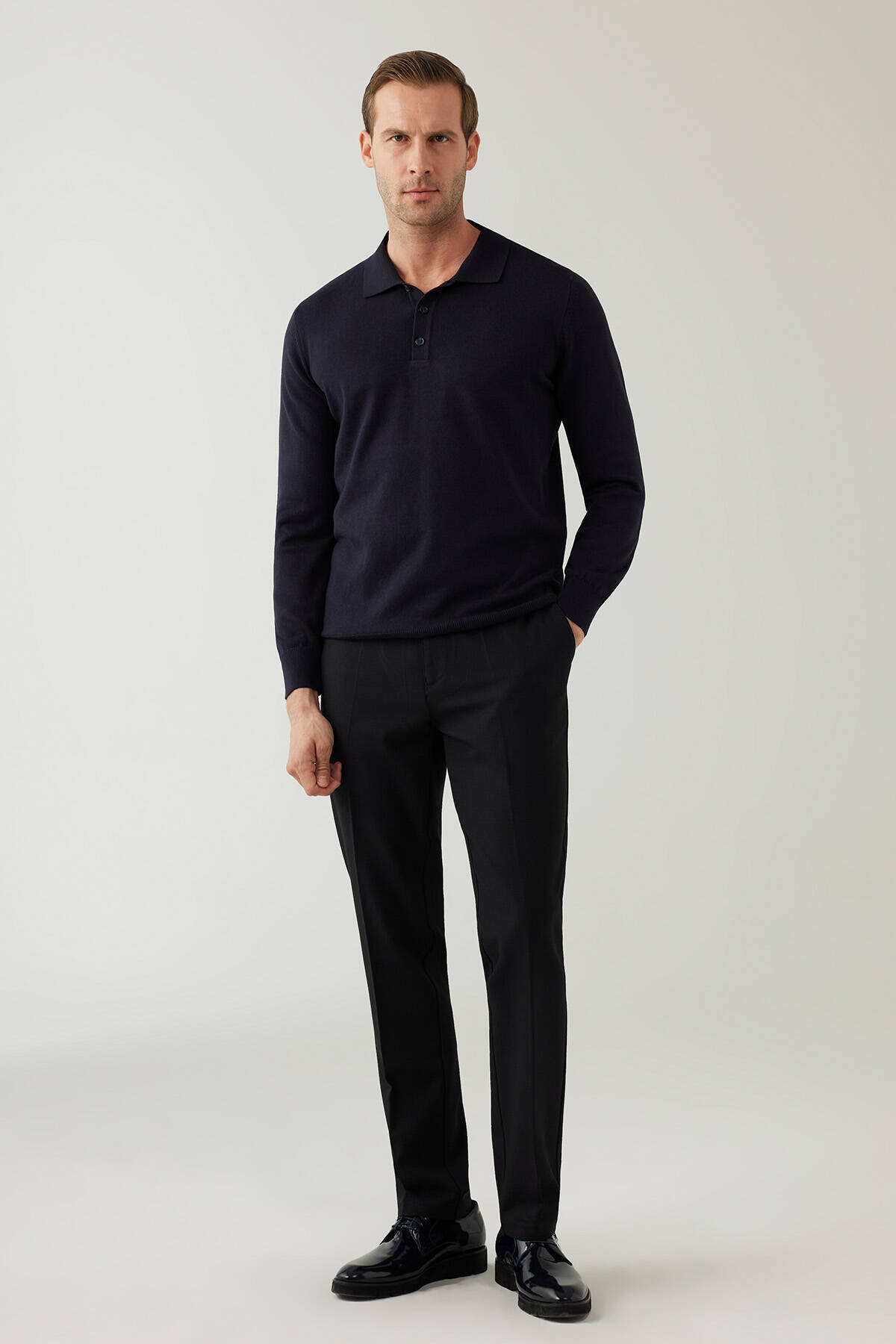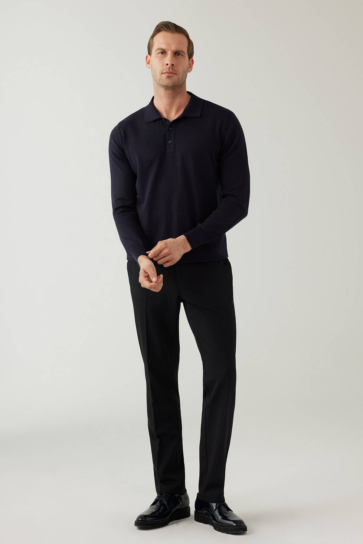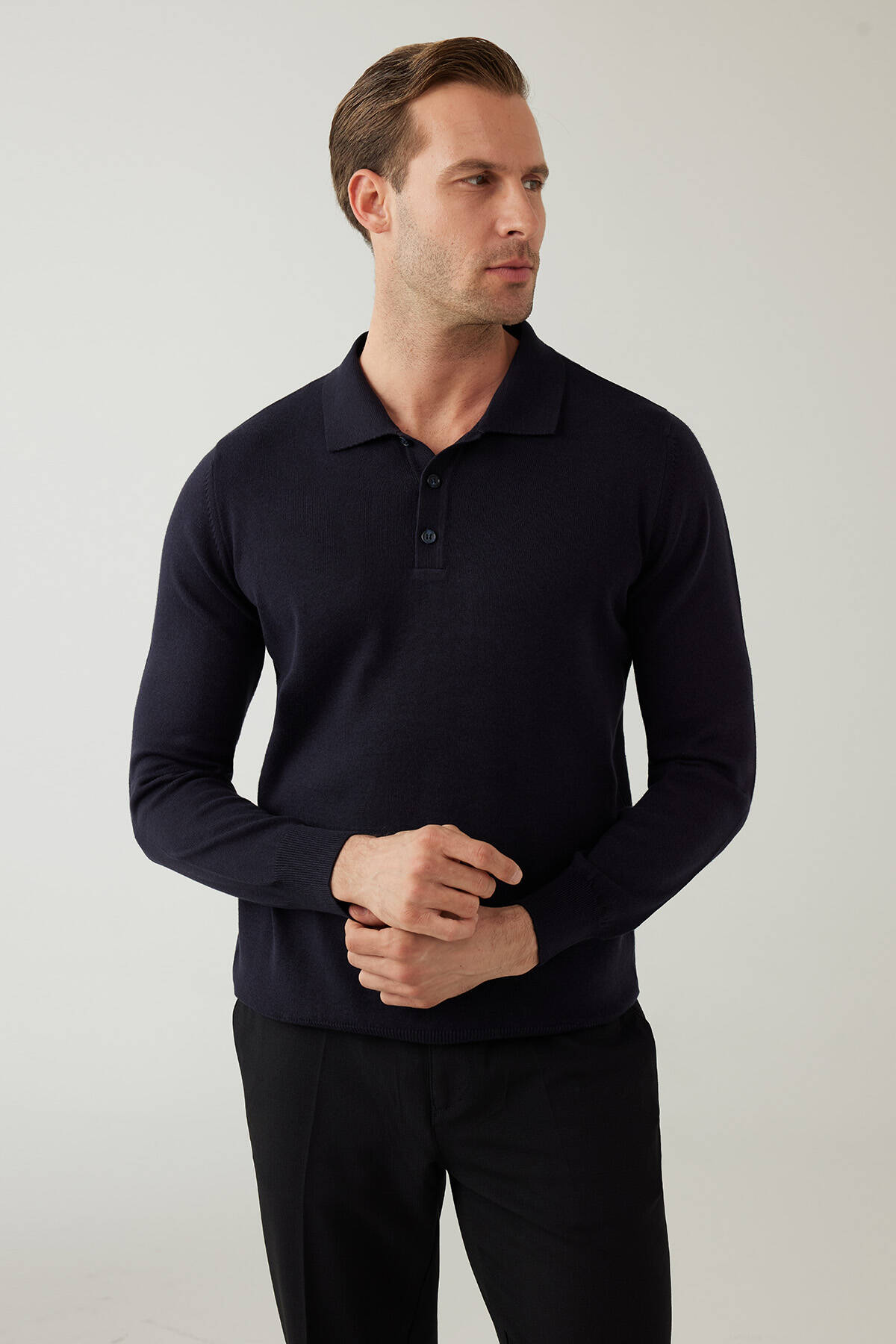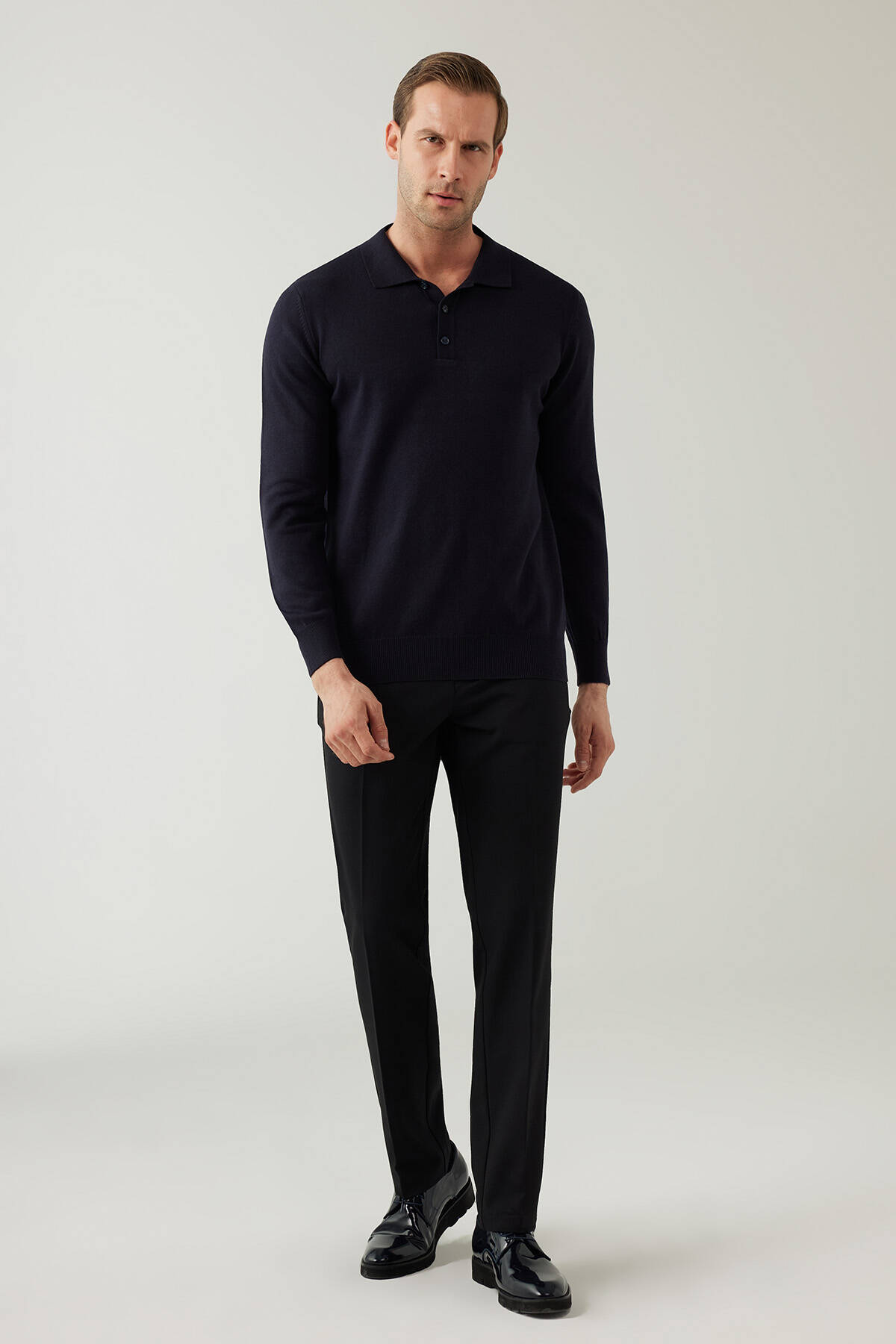 Erkek Lacivert Pamuklu Polo Yaka Triko