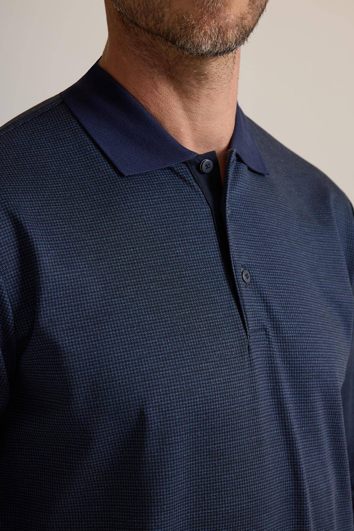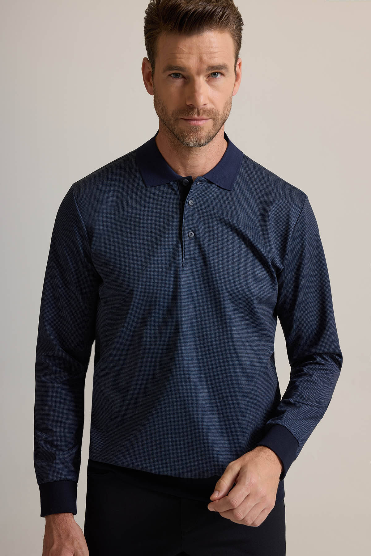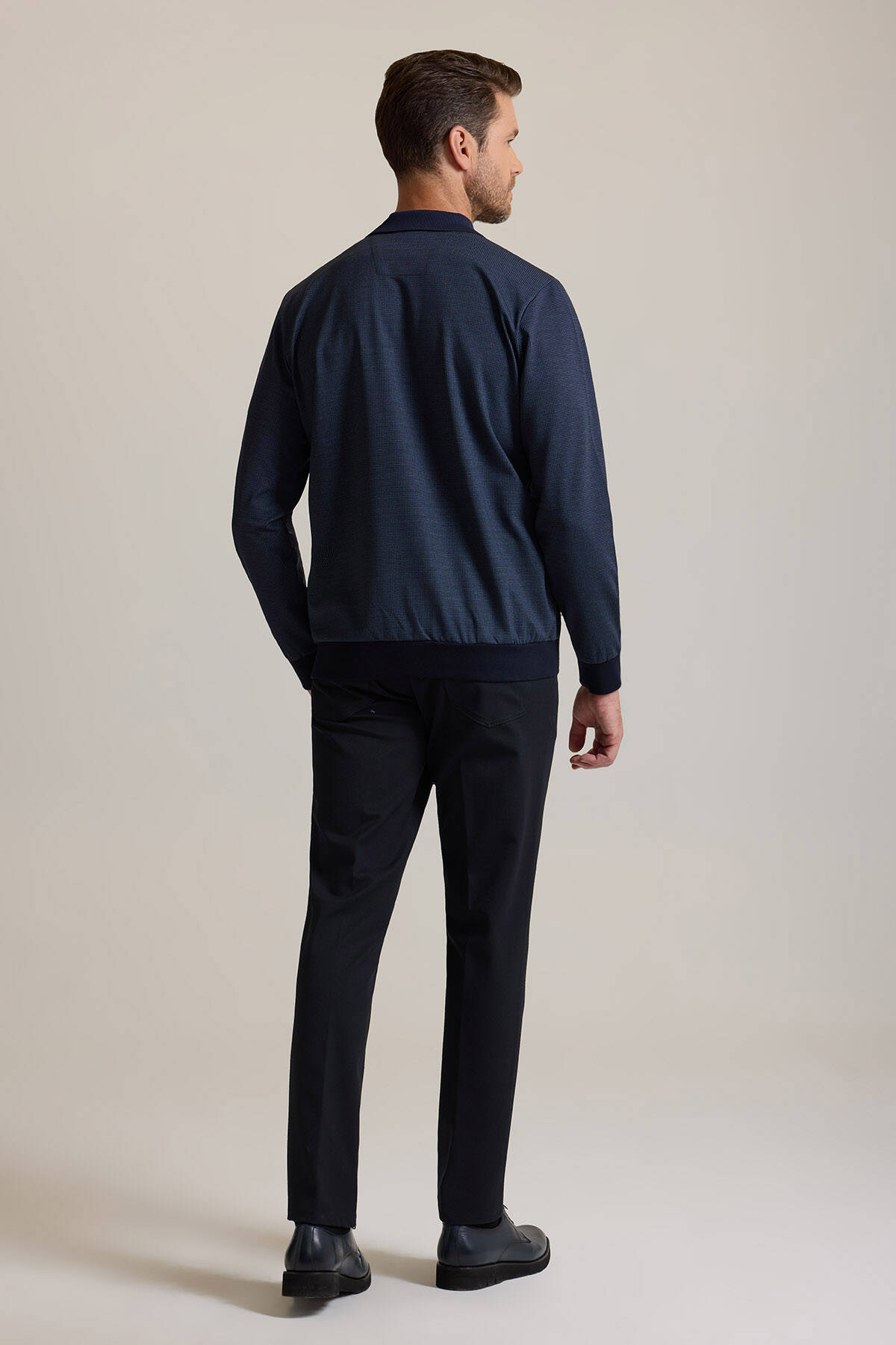 Erkek Lacivert Polo Yaka Pamuklu Sweatshirt