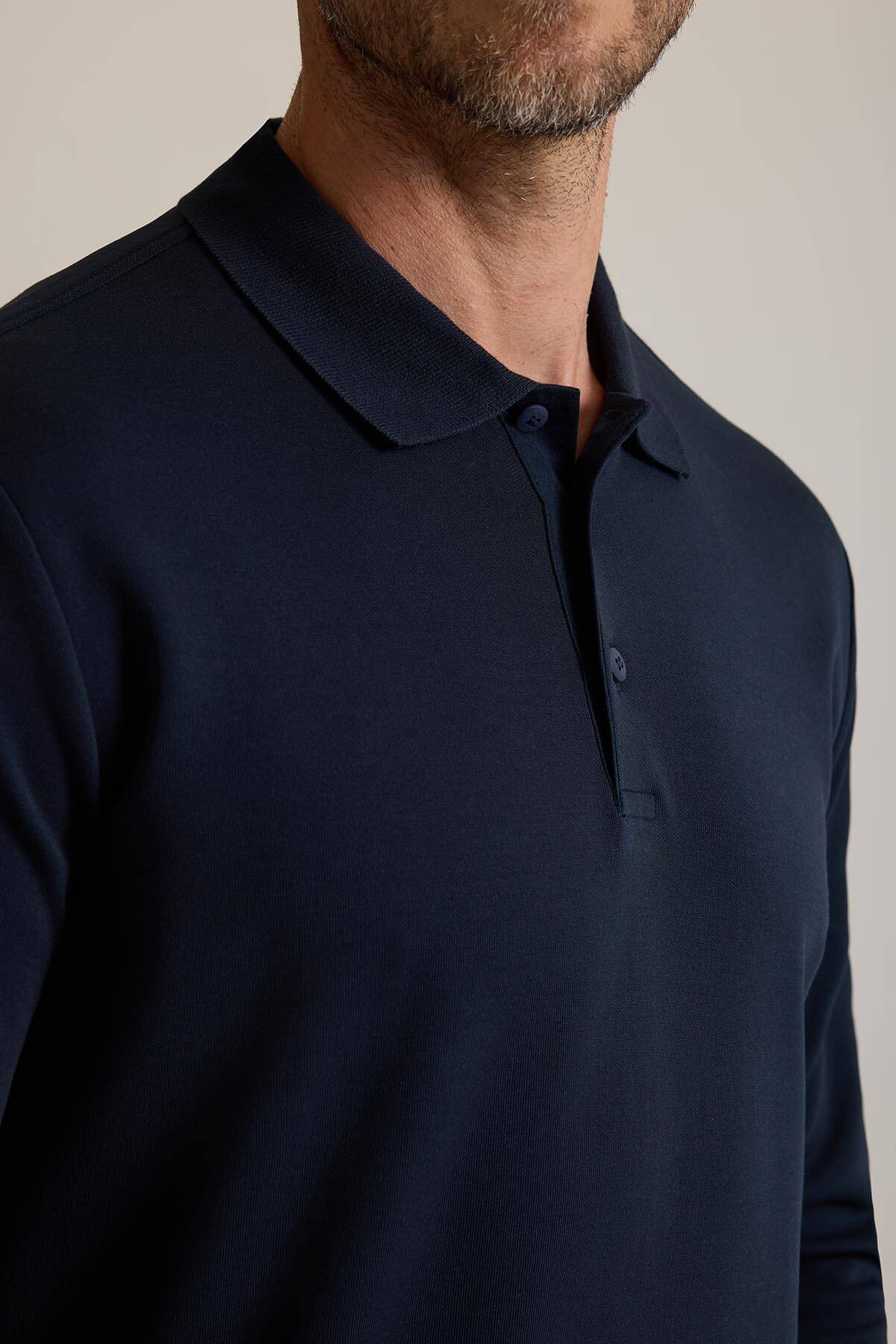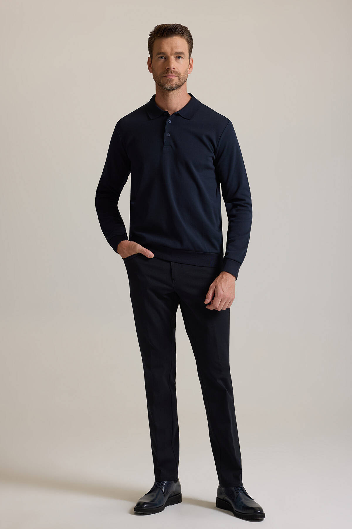 Erkek Lacivert Polo Yaka Pamuklu Sweatshirt