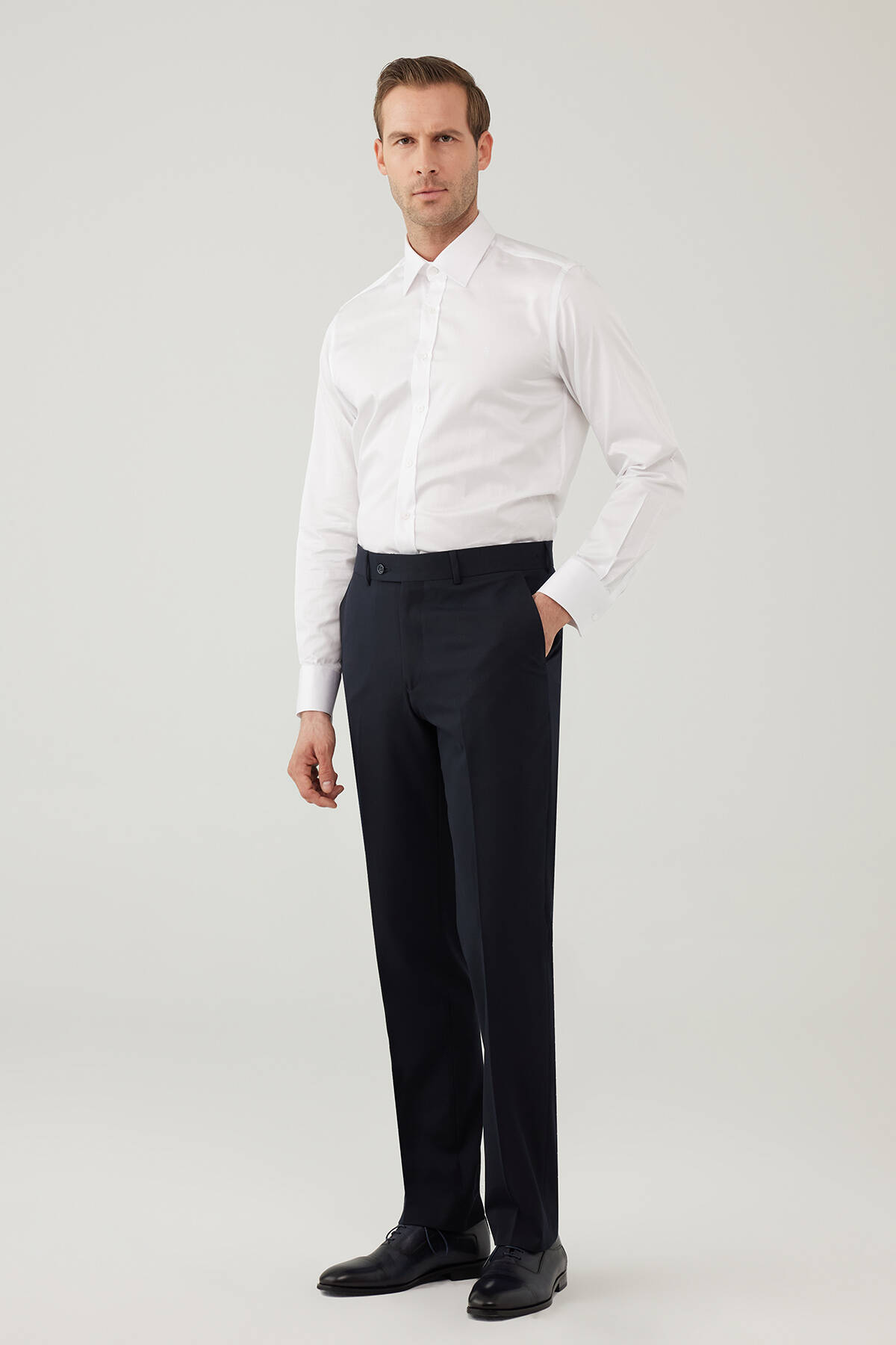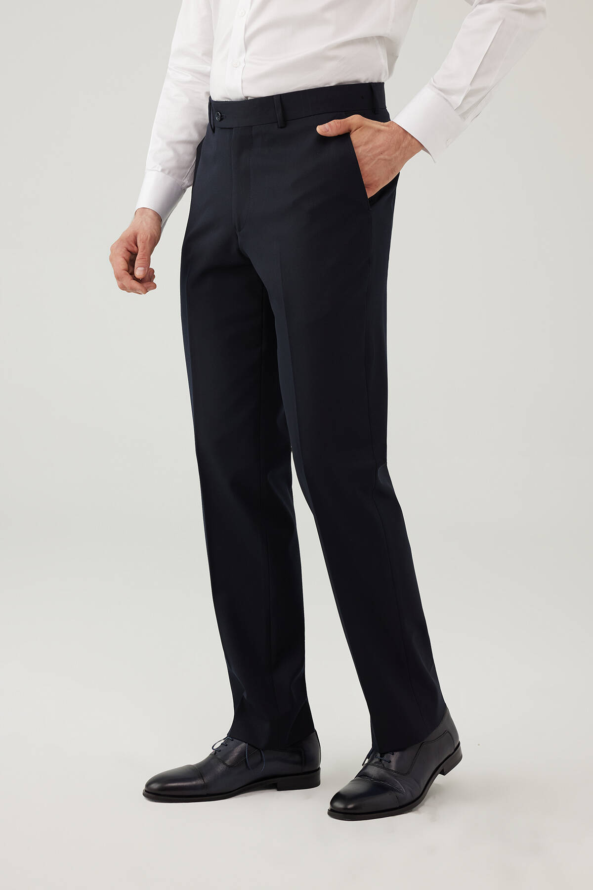 Erkek Lacivert Regular Fit %100 Yün Kumaş Pantolon
