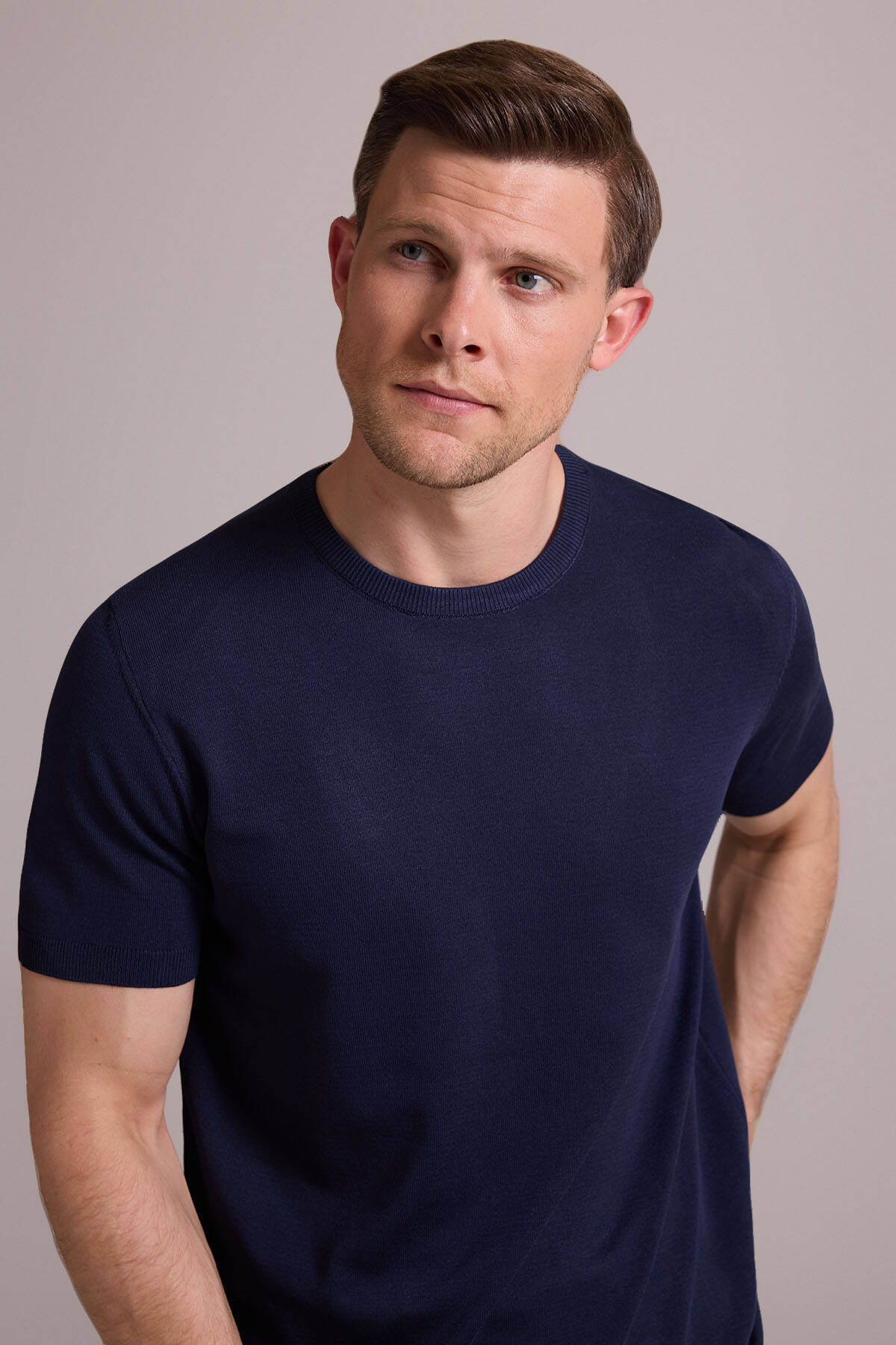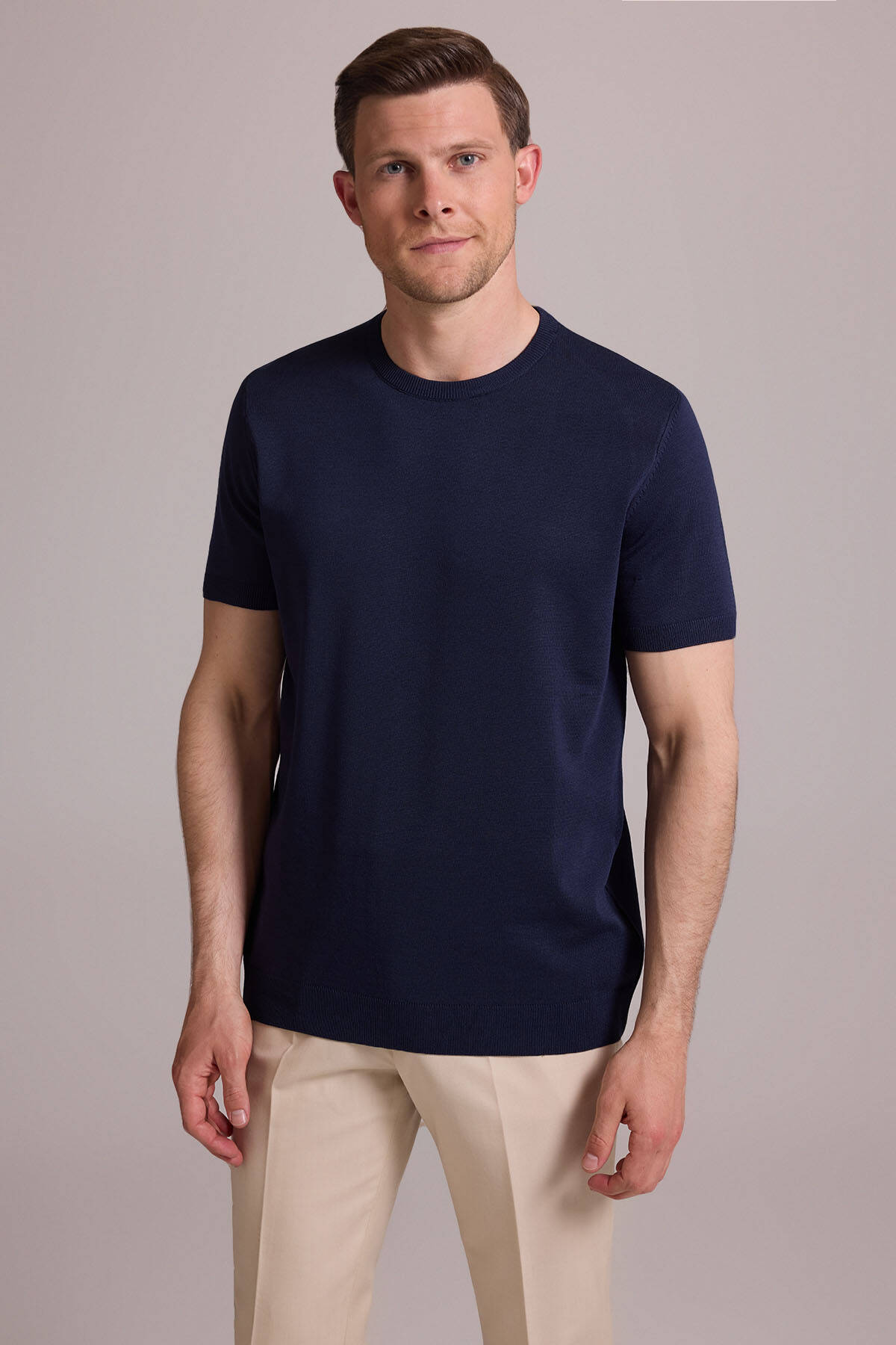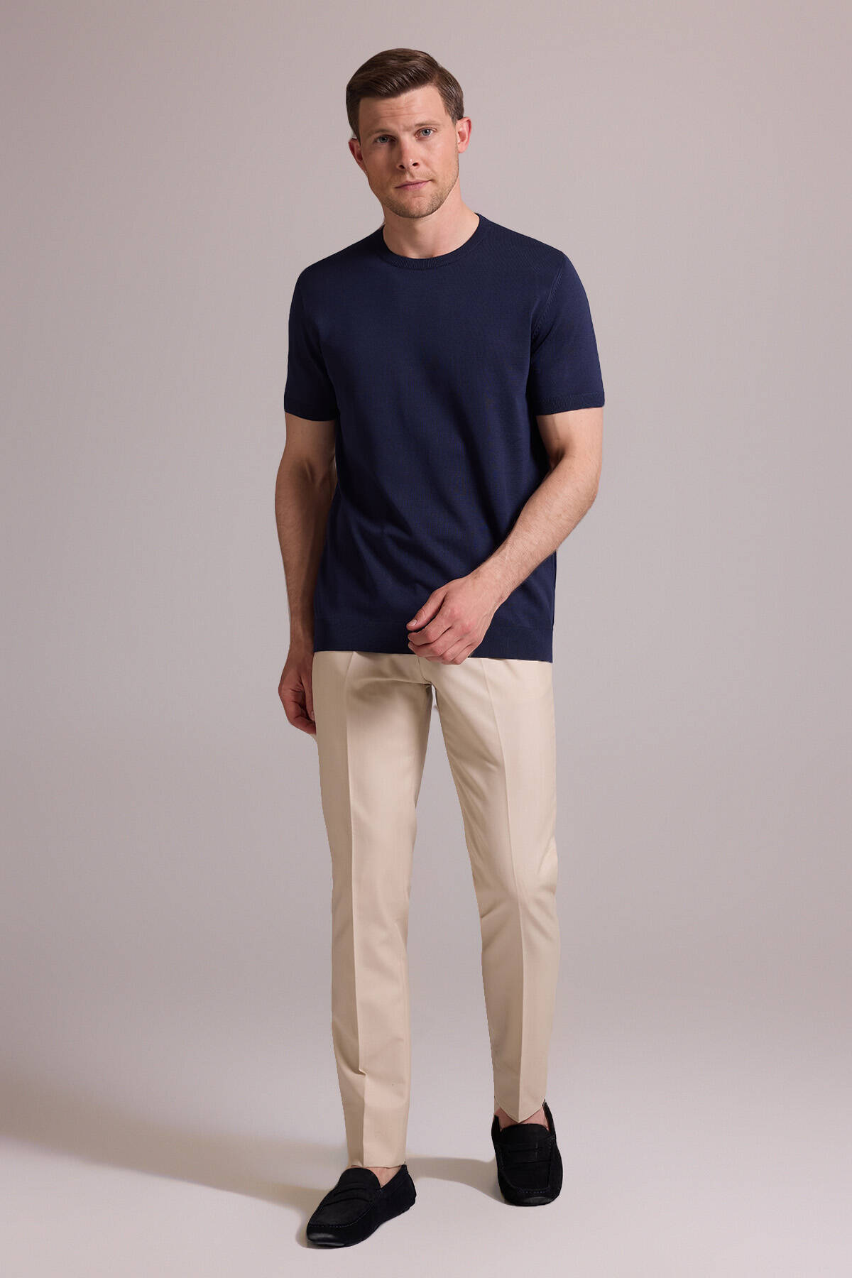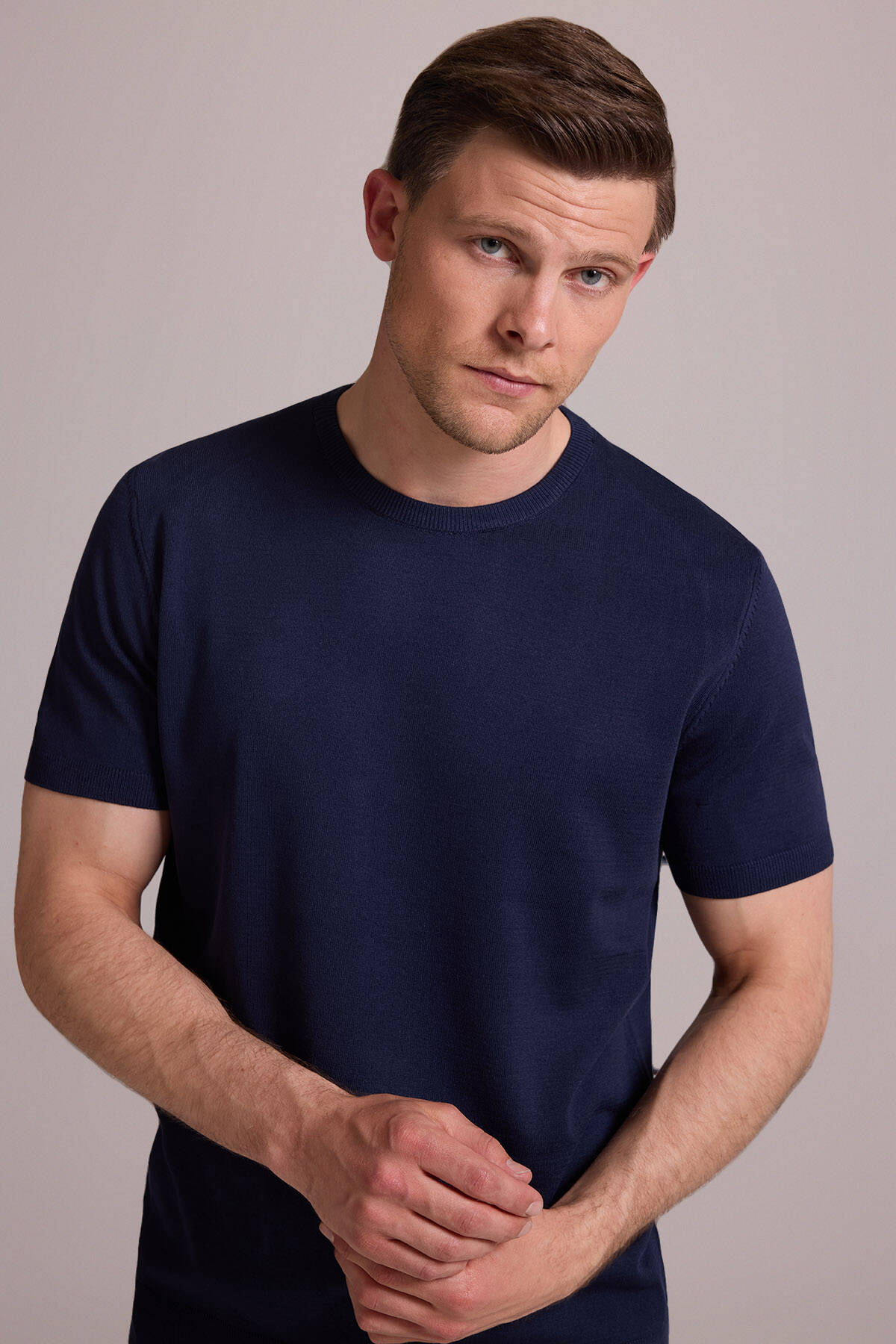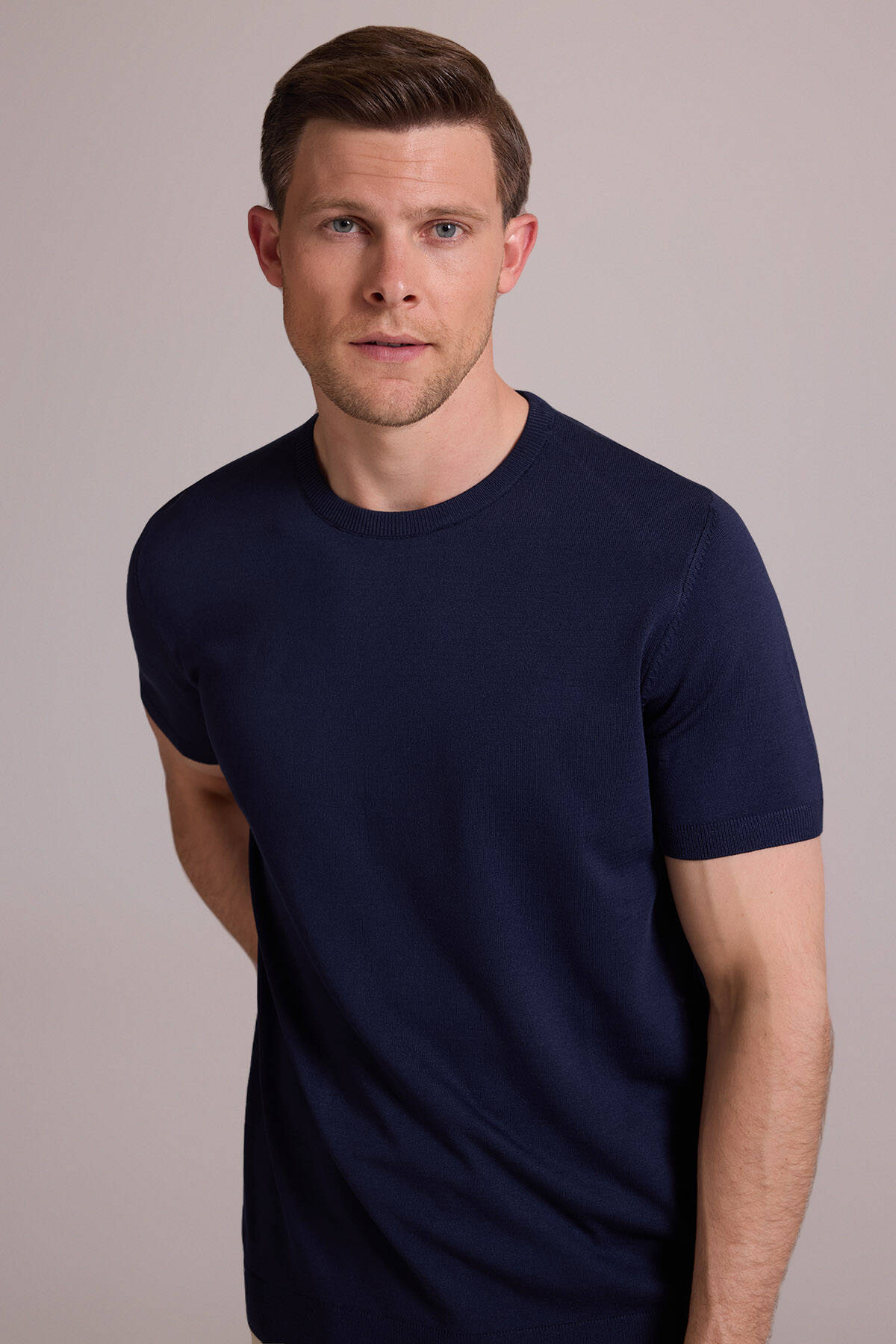 Erkek Lacivert Regular Fit Bisiklet Yaka Triko Tişört