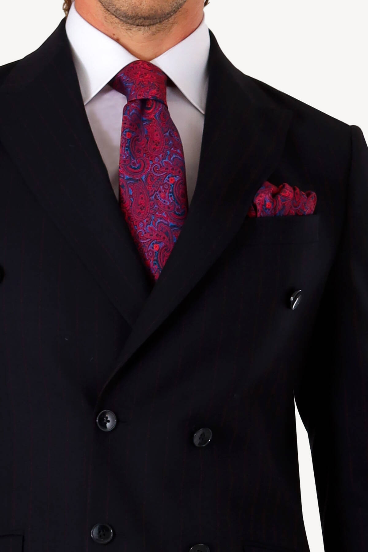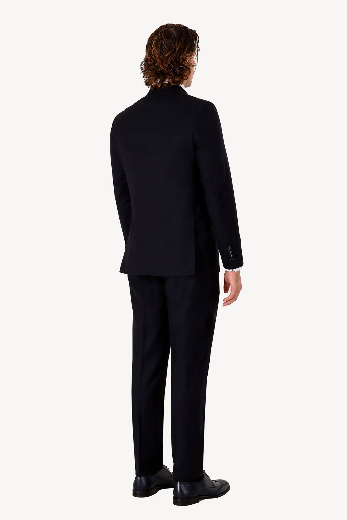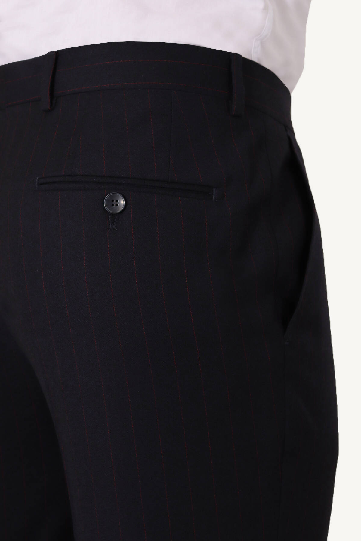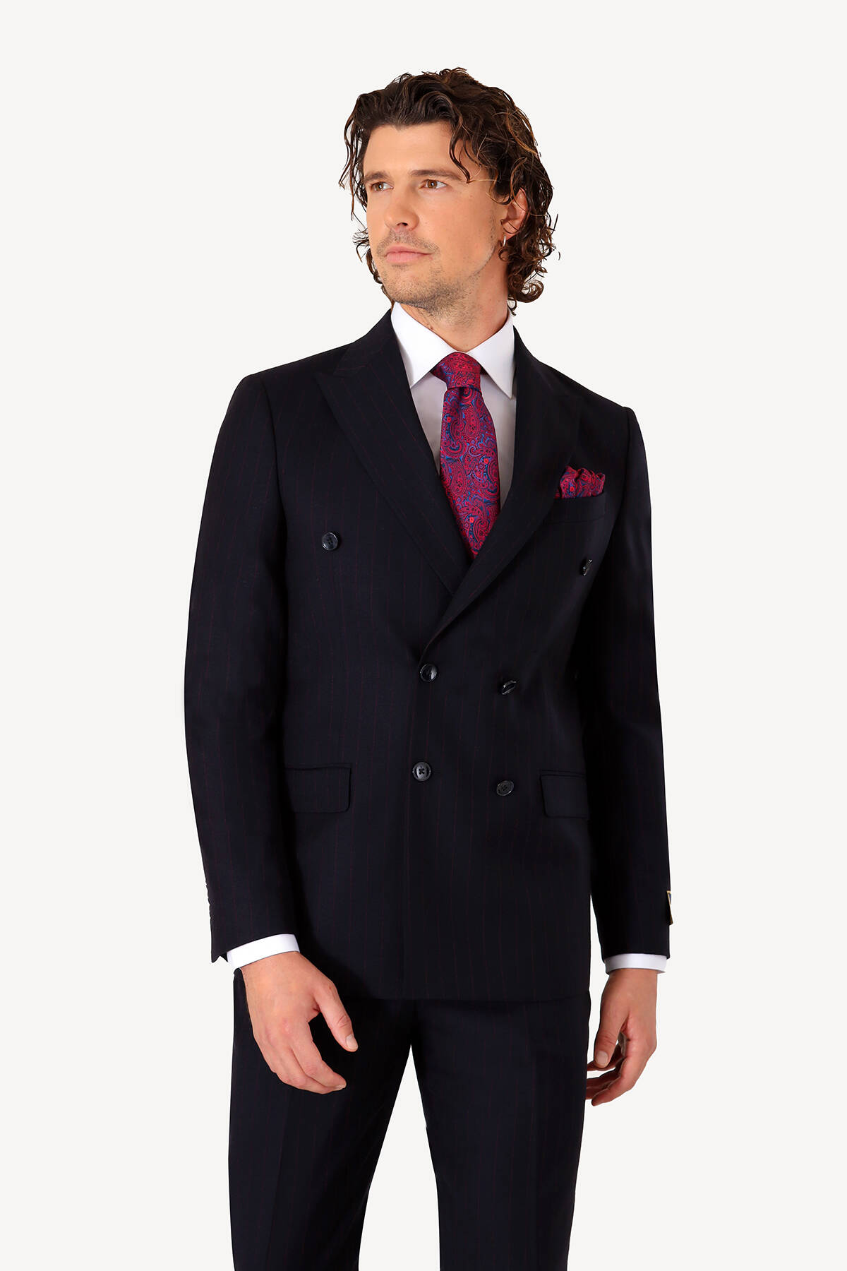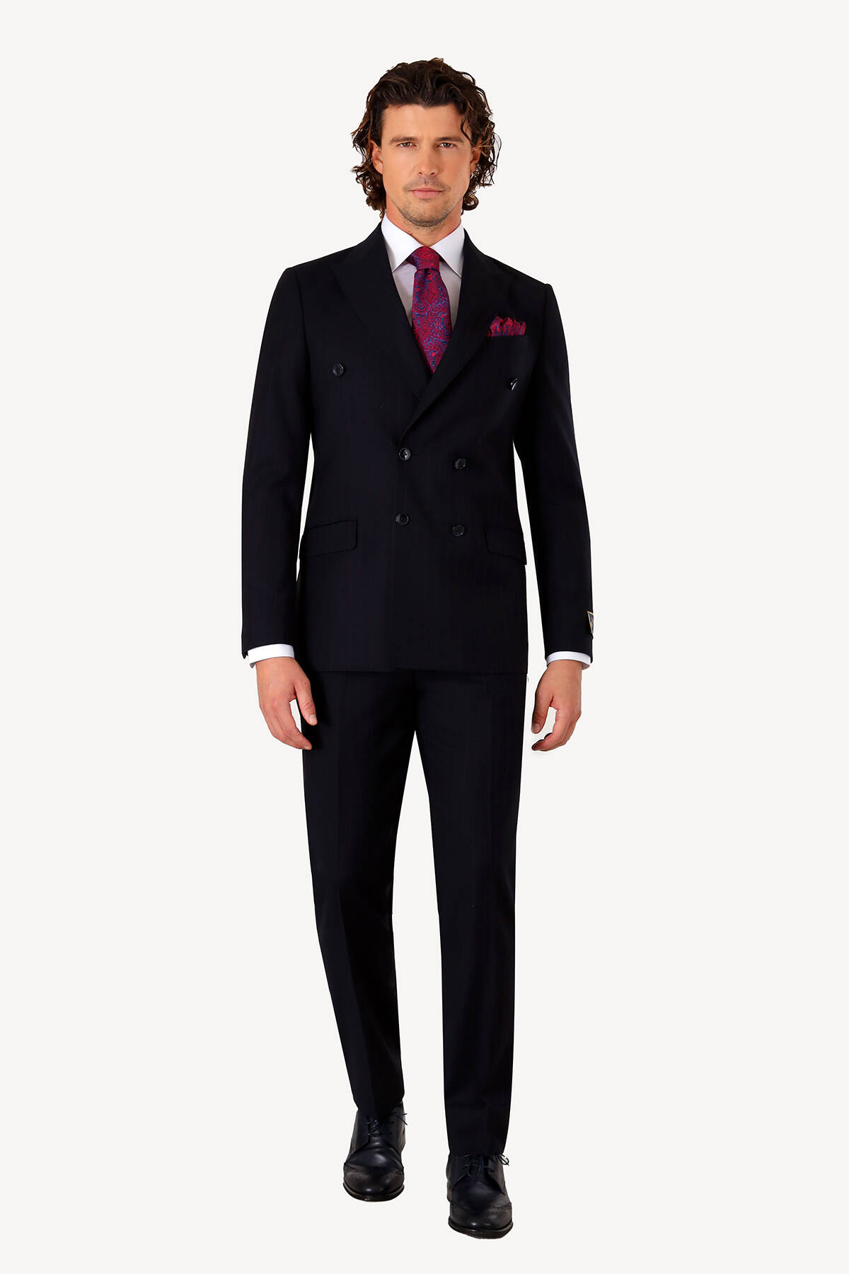 Erkek Lacivert Regular Fit Çizgili Kruvaze Takım Elbise