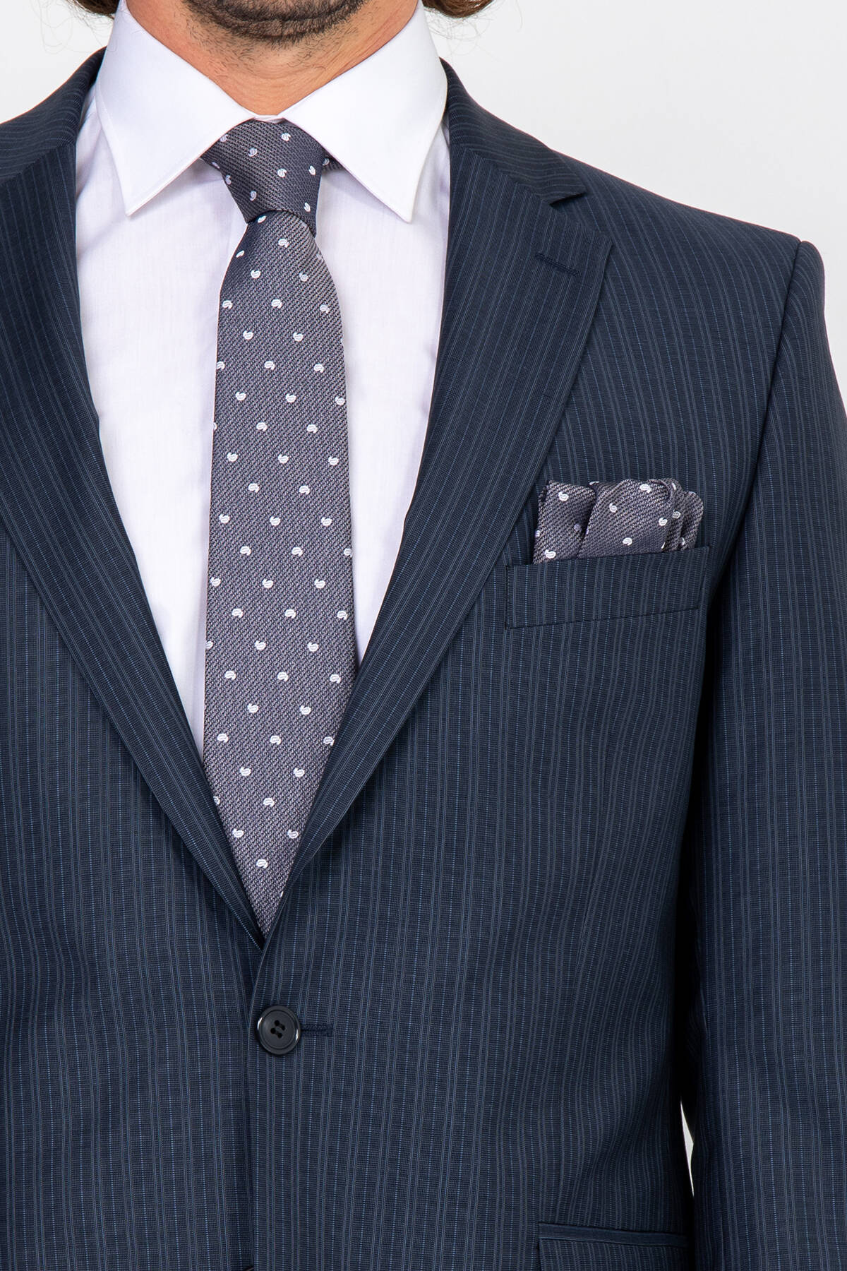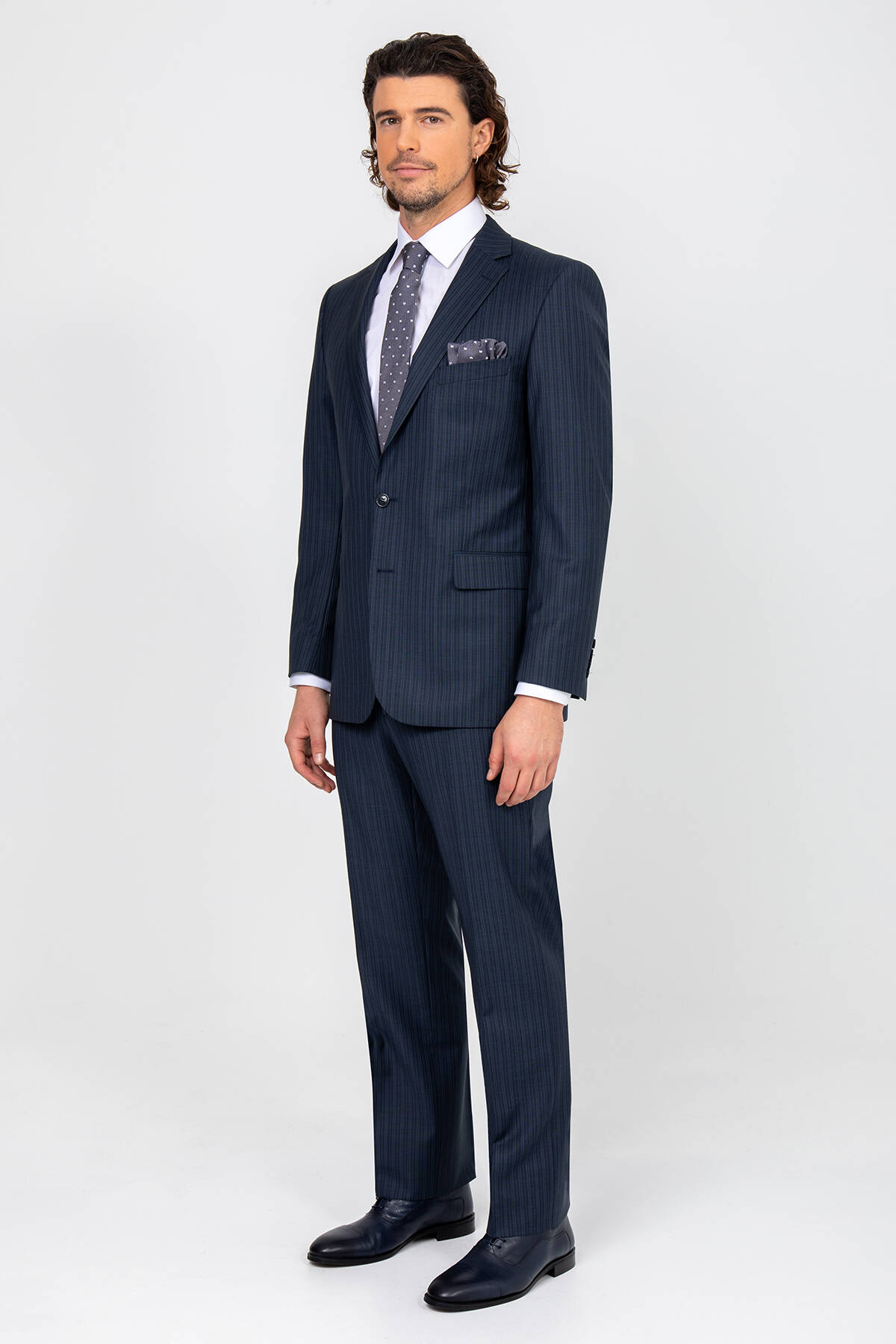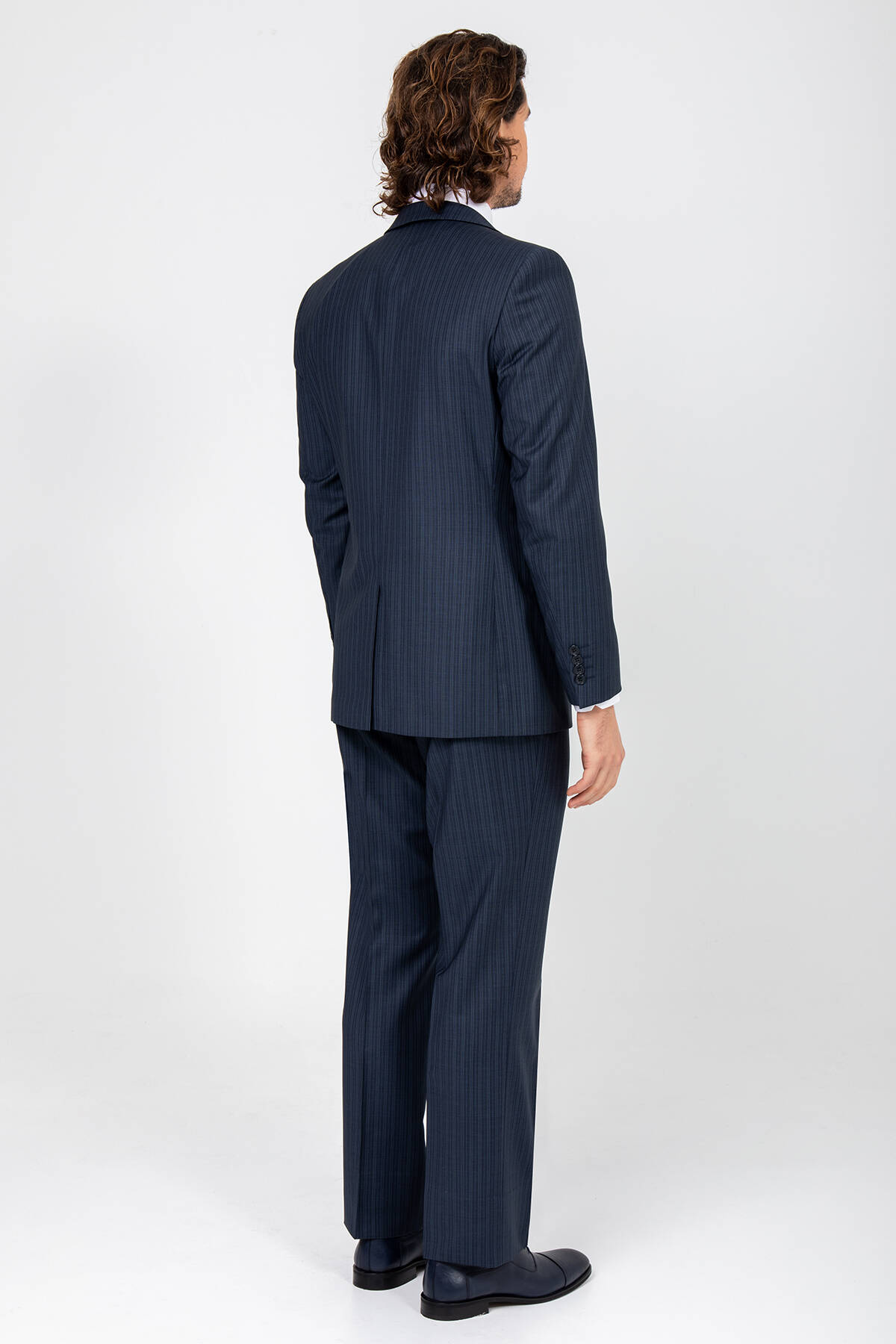 Erkek Lacivert Regular Fit Çizgili Takım Elbise