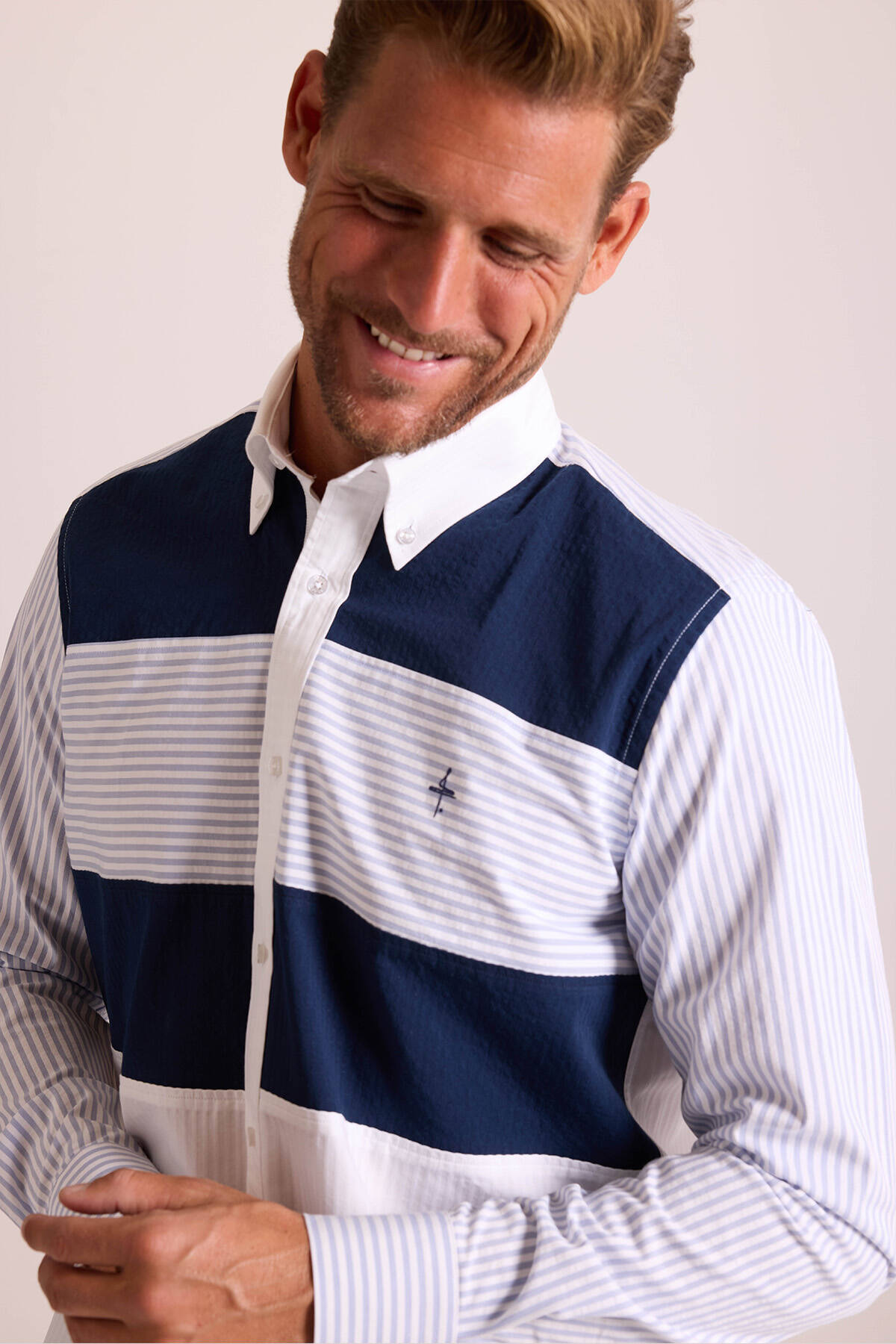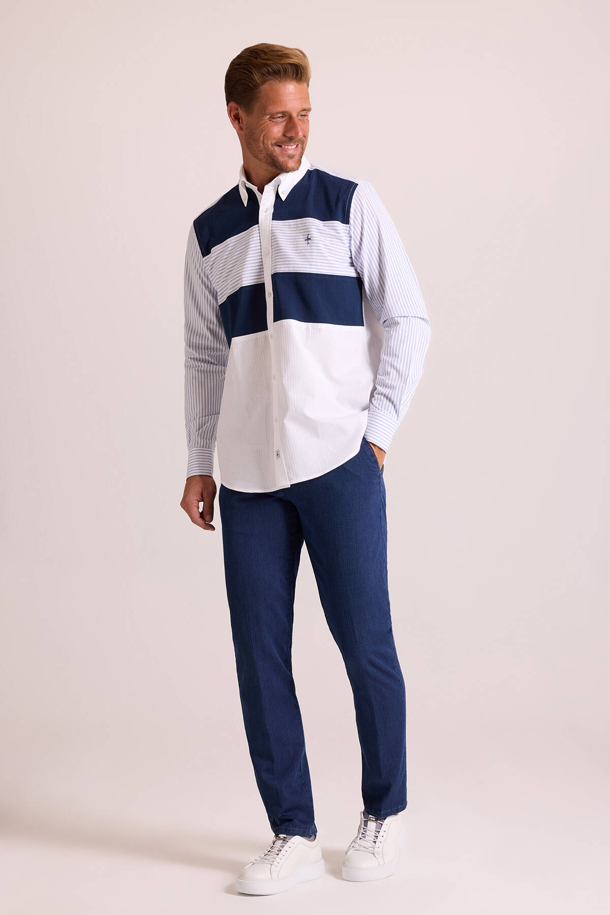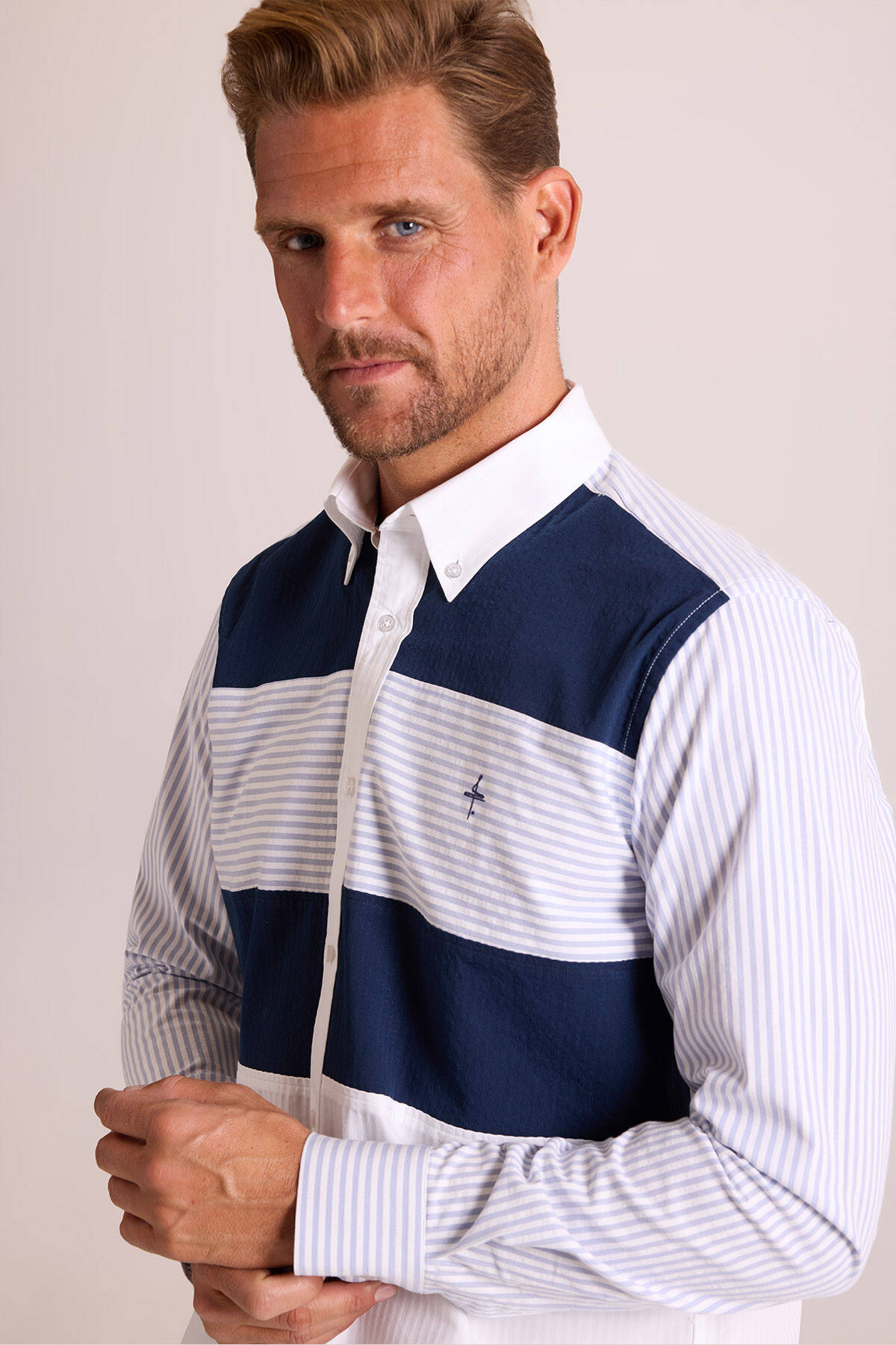 Gelince Haber VerYaz koleksiyonunuzu bir üst seviyeye taşımanın zarif bir yolu olan YSF Giyim Erkek Lacivert Regular Fit Desenli Pamuk Gömlek her ortamda şıklığıyla göz doldurur. Saf pamuk liflerinden üretilen bu şık erkek gömlek, esintili Akdeniz estetiğinden ilham alan tarzıyla öne çıkar. Nefes alabilir ve belirgin ince çizgilerle dikkat çeken bu parça hem modern hem de klasik erkek giyim çizgilerini harmanlar. Gömleğin regular fit kalıbı Akdeniz ferahlığını destekleyerek tek başına ya da tişört gibi yazlık parçalarla kombin yapmaya fırsat sunar. Beyaz, lacivert ve mavinin illüzyon etkisi yaratan çizgileri, marin tarzını deneyimleyebilmeniz için tek başına yeterlidir.