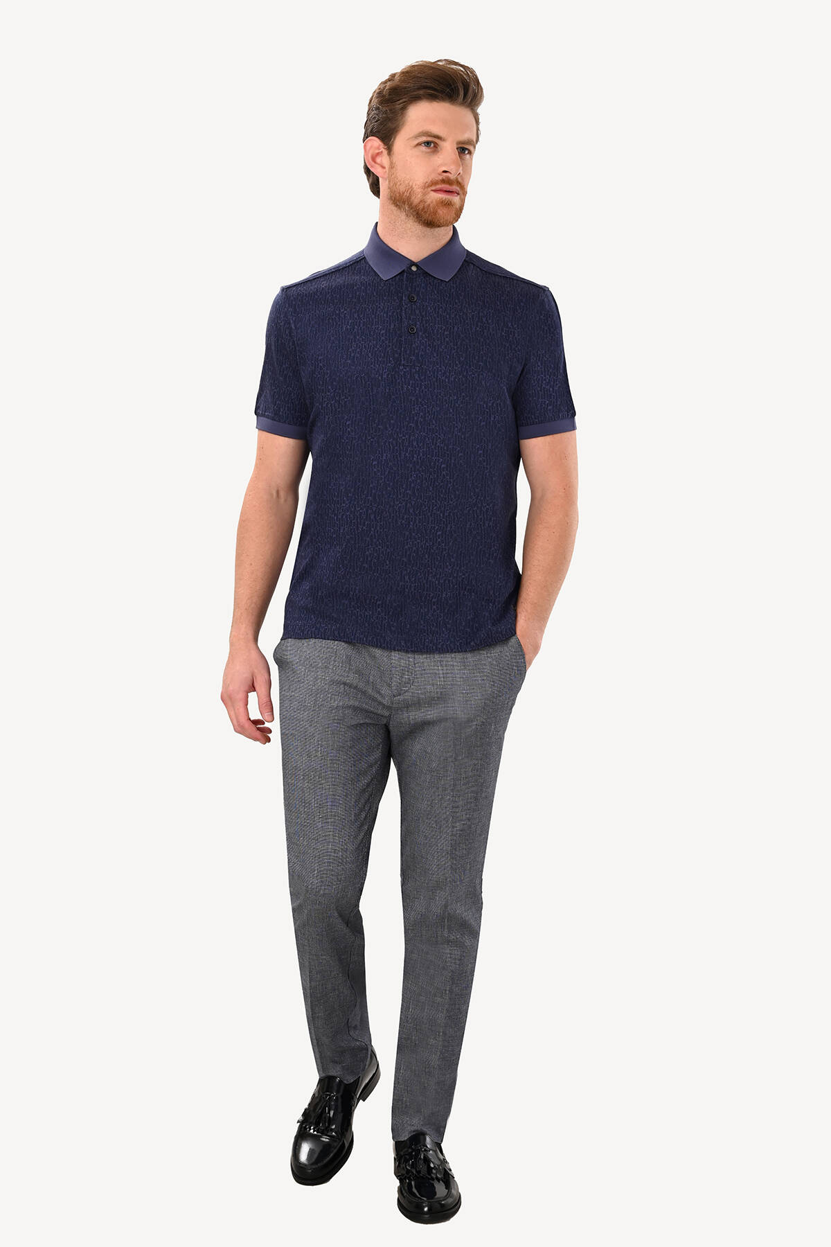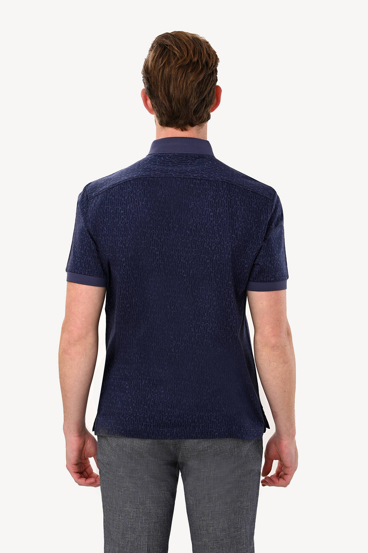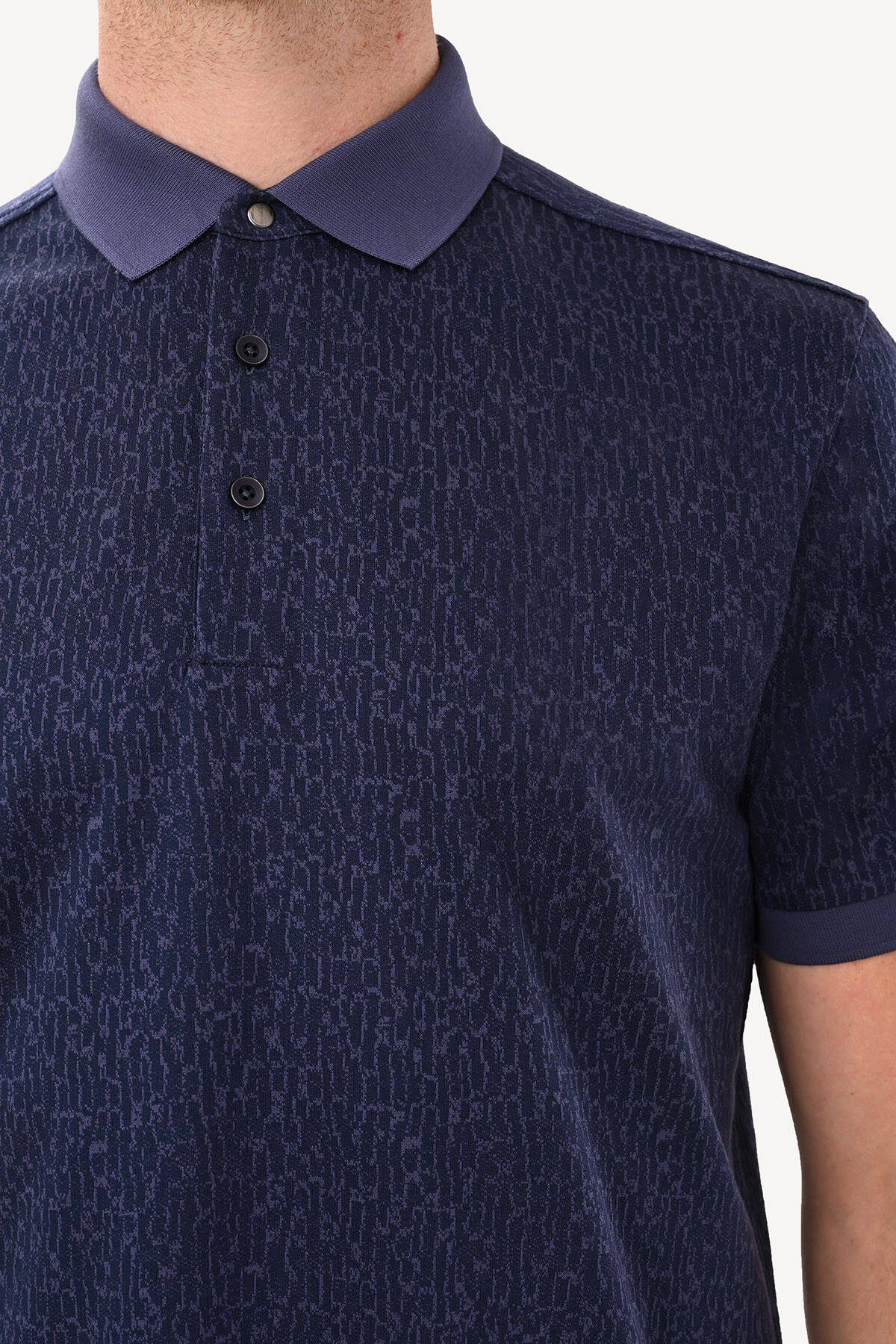 Erkek Lacivert Regular Fit Desenli Polo Yaka Tshirt