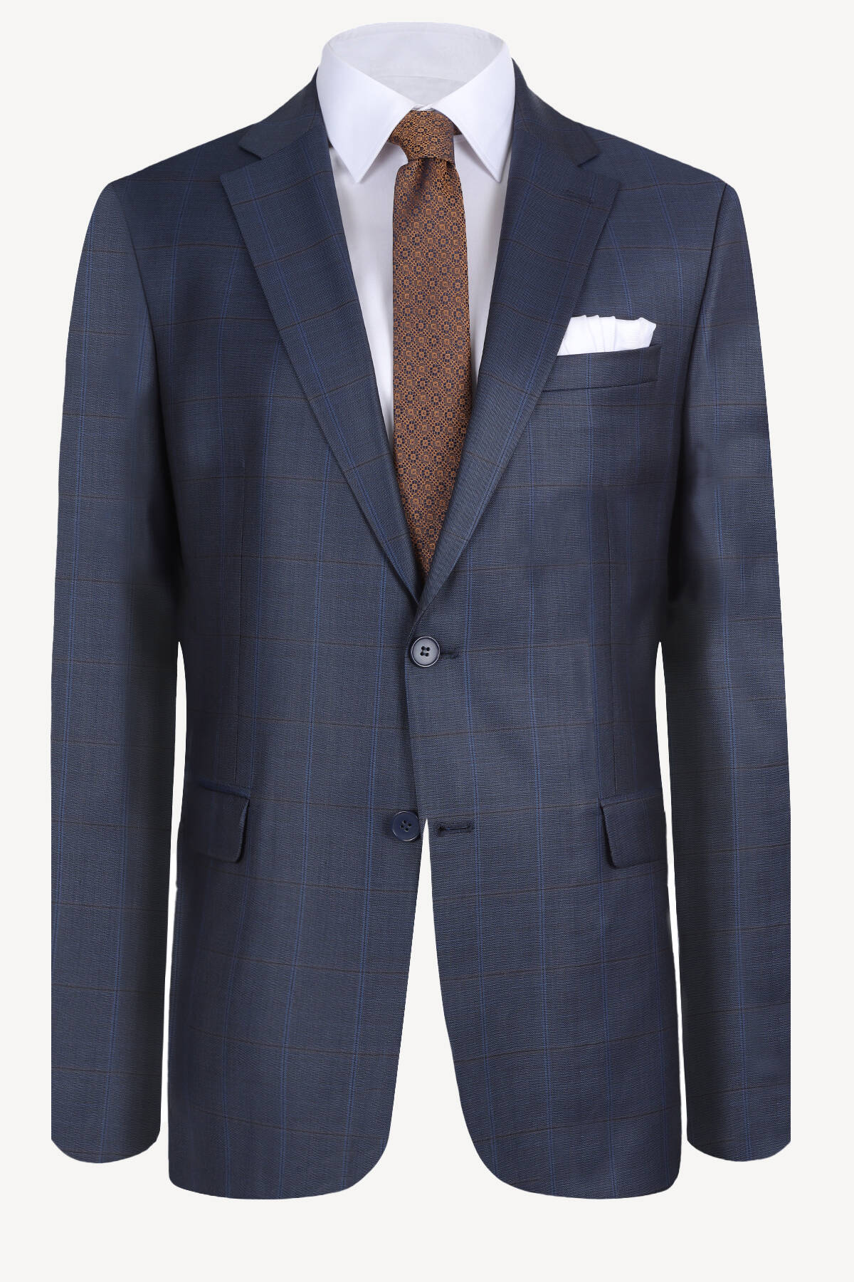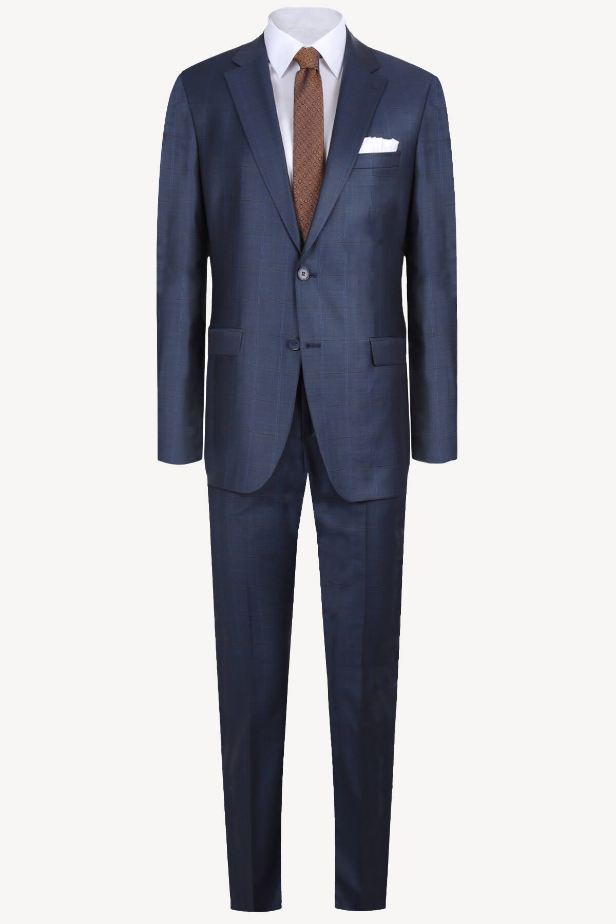 Erkek Lacivert Regular Fit Ekose Takım Elbise