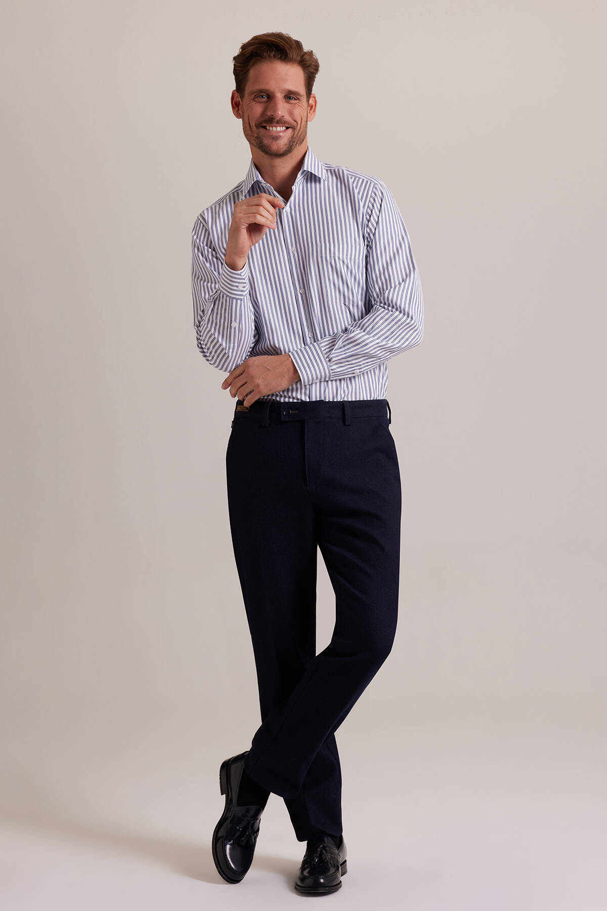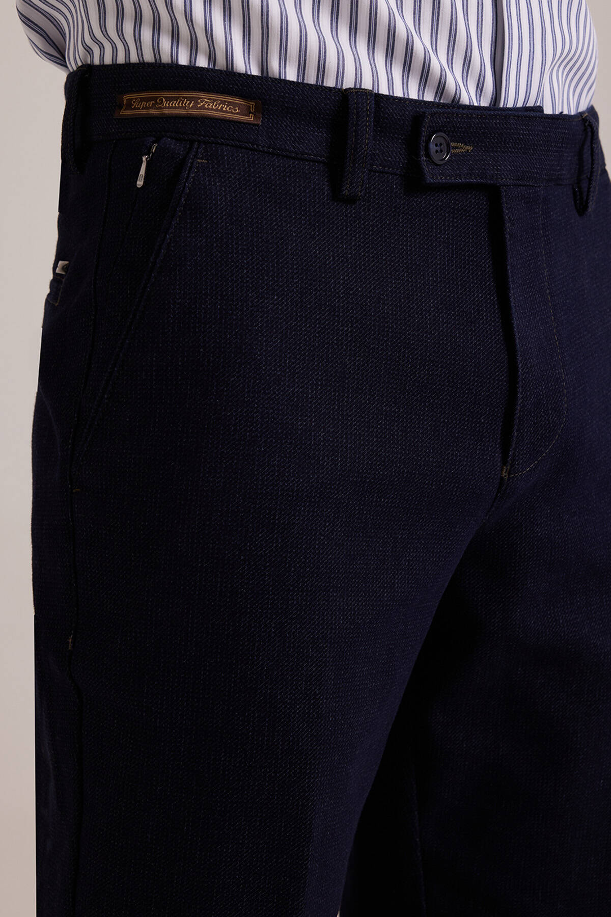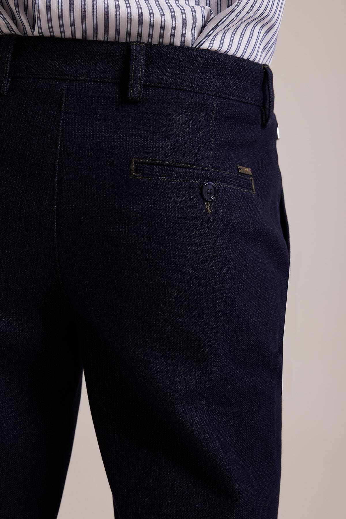 Sofistike, zarif ve klas erkek giyimin adresi Erkek Lacivert Regular Fit Kanvas Yan Cep Pantolon, kalitesi ve şıklığıyla yıllar boyu favoriniz olmaya adaydır. Pamuk karışımlı premium tuşesi, günlük stile lüks bir tavır eklemek için idealdir. Düz kesime sahip kanvas pantolon, ideal bel yüksekliği ile silüetinizi dengeli gösterir. Regular fit kalıbı ise ürünün şehrin yoğun temposunda aradığınız konforu sunmasını sağlar. Hem akıllı hem casual kombinlere YSF Giyim’in lüks estetiğini taşıyan tasarım, kemerindeki zarif etiketiyle bunu kanıtlar. İşlevsel yan ve arka cepler özel eşyaları pratik ve güvenli şekilde taşımaya fırsat sunar. Pantolonun kontrast yaratan dikişleri ve kusursuz işçiliği, sessiz lüks gibi trend erkek giyim akımları için idealdir.Erkek kanvas pantolon, royal tonu olarak bilinen lacivert rengi sayesinde klas ve güçlü bir imaj vadeder. Hafta sonu sosyal etkinleriniz veya mesai sonrası planlarınız için ideal olan tasarım, tişörtten gömleğe kadar, tüm parçalarla eşsiz görünür. Hem çağdaş hem zarif görünümlere imza atmak için kanvas pantolonu, çizgili mavi beyaz gömlek ve siyah rugan loafer ayakkabılarla tamamlayabilirsiniz. Konforu ve modayı buluşturan kanvas erkek pantolon modelleri özel fiyatlarla YSF Giyim’de. Siz de tarzınıza premium dokunuş yapacak kanvas pantolonları YSF Giyim’e özel fırsatlarla gardırobunuza ekleyerek ayırt edici şıklığın keyfini çıkarmaya başlayabilirsiniz!