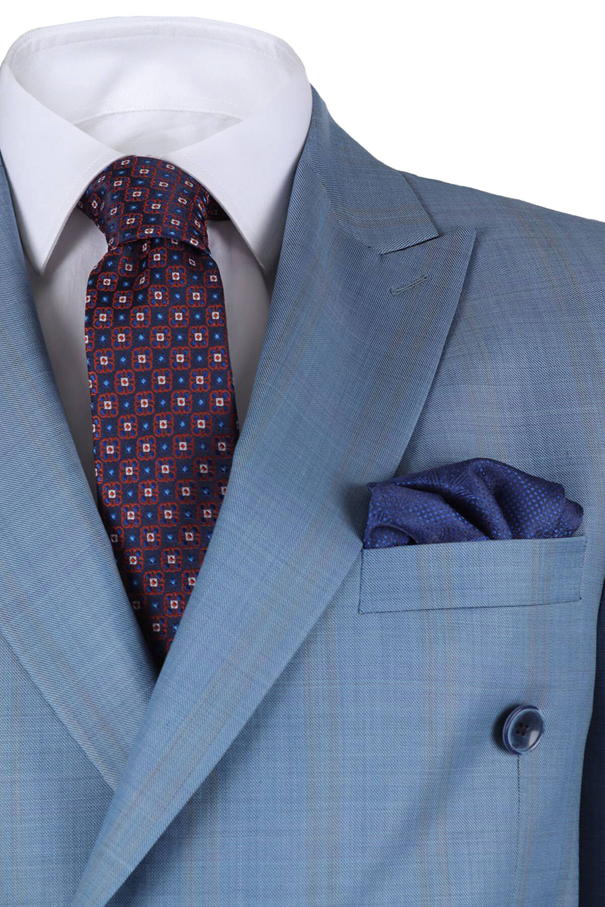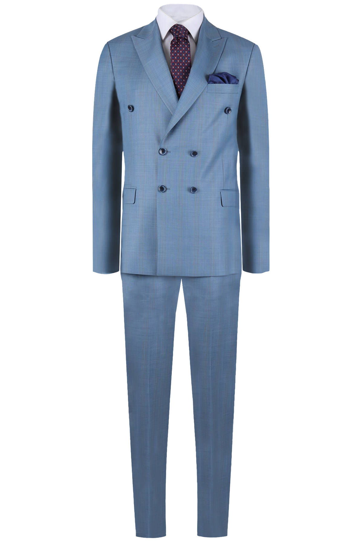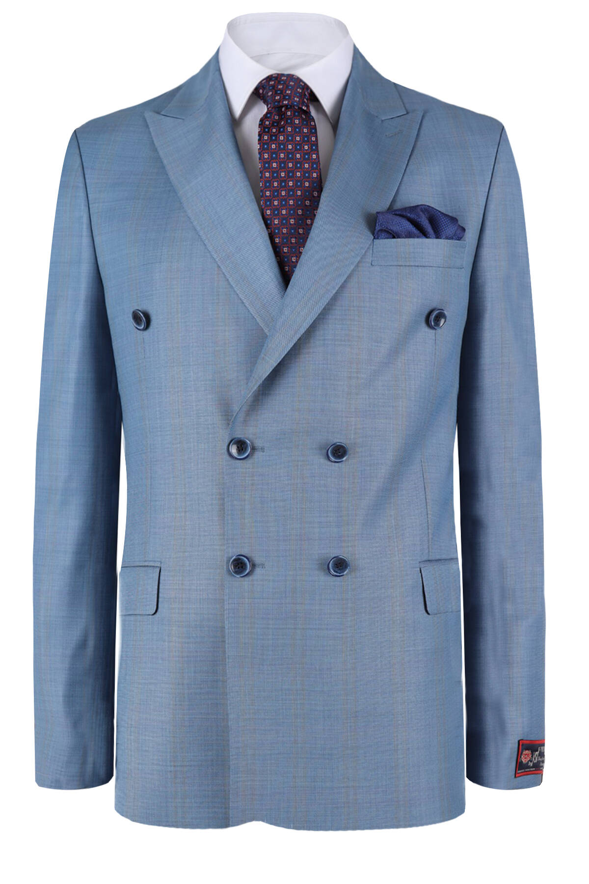 Erkek Lacivert Regular Fit Kruvaze Çizgili Takım Elbise