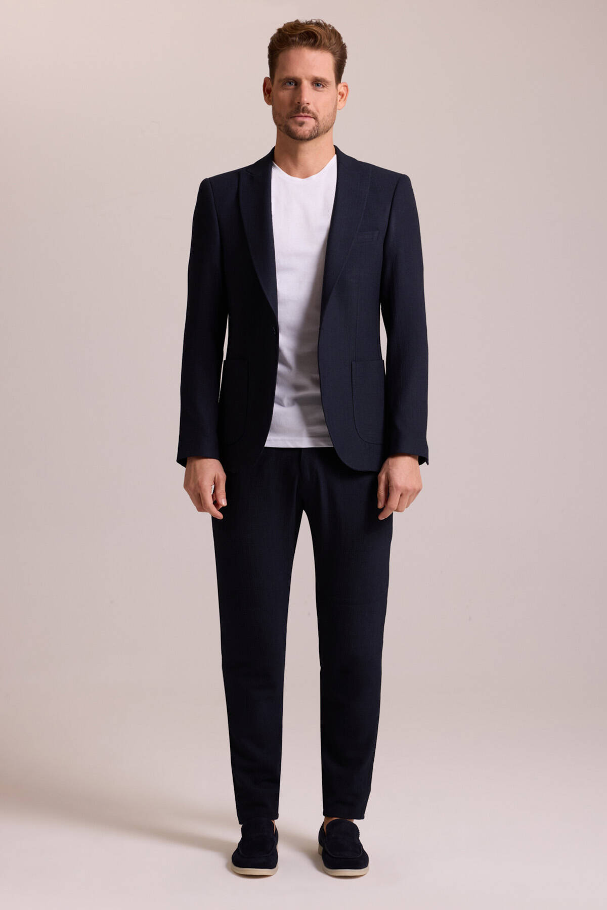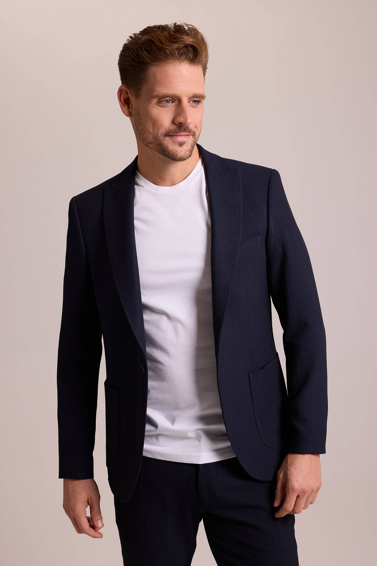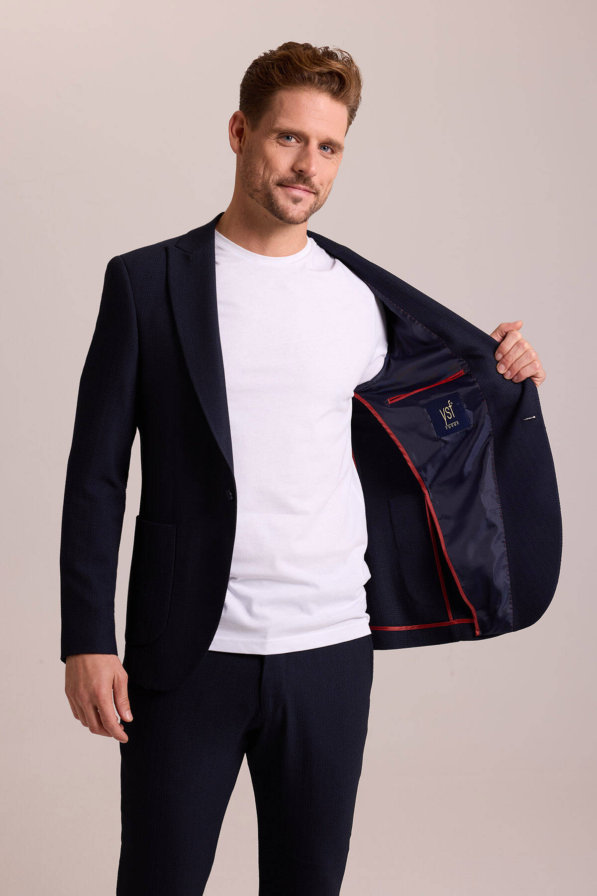 Erkek Lacivert Regular Fit Mono Yaka Beli Lastikli Desenli Takım Elbise