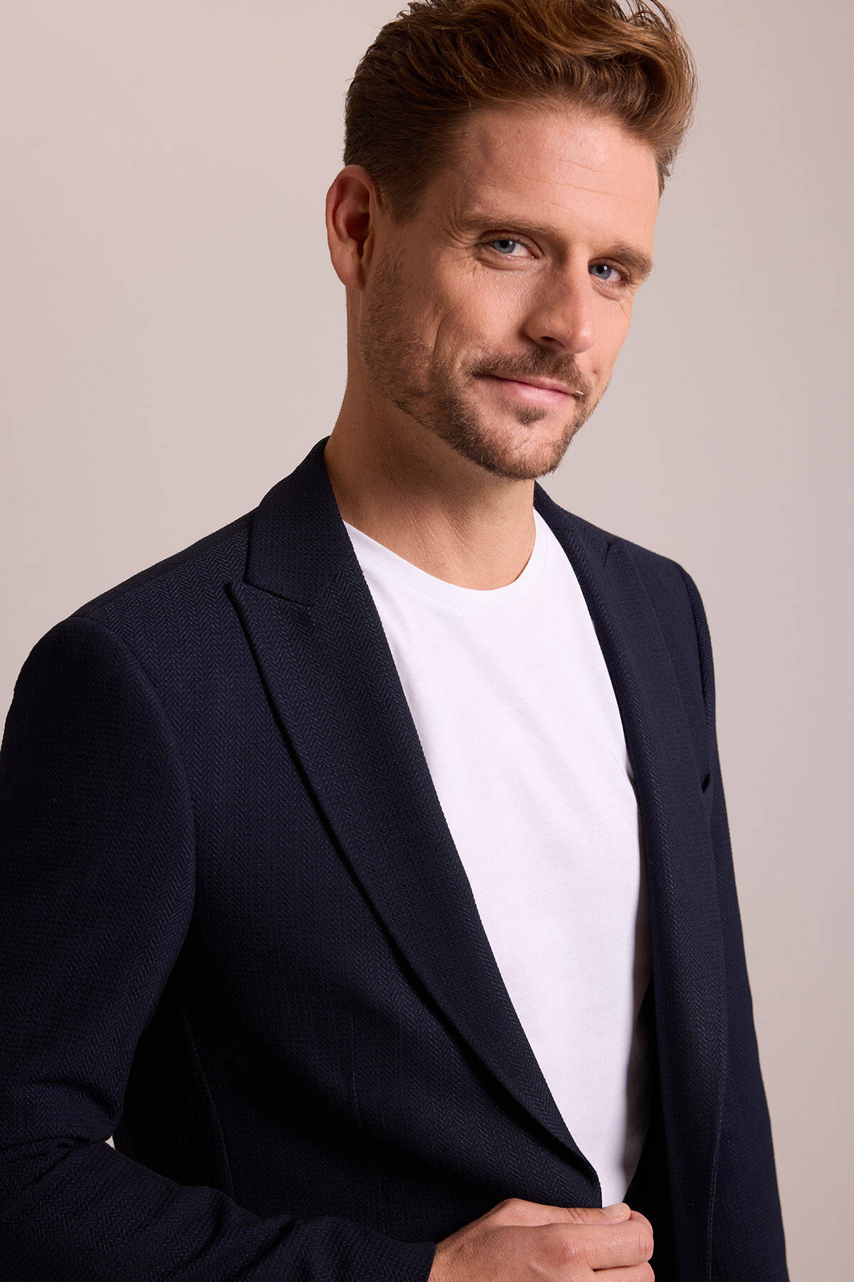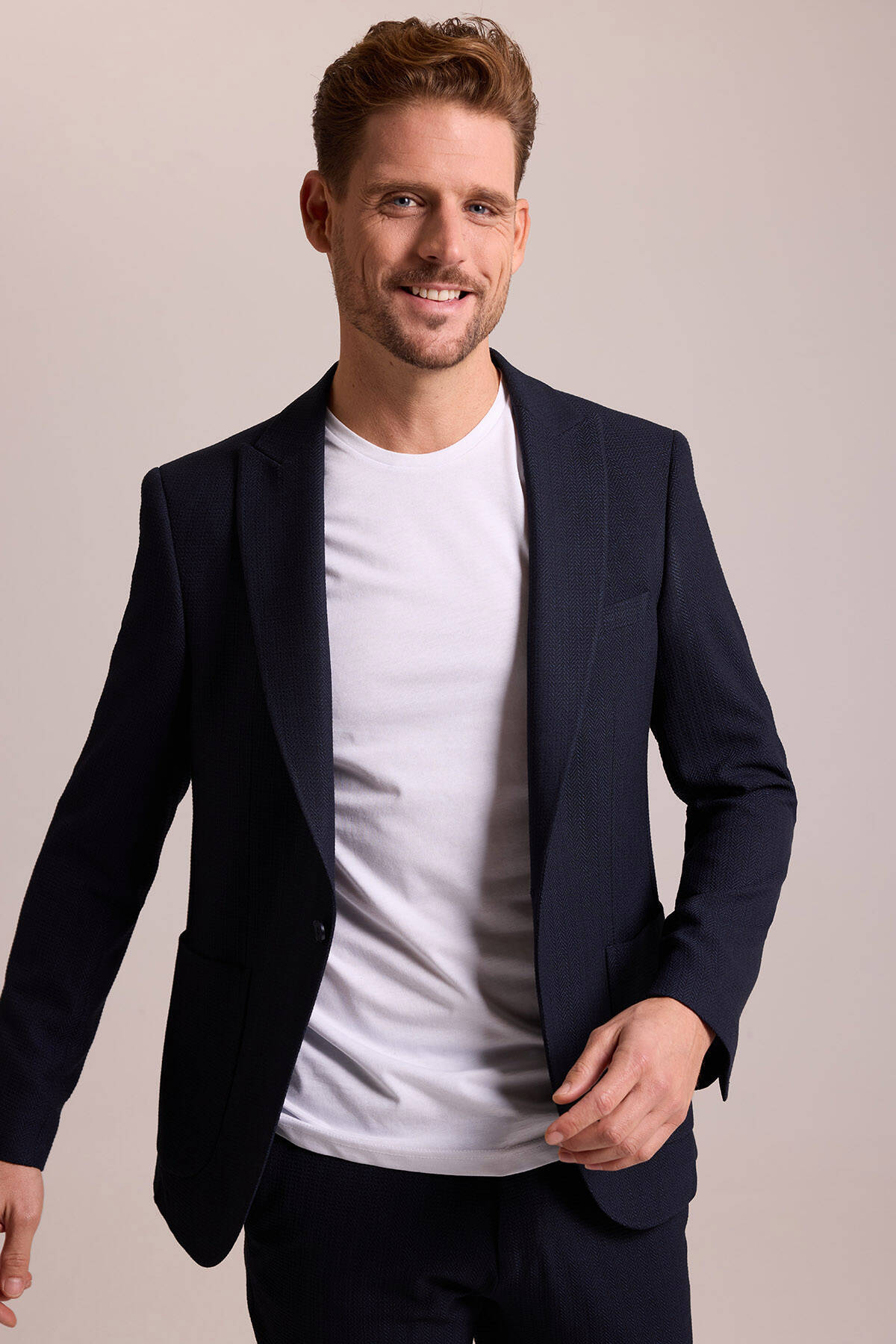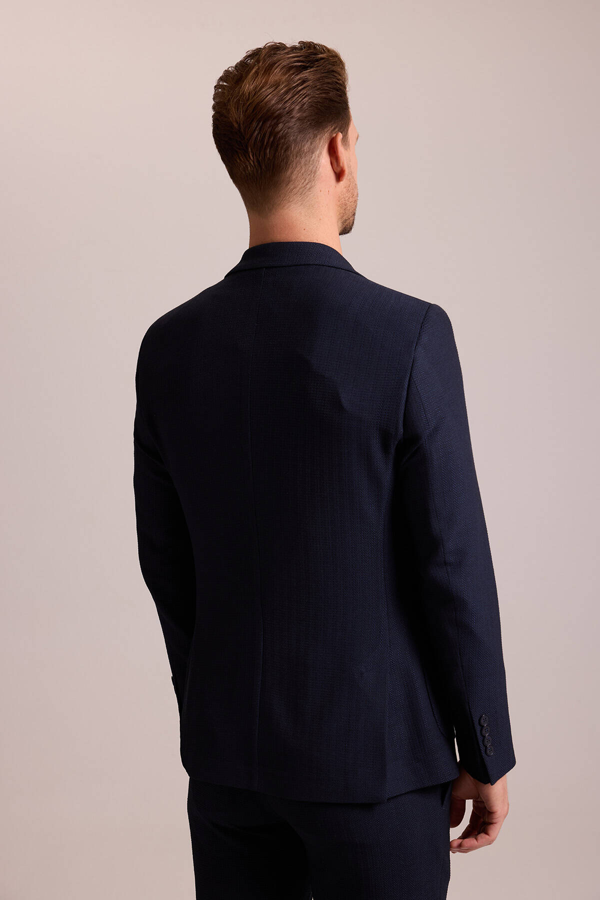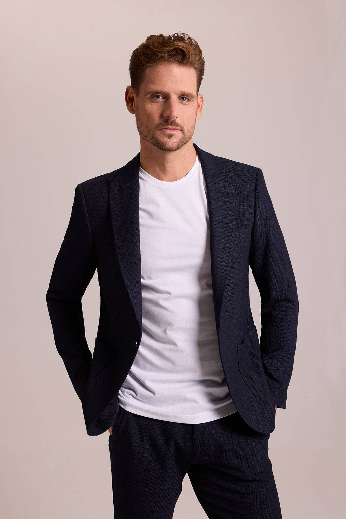 Erkek Lacivert Regular Fit Mono Yaka Beli Lastikli Desenli Takım Elbise