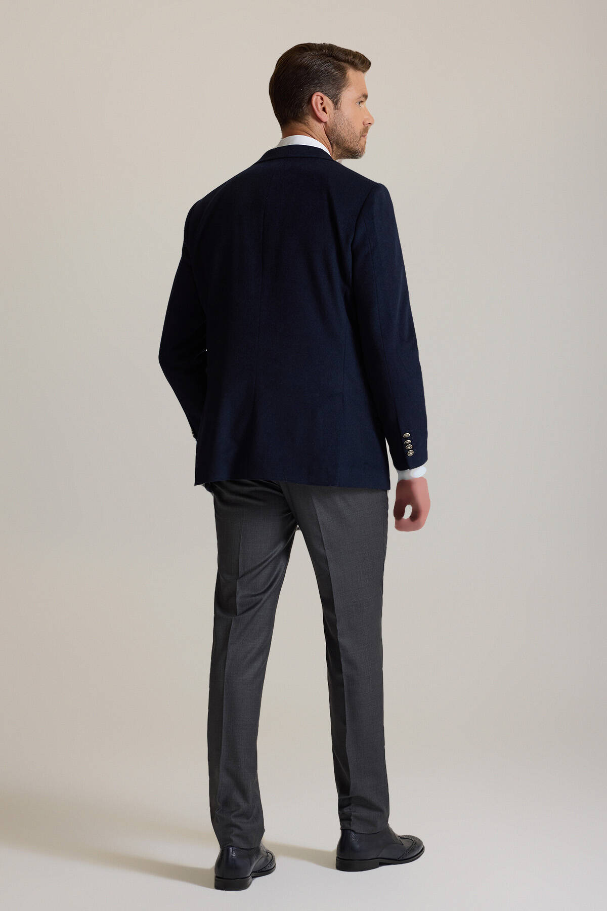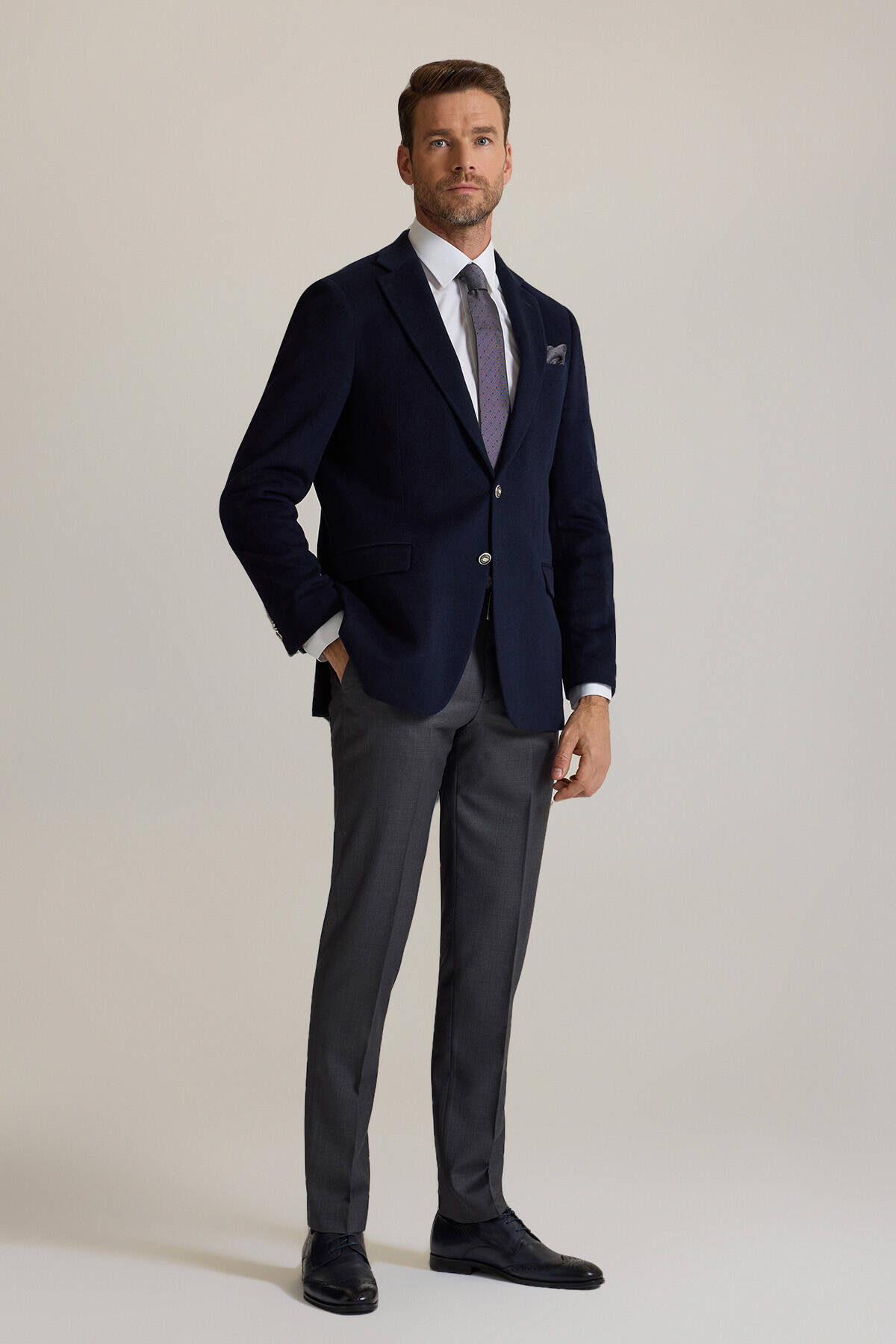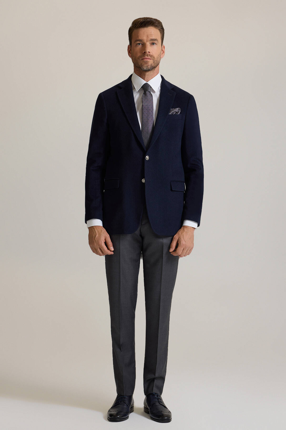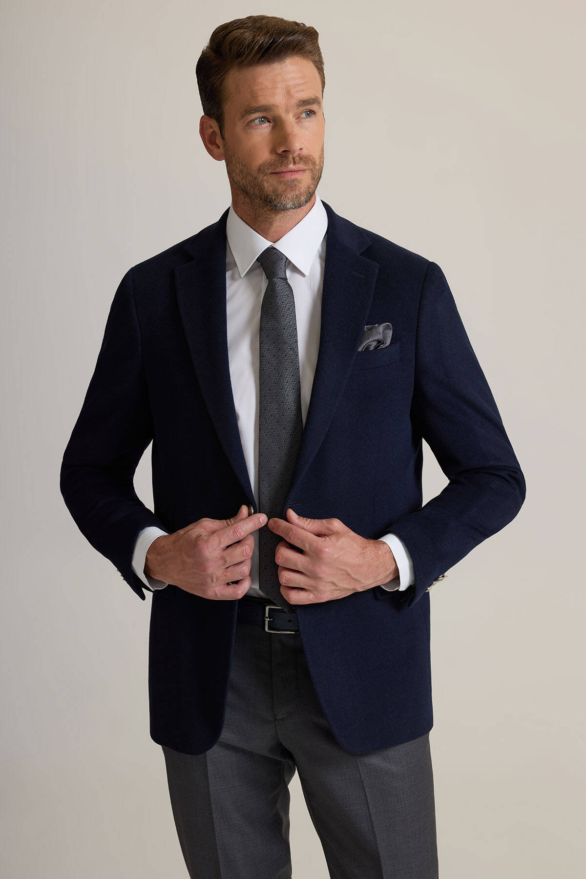Erkek Lacivert Regular Fit Mono Yaka Yün-Kaşmir Karışımlı Blazer Ceket