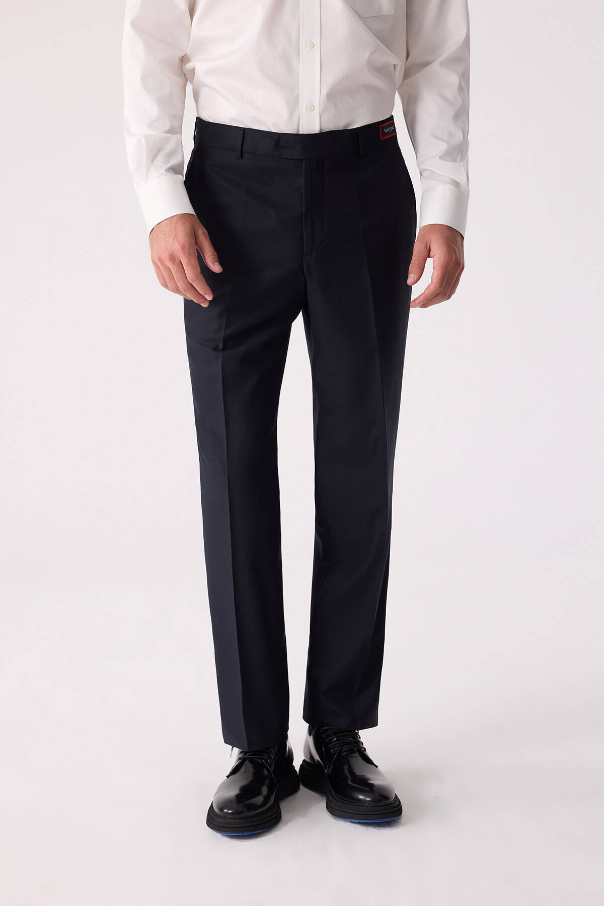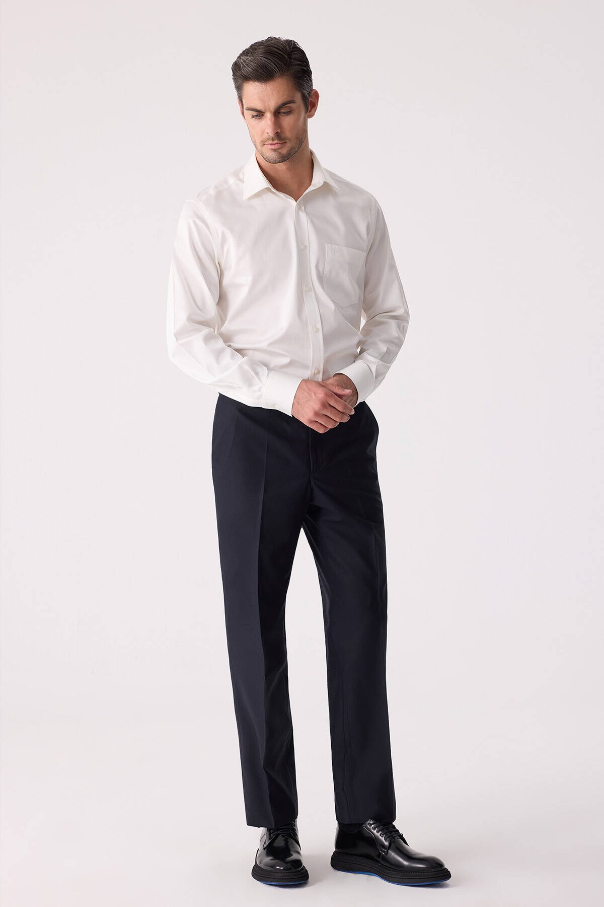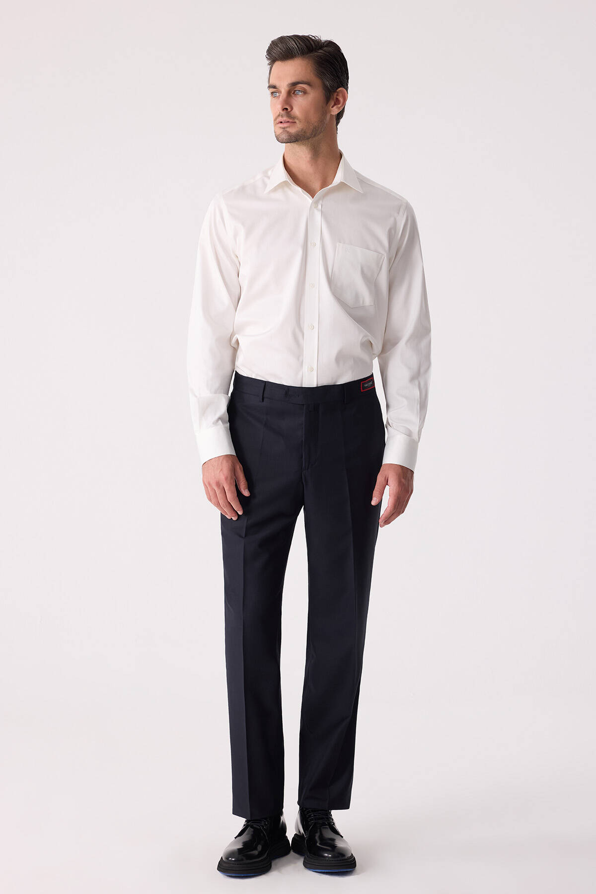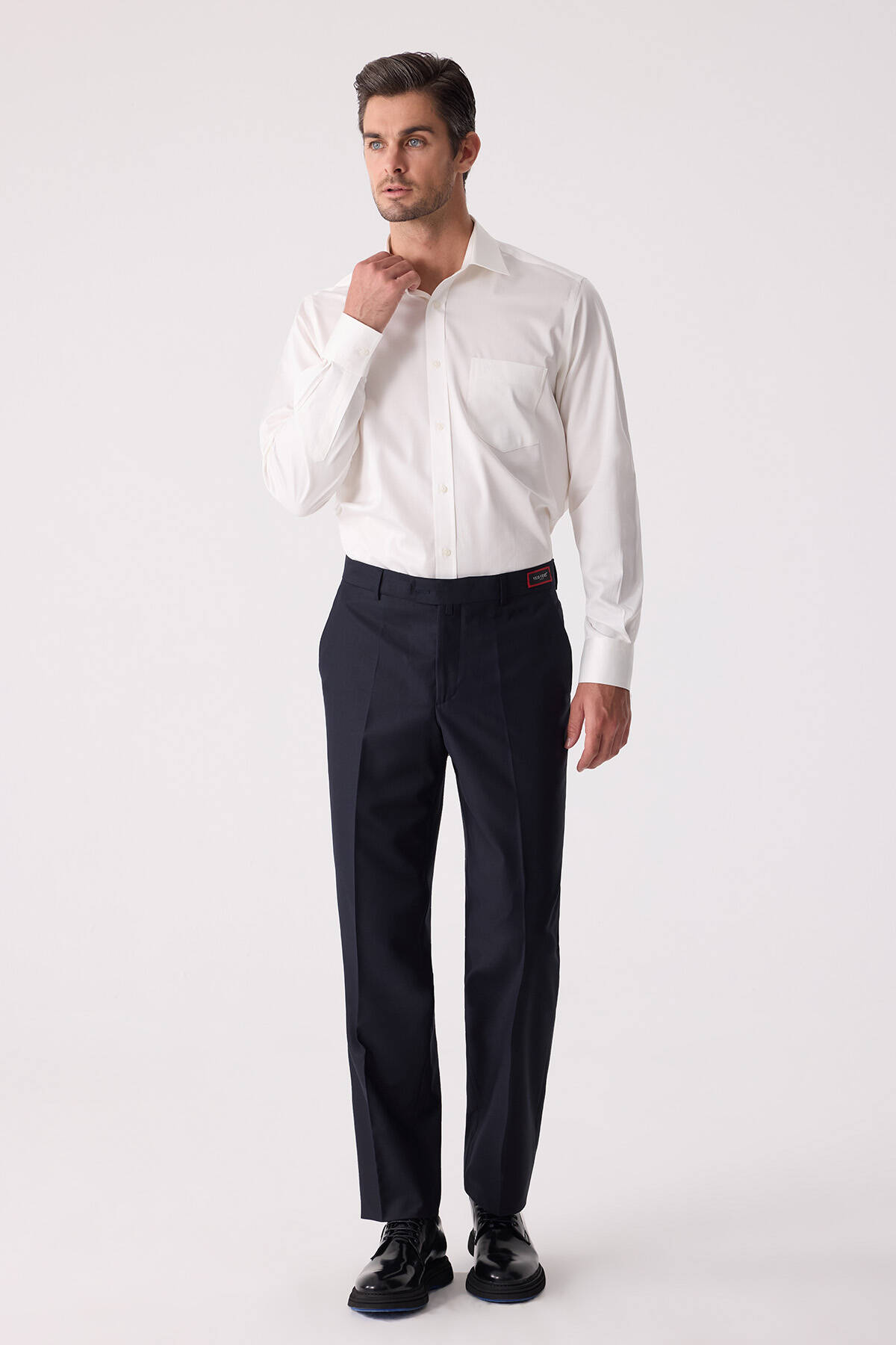 Koleksiyonun gözde parçalarından biri olan Erkek Lacivert Regular Fit Yan Cep Kumaş Pantolon, YSF Giyim’in birinci sınıf işçiliğinin ve yüksek kalitesinin benzersiz bir örneğidir. Doğal olarak ısıyı regüle etme özelliği bulunan yün karışımlı kumaş, hem işlevselliğe hem estetik duygulara hitap eder. Bu şık kumaş pantolon, zarif ve ince kesimi sayesinde formunuzu güçlendirir. Tasarımın regular fit kalıbı ise gündüzden geceye taşıyabileceğiniz konforlu bir tarz için idealdir. Fleto kesim yan cepler, pantolonun klasik tarzını güçlendirirken aynı zamanda kişisel eşyalarınızı taşıma kolaylığı sağlar. Business smart kombinlerin yanı sıra ofis dışı stile de gösterişli bir etki katan erkek kumaş pantolon uzun yıllar favoriniz olabilir. YSF Giyim’in usta zanaatkarlarının eseri olan bu şık parça, lacivert rengin çok yönlü ve zengin tonu sayesinde zamansızlığını öne çıkarır. Dinamik olarak tasarlanmış zarafetle silüetinizi güçlendiren lacivert erkek pantolon, hem casual hem smart parçalarla kombinlenebilir. Konforlu bir ofis tarzı için tasarımı; ekoseli spor gömlek ve lacivert deri Oxford ayakkabı modelleri ile tamamlamayı deneyebilirsiniz. Soğuk kış günlerinde bu kombine V yaka triko kazak veya yünlü blazer ceket gibi güçlü, iddialı ve sofistike parçalar ekleyebilirsiniz. Zamansız ve doğal olarak karizmatik bir silüet oluşturmak için sezonun en şık ve kaliteli kumaş pantolon modelleri YSF Giyim’de!