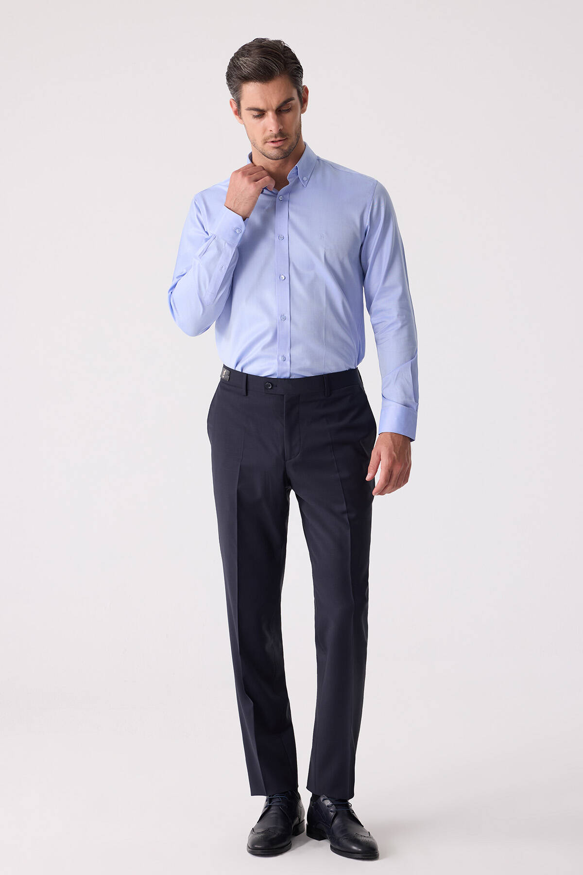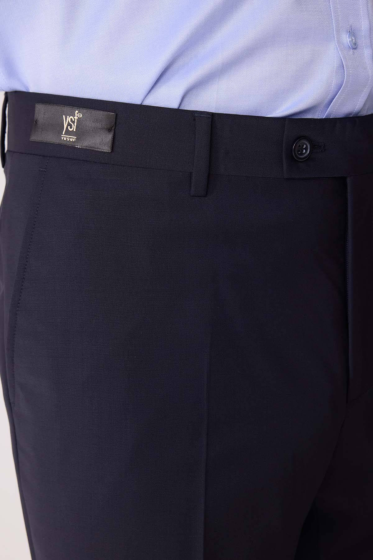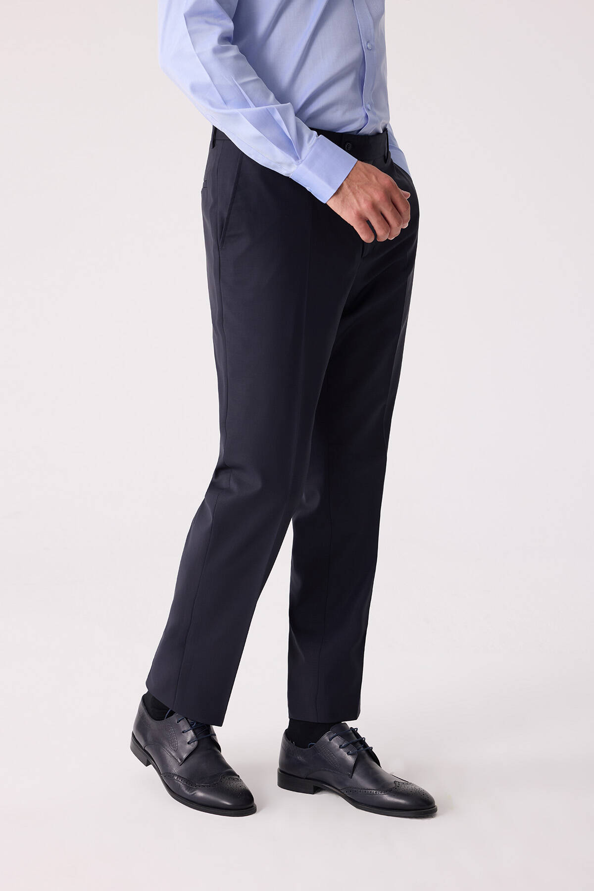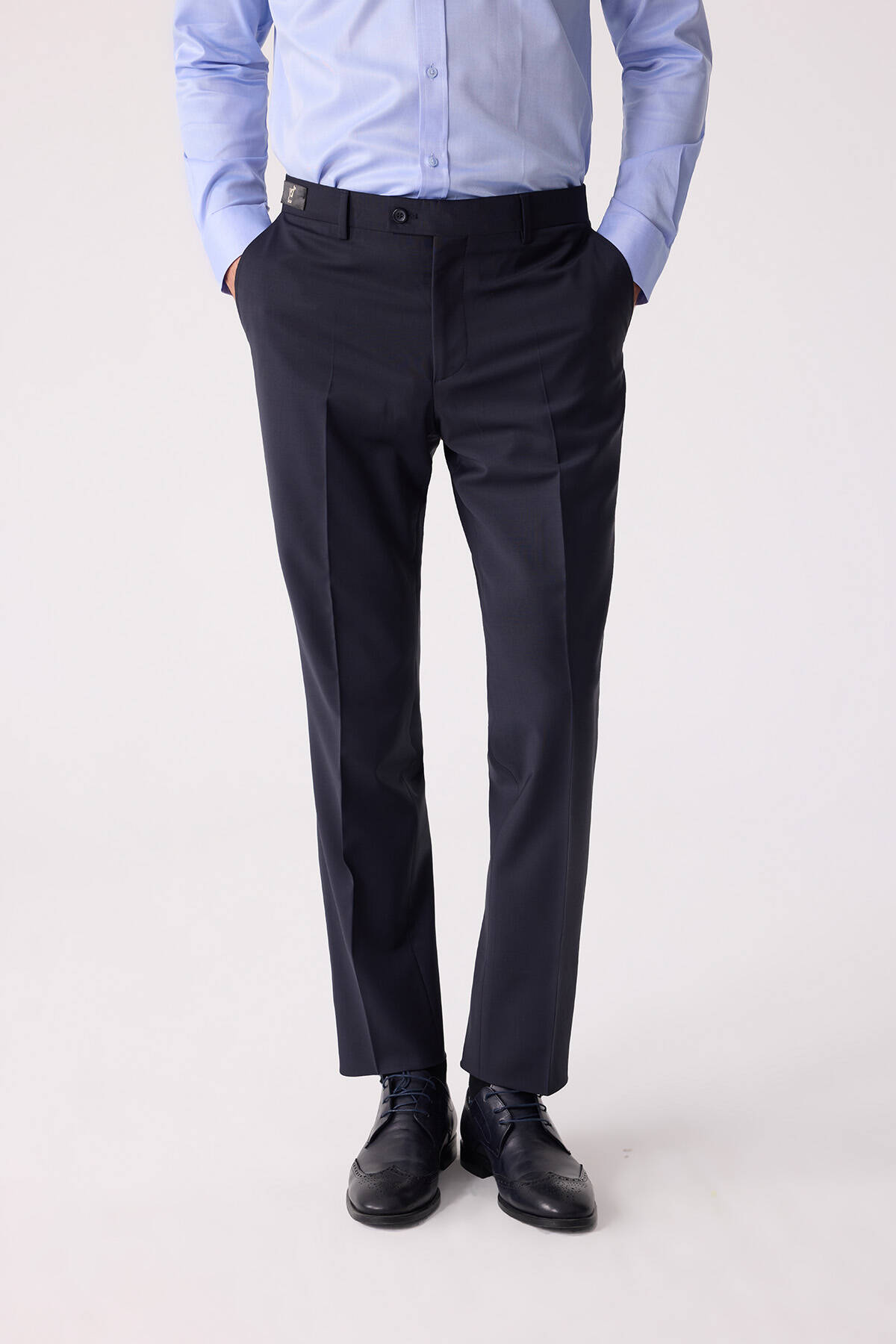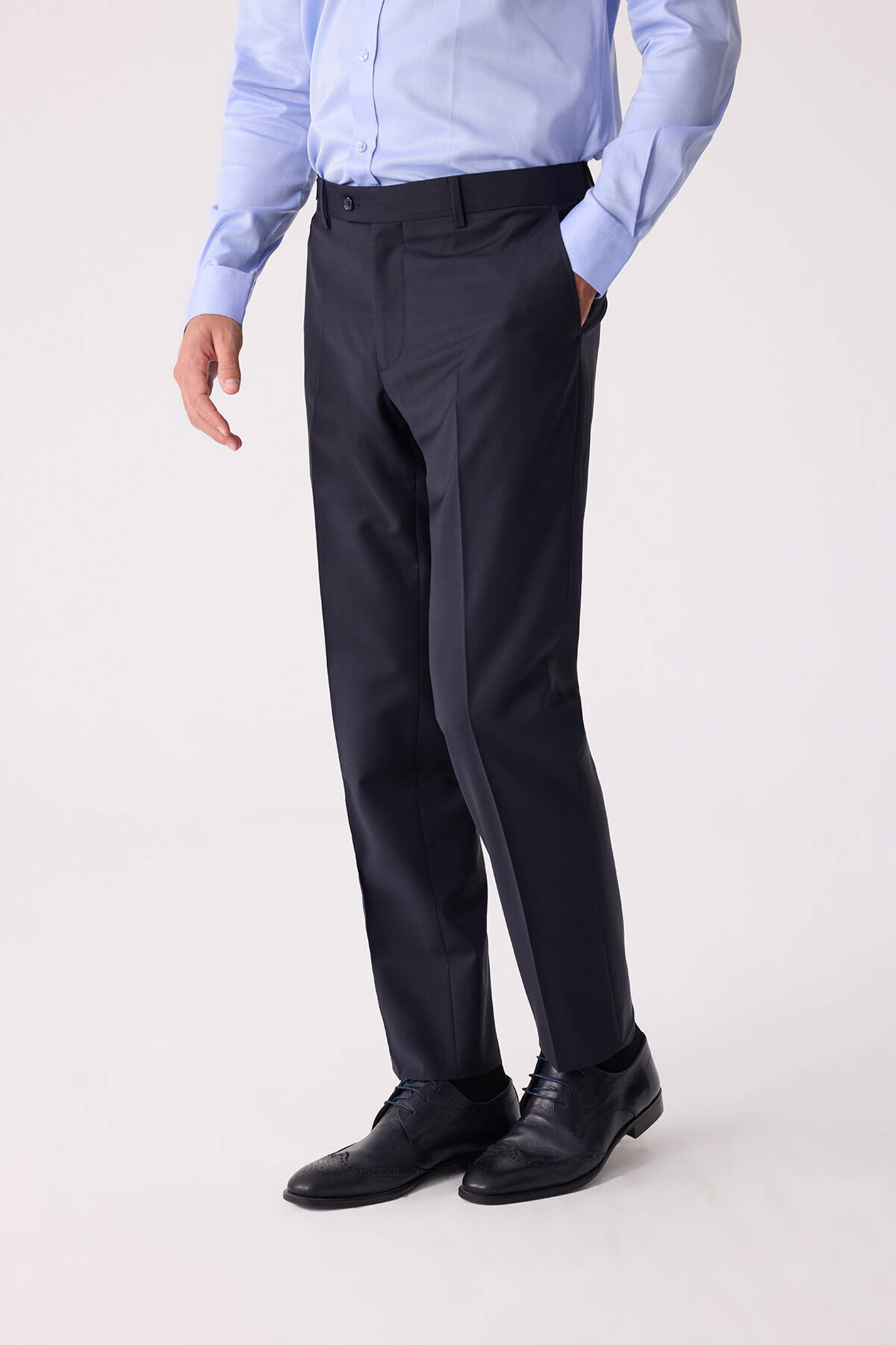 Erkek Lacivert Regular Fit Yün Karışımlı Kumaş Pantolon