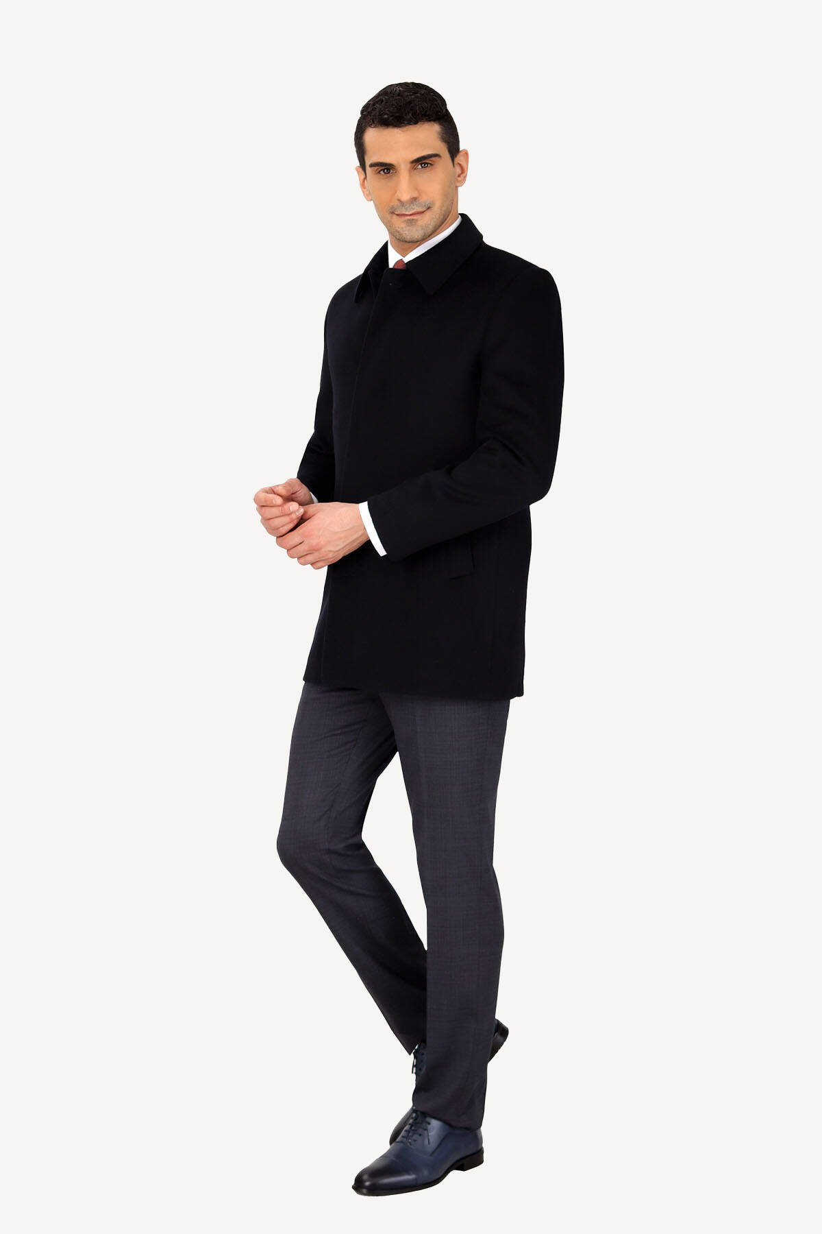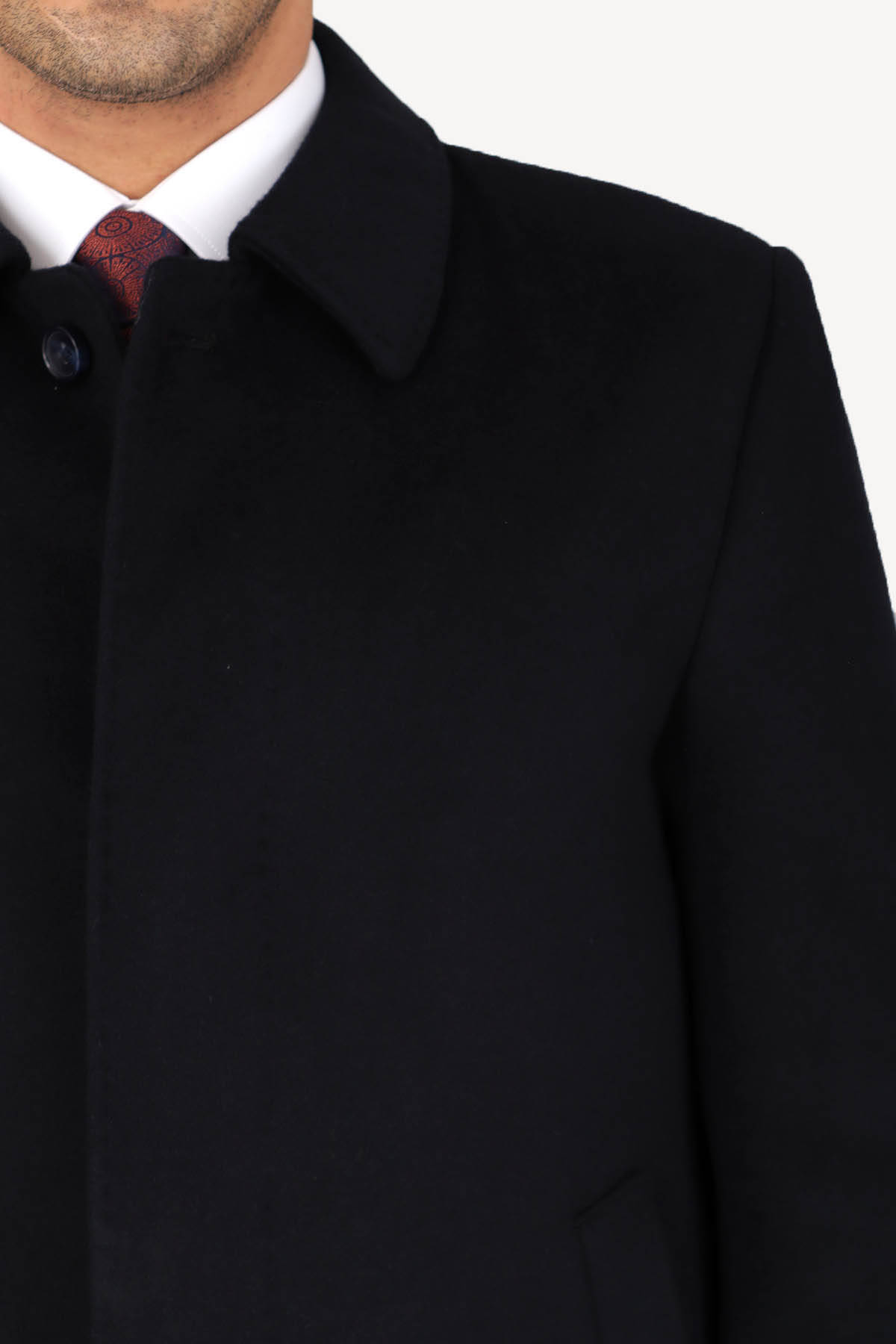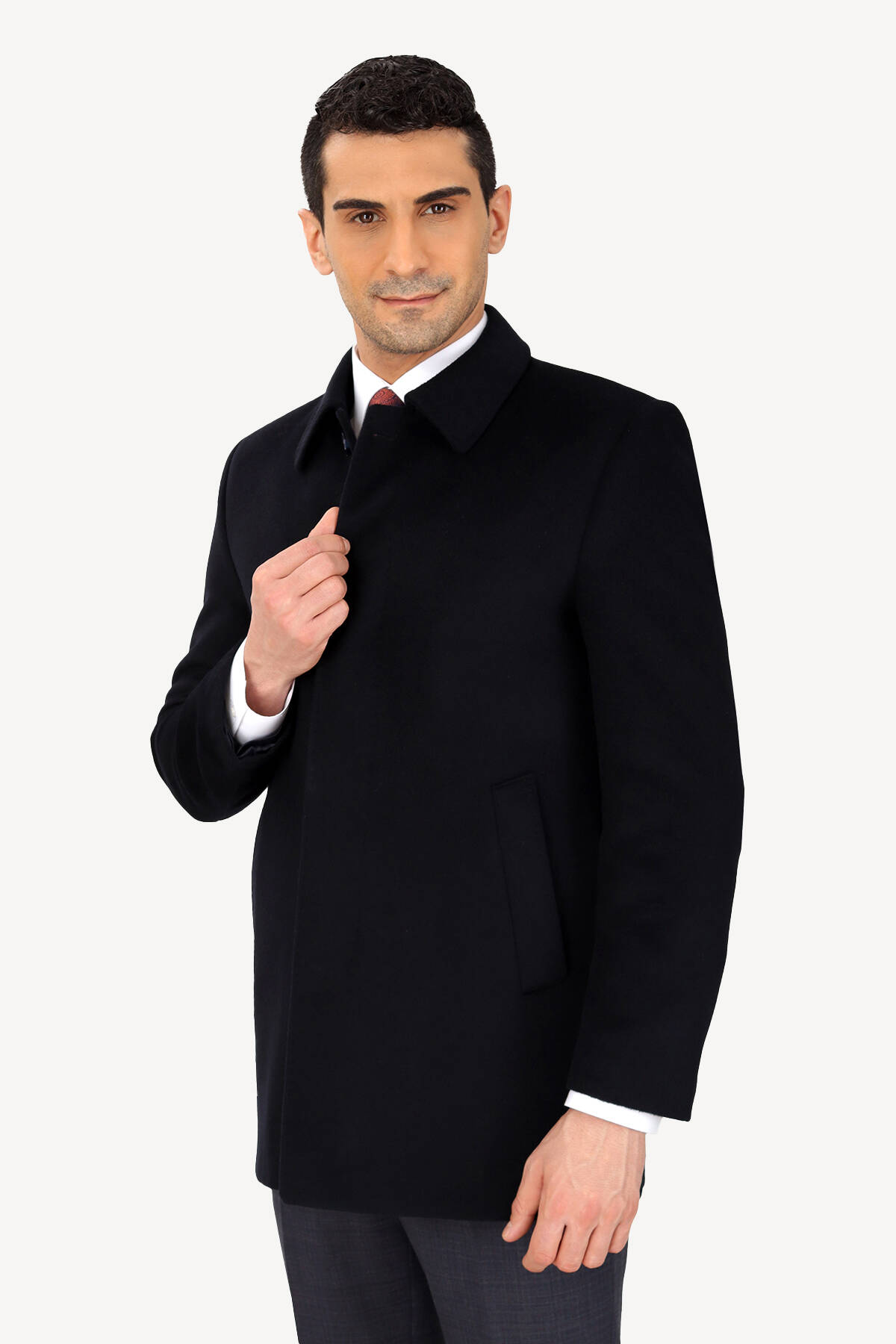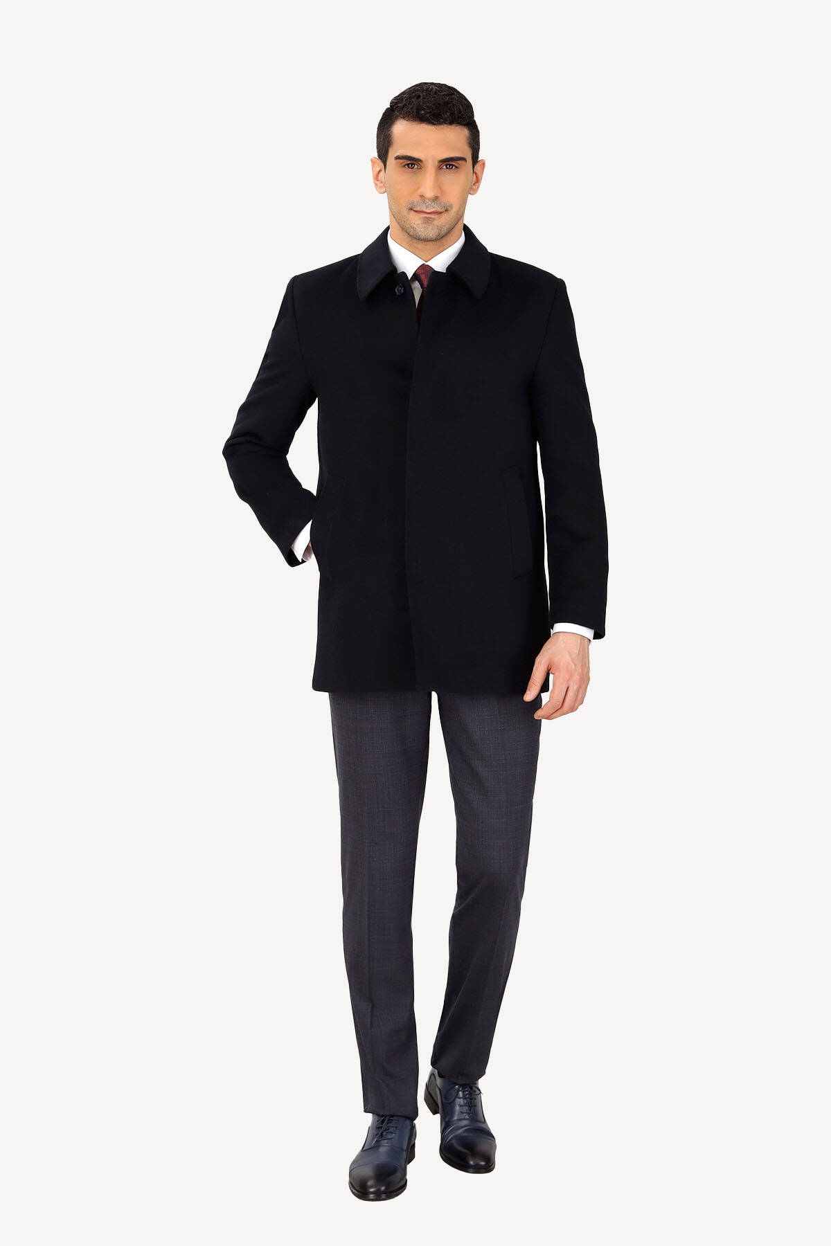 Erkek Lacivert Mono Yaka Kısa Kaban