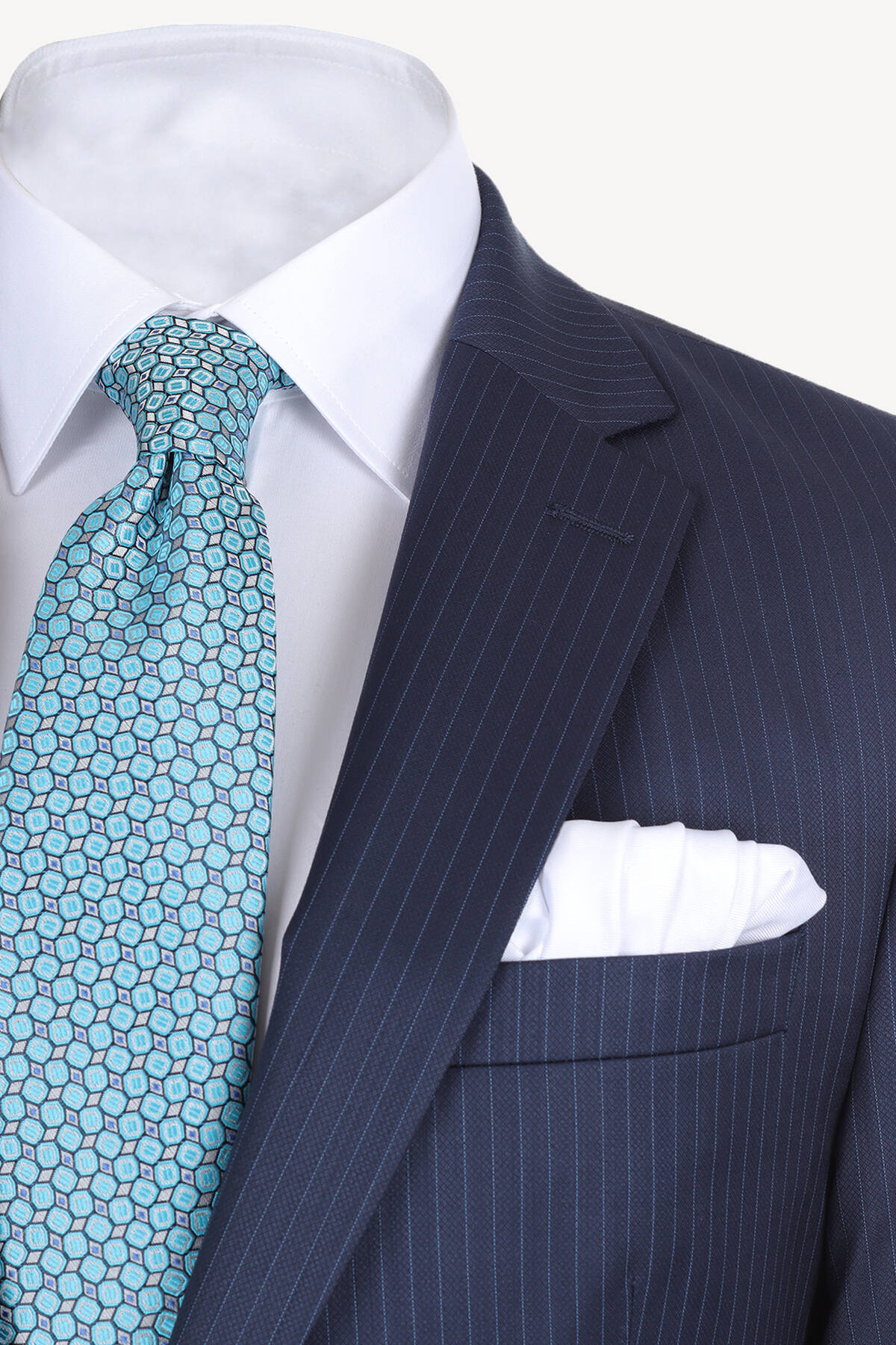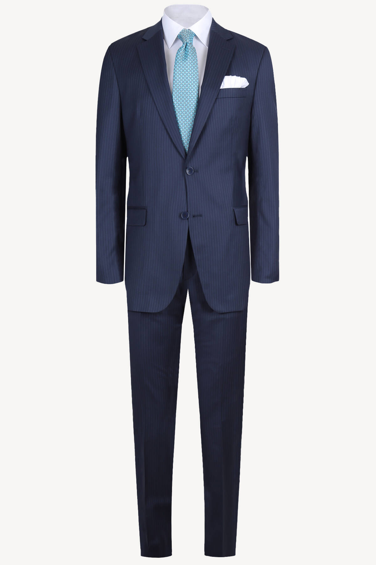 Erkek Lacivert Çizgili Regular Fit Takım Elbise