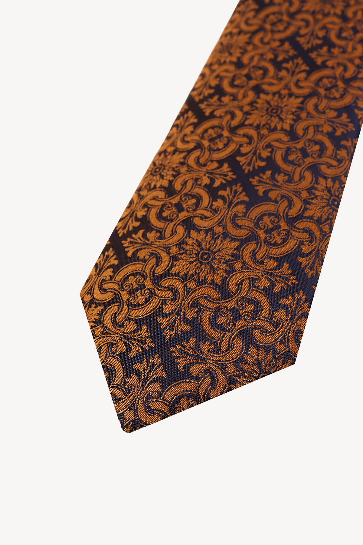 Erkek Lacivert Sarı Desenli Kravat Mendil Set