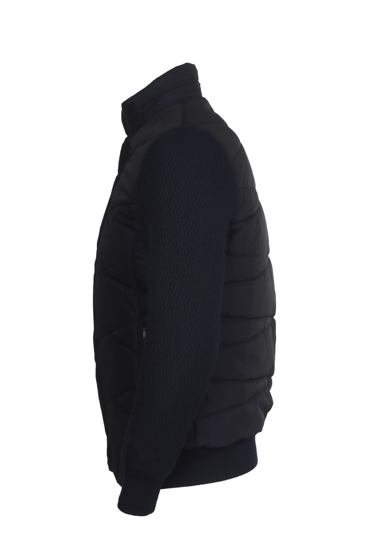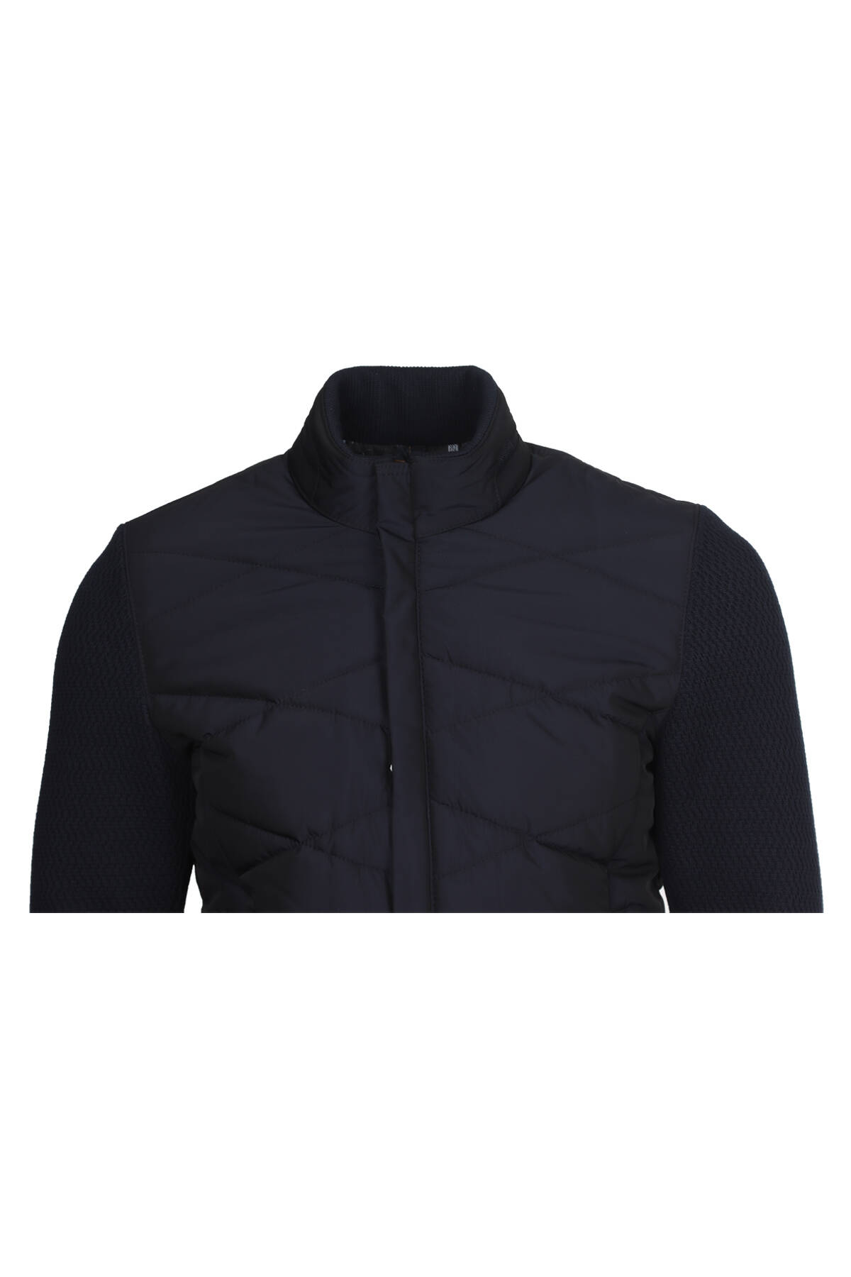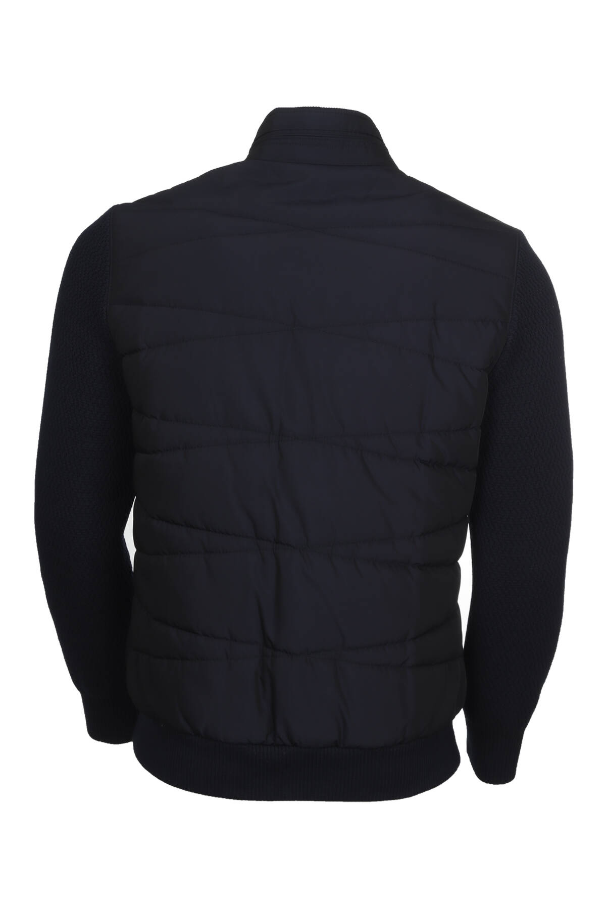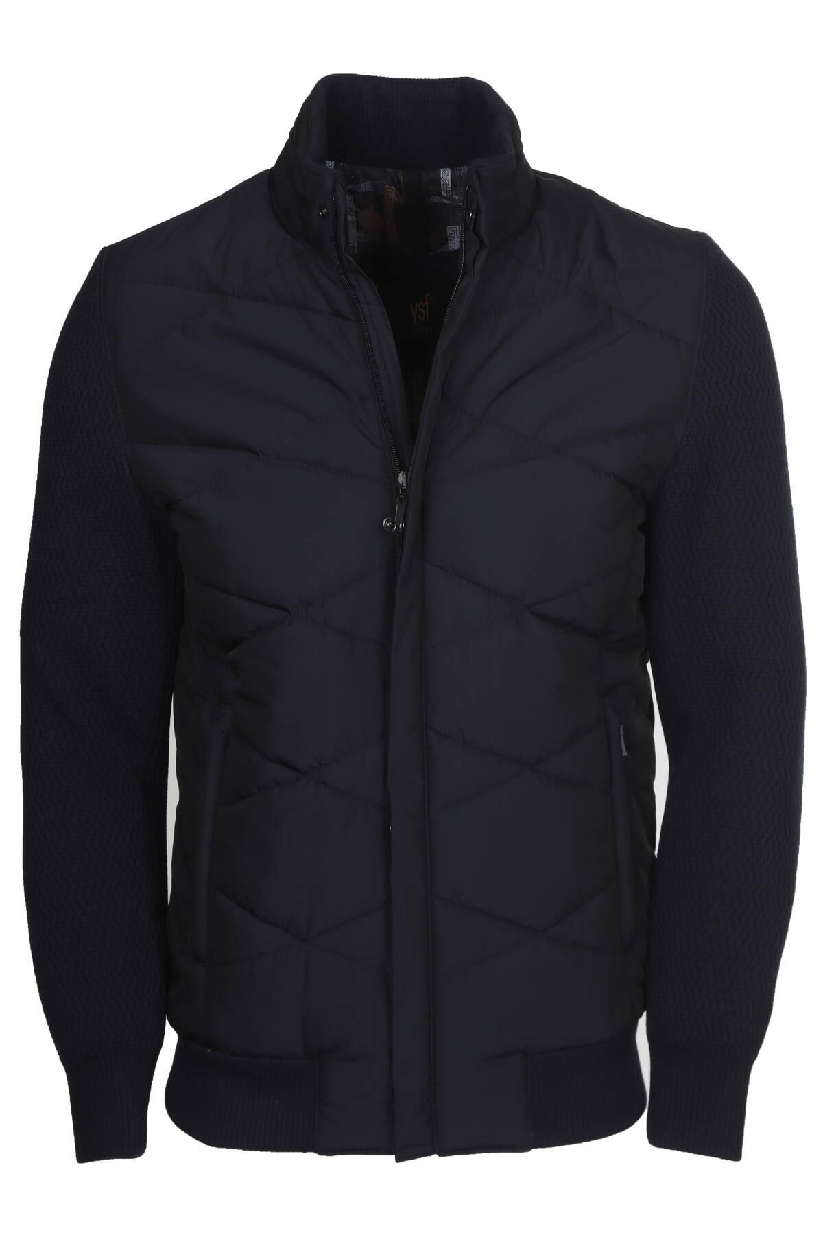Erkek Lacivert Dik Yaka Desenli Triko Kol Spor Mont