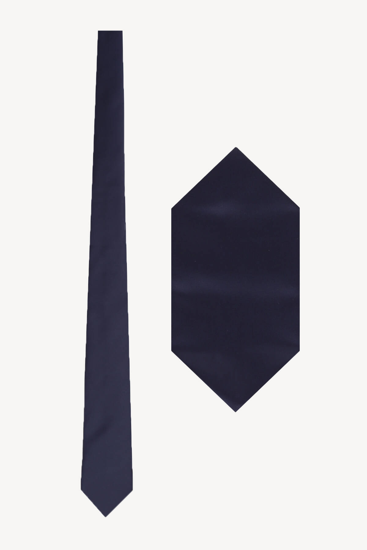 Erkek Lacivert Düz Slim Kravat Mendil Set