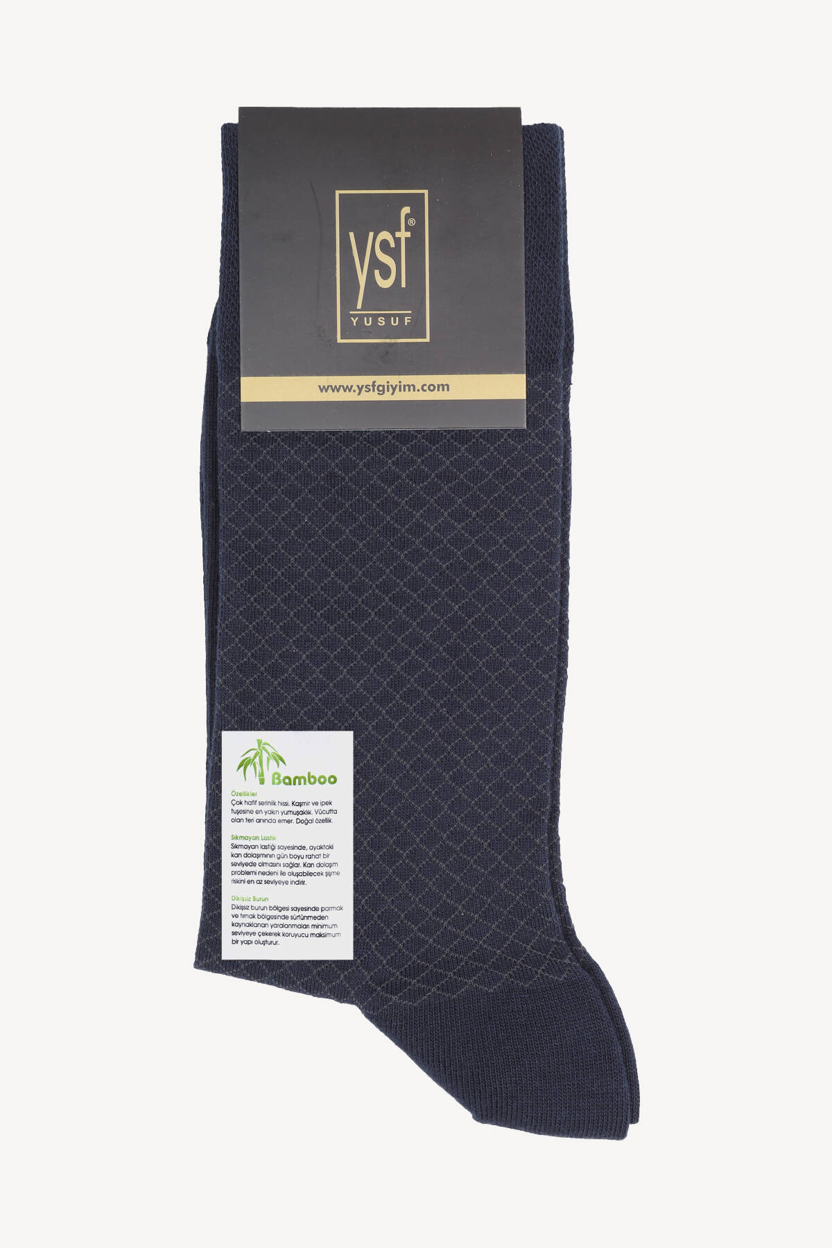 Erkek Lacivert Erkek Desenli Dikişsiz Bambu Pamuk Çorap