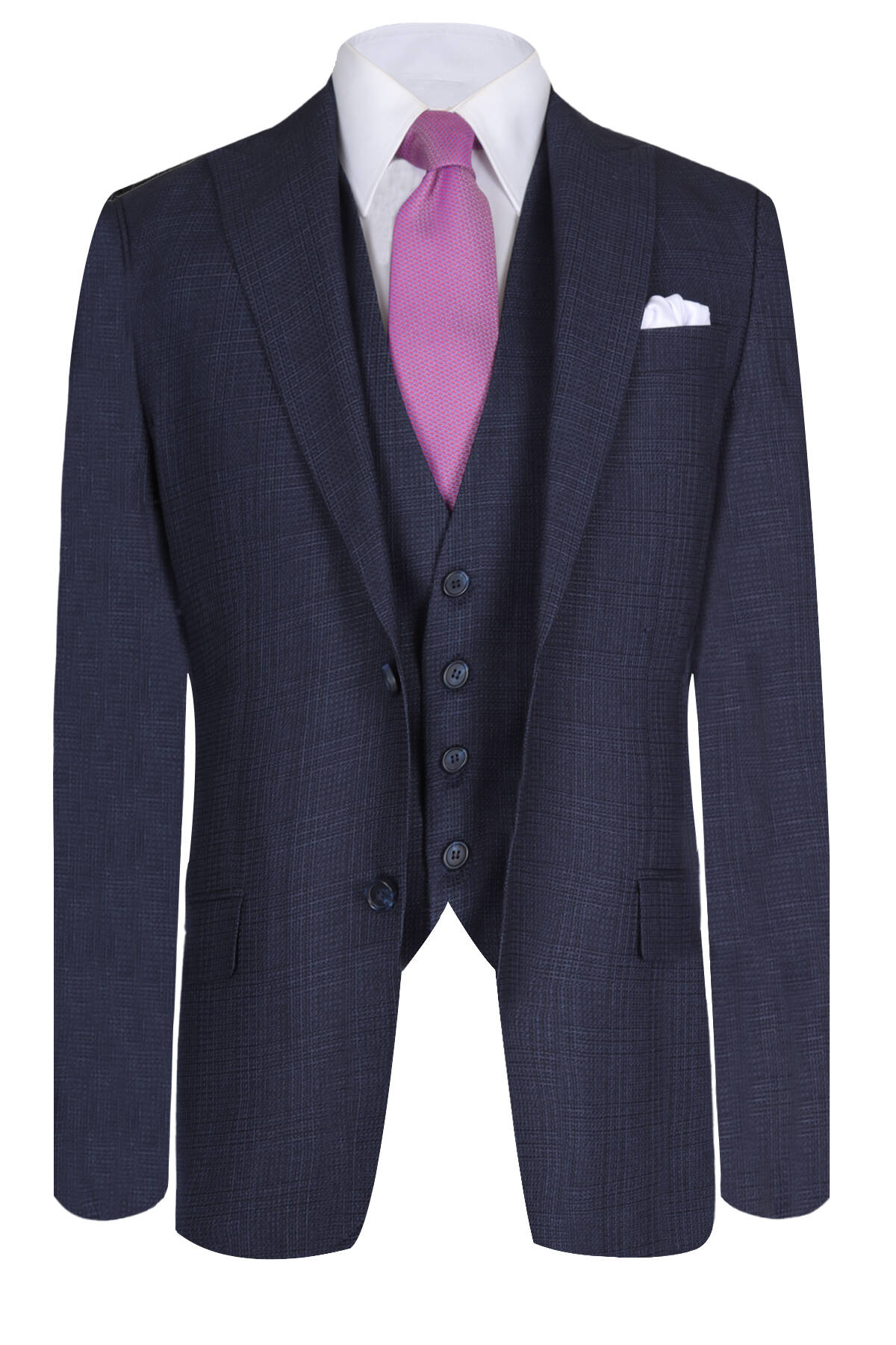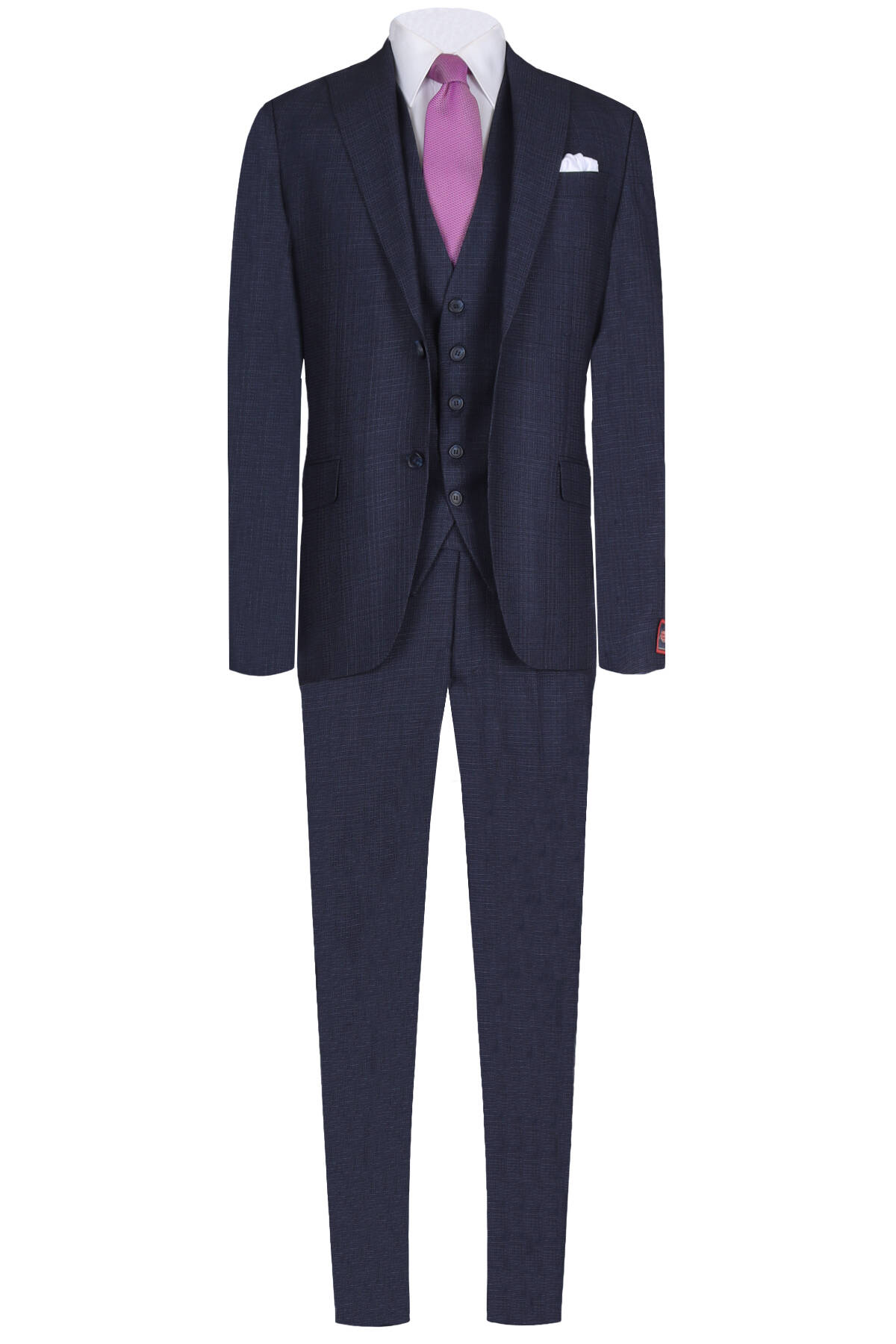 Erkek Lacivert Kareli Slim Fit Yelekli Takım Elbise