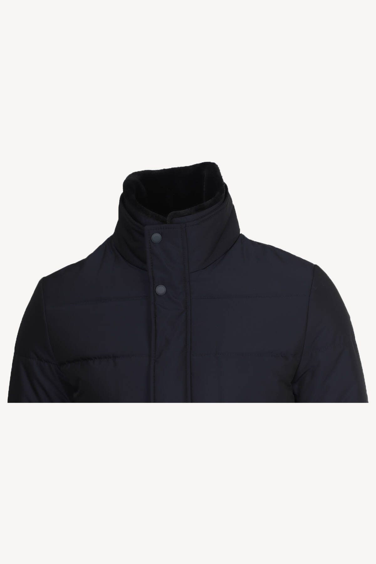 Erkek Lacivert Kürklü Yaka Klasik Kaban