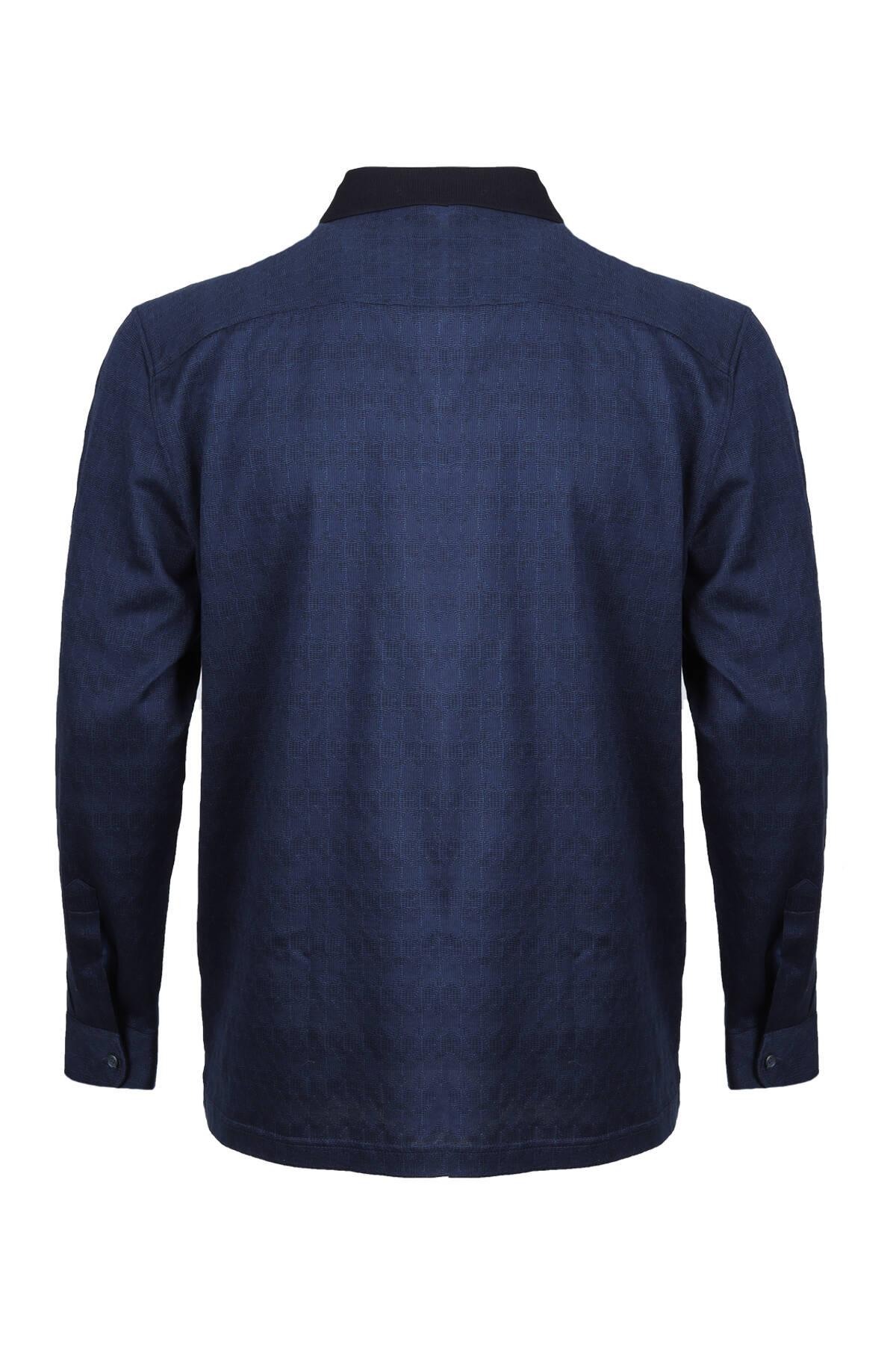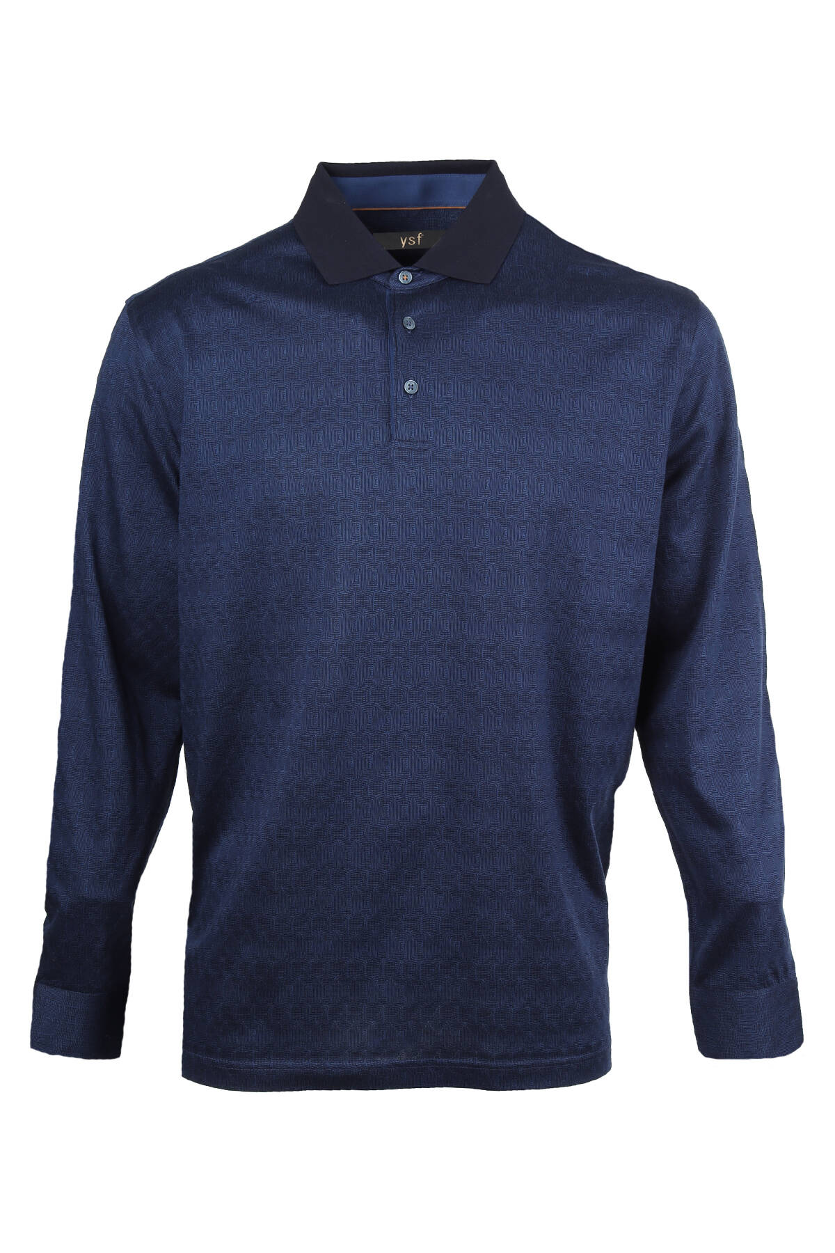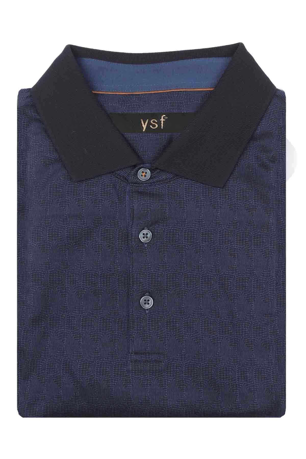 Erkek Lacivert Polo Yaka Desenli Klasik Sweatshirt