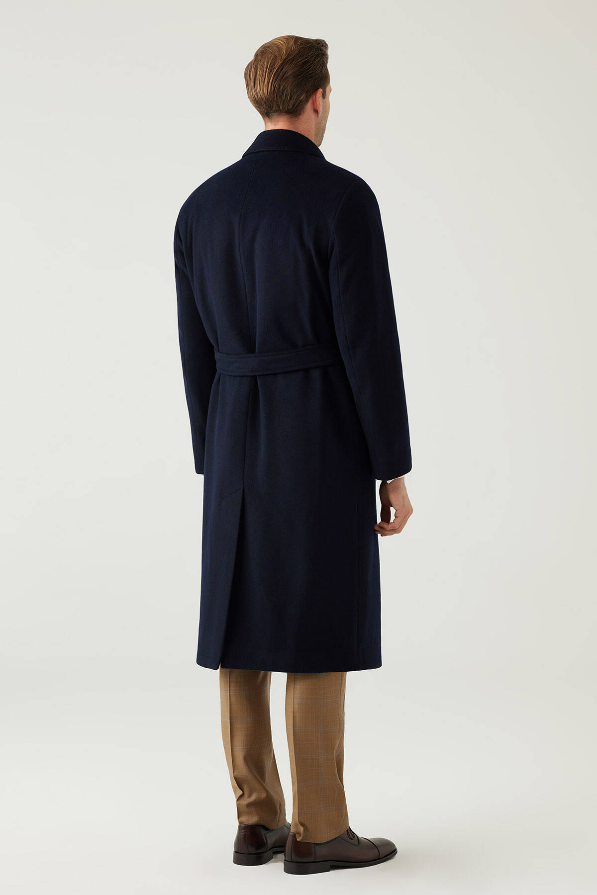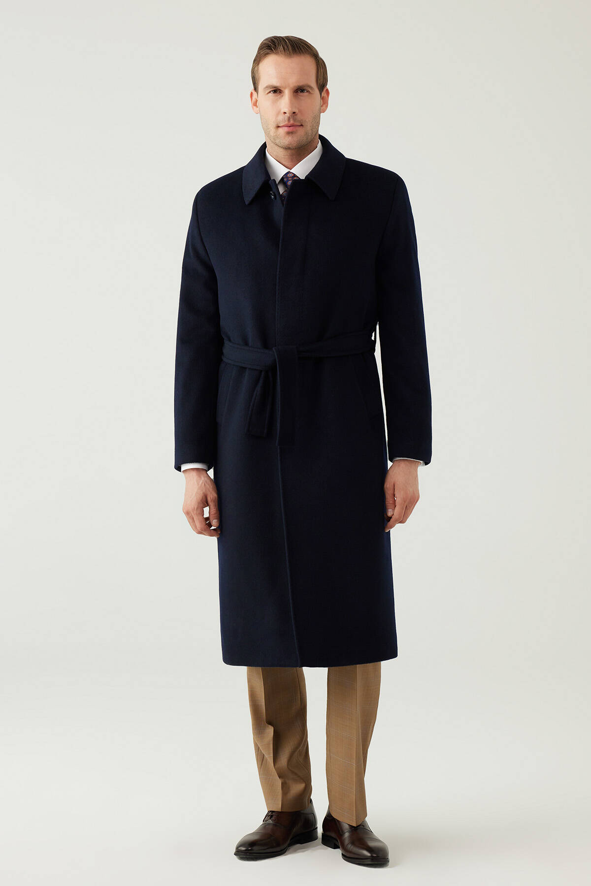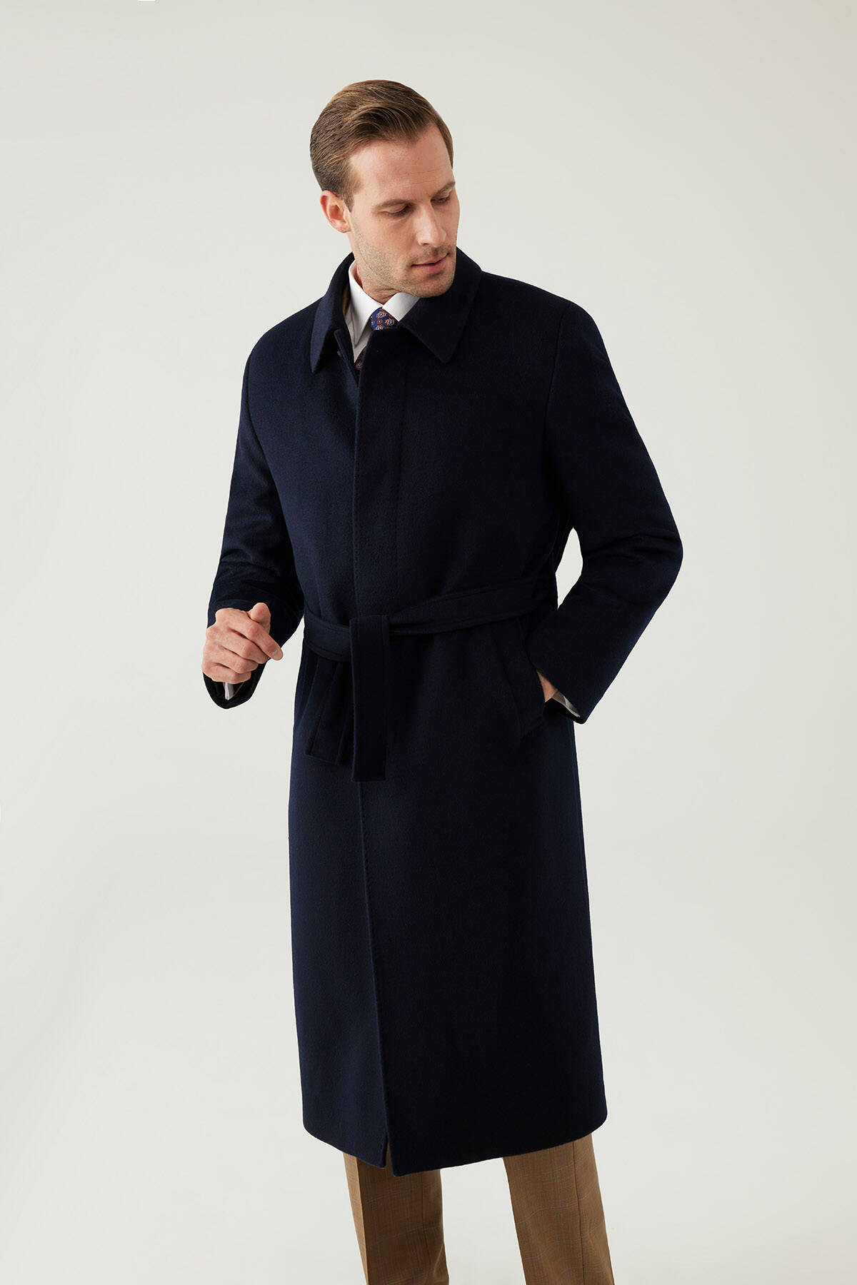 parçalarından biri olan Erkek Lacivert Regular Fit Kaşmir Uzun Kuşaklı Palto, elegan ve sofistike bir tavrı tercih eden erkekler için idealdir. Kaşmir ve yün ipliklerinin özel karışımından üretilmiş uzun bir tasarıma sahiptir.