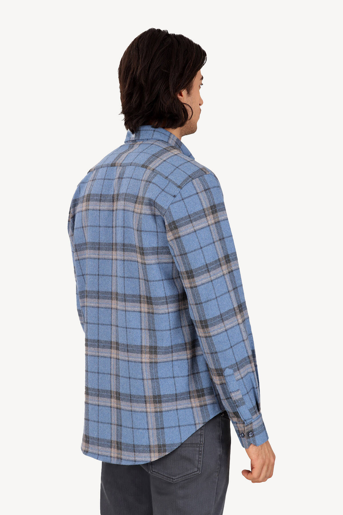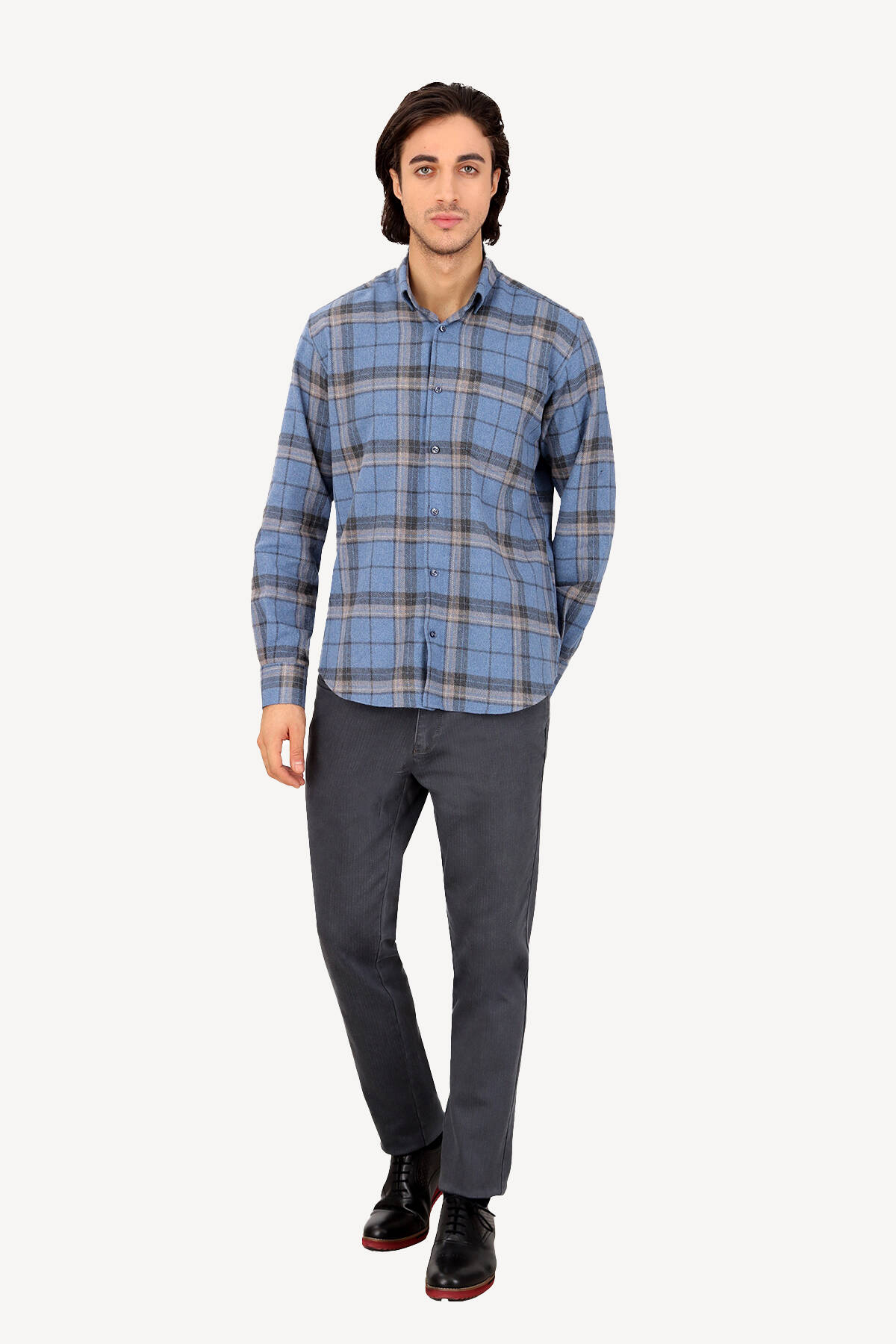 Erkek Lacivert Regular Fit Yaka Düğmeli Ekose Gömlek