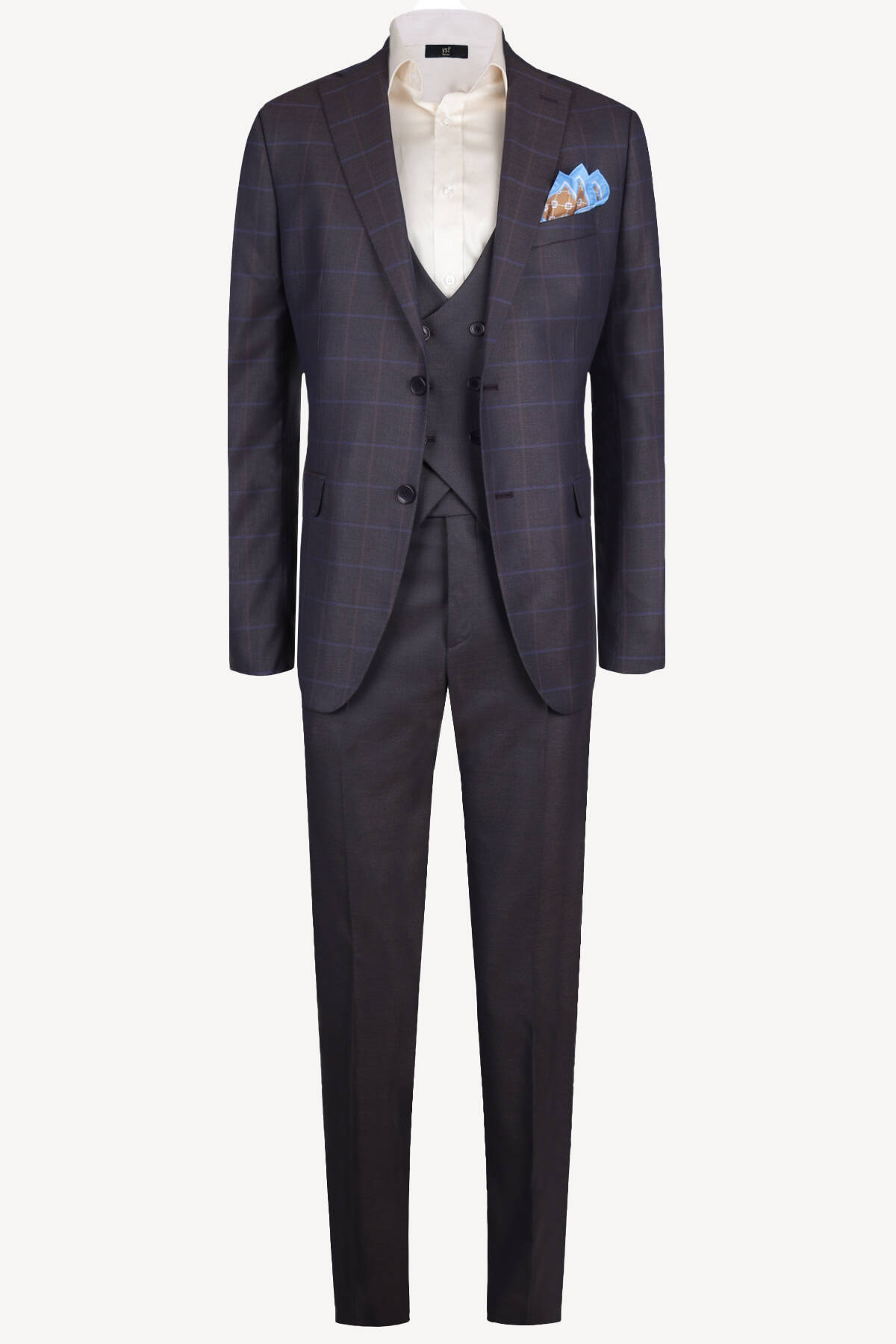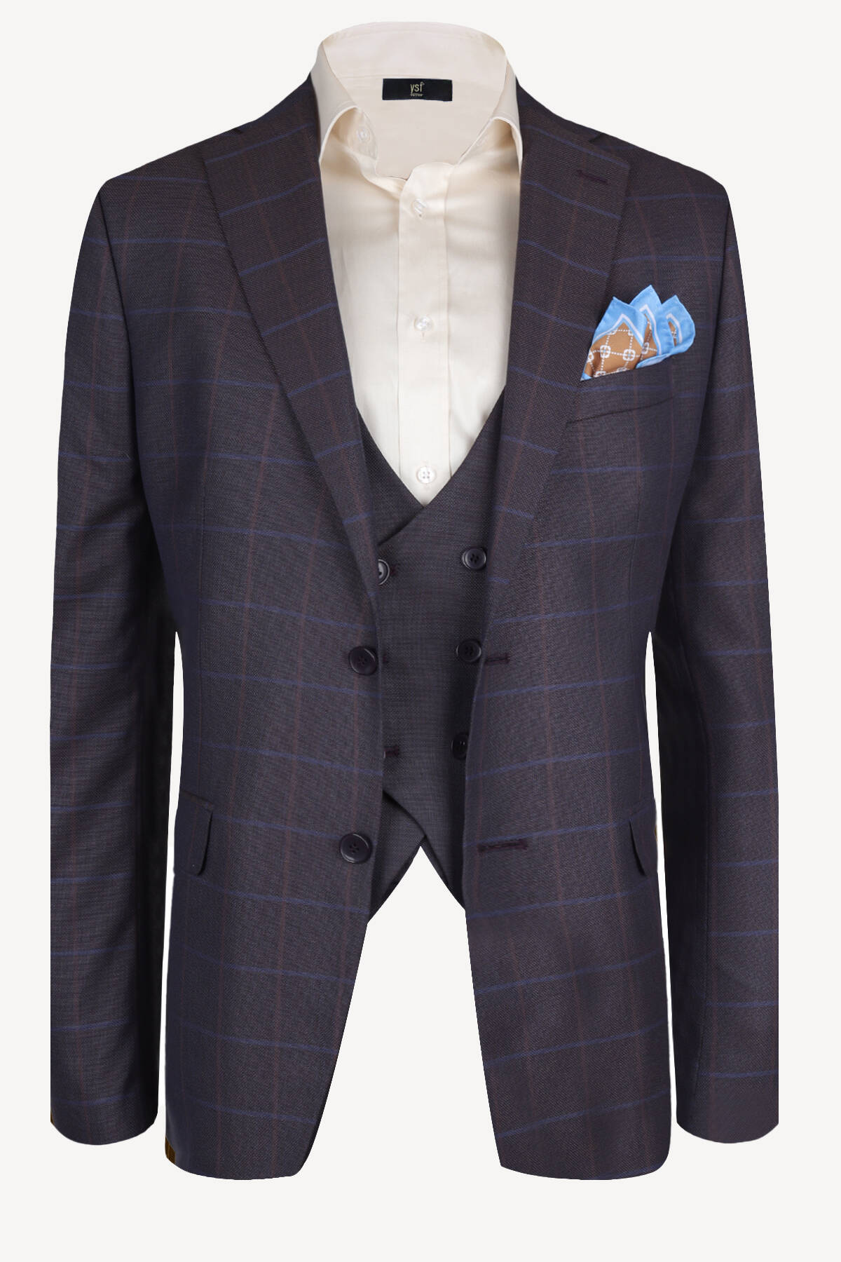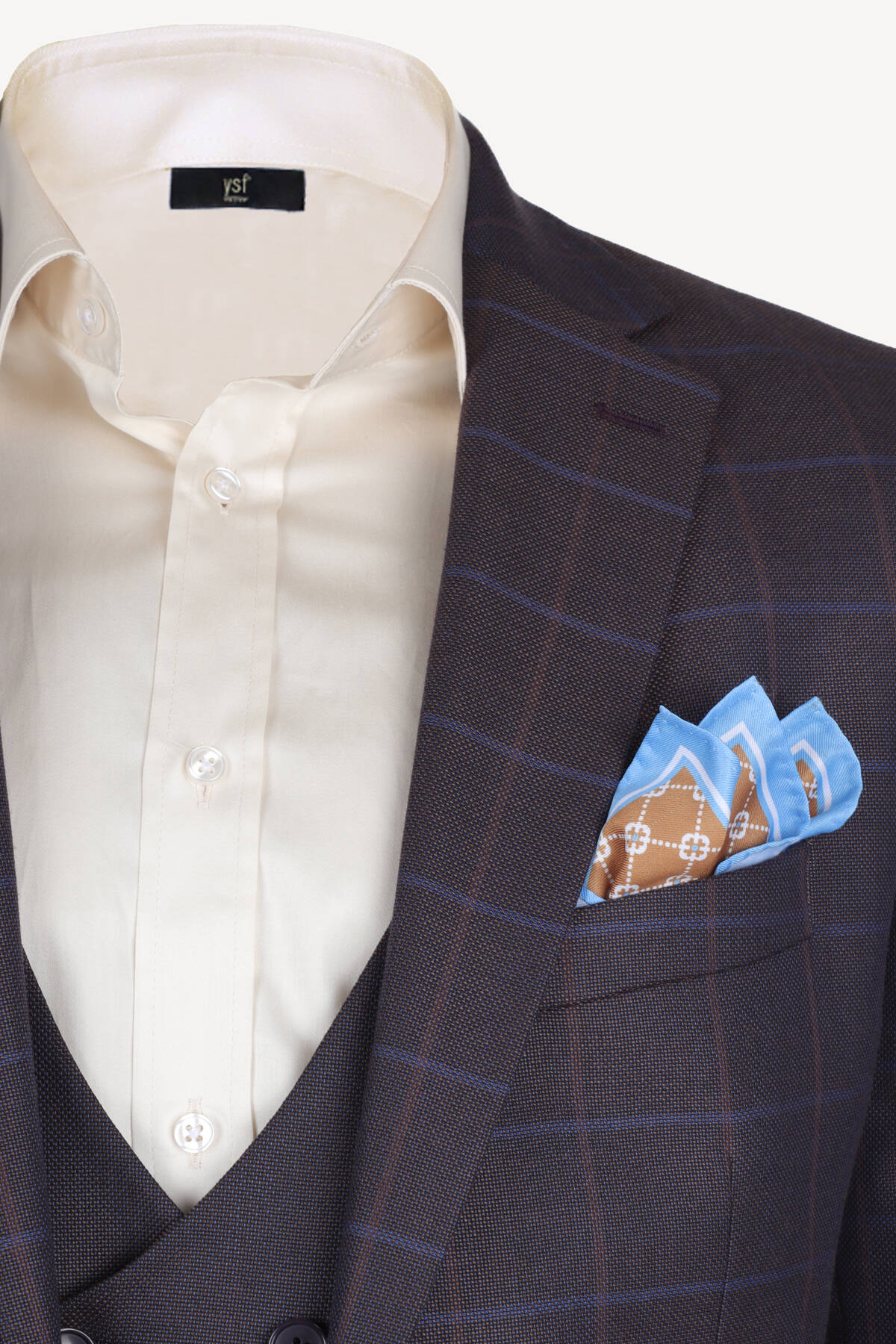 Erkek Lacivert Yelekli Ekose Regular Fit Takım Elbise